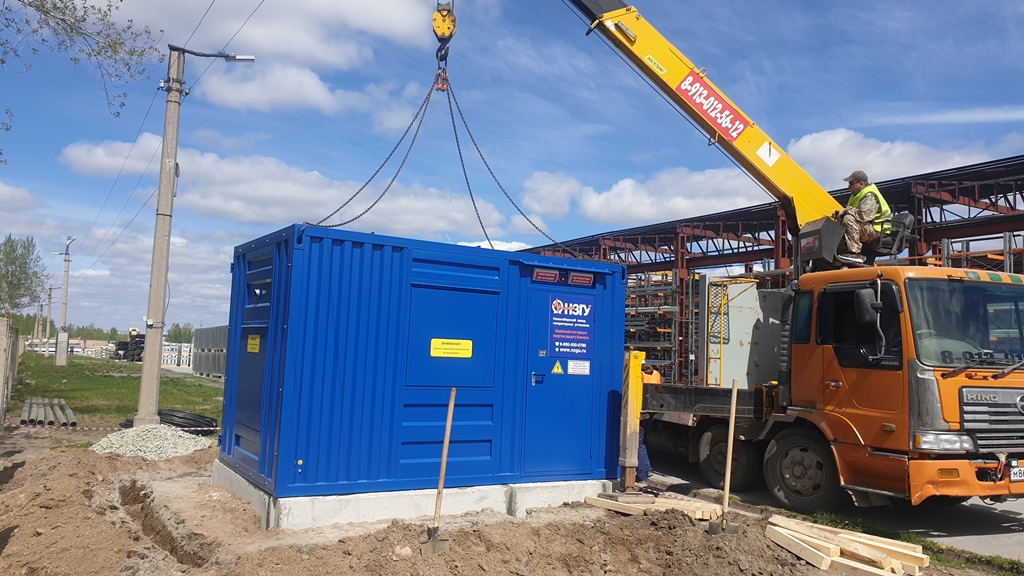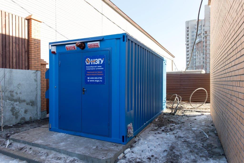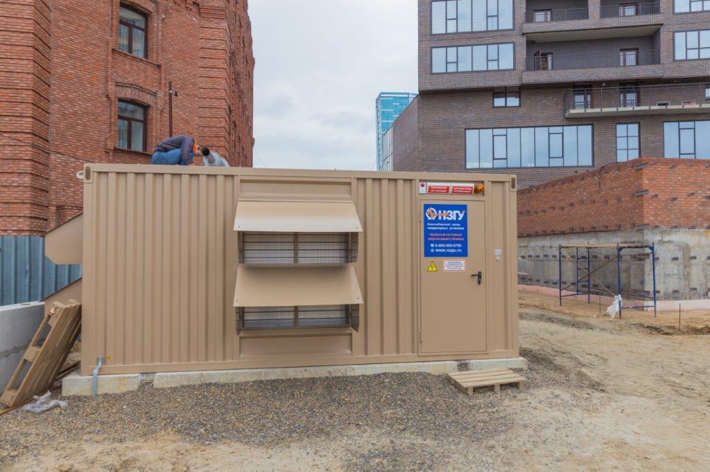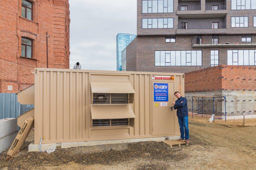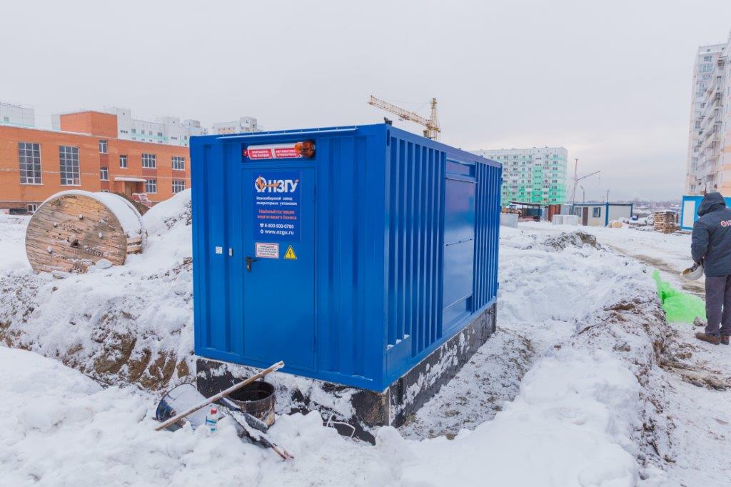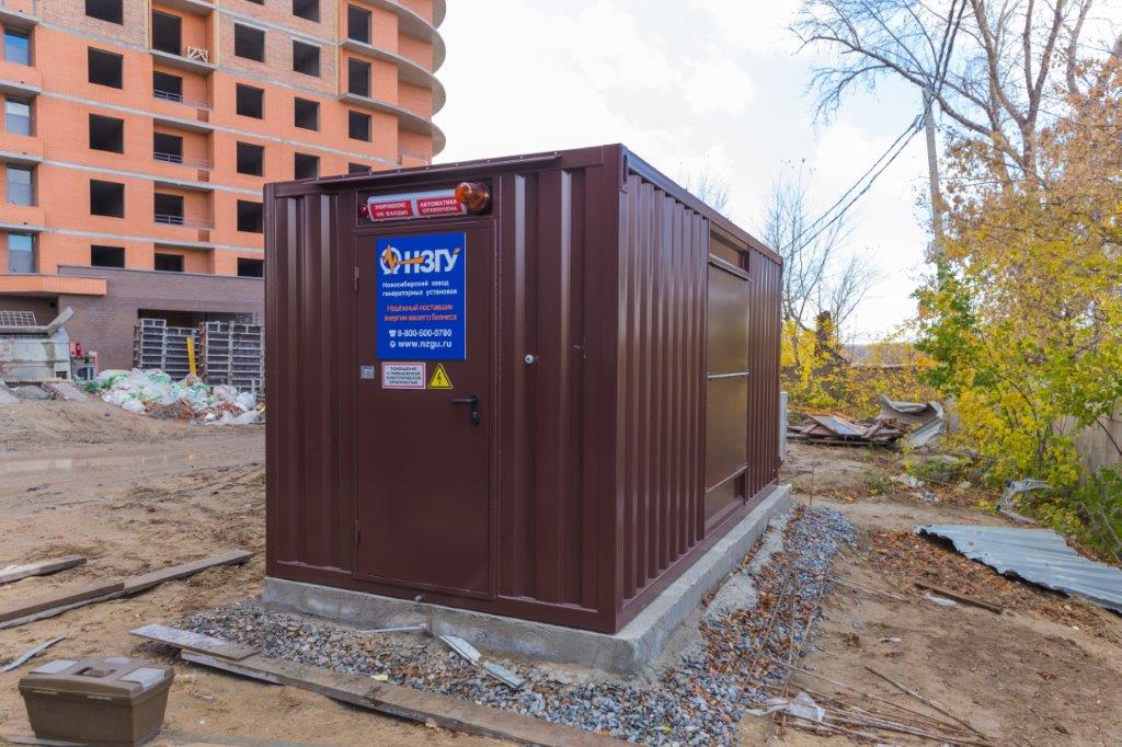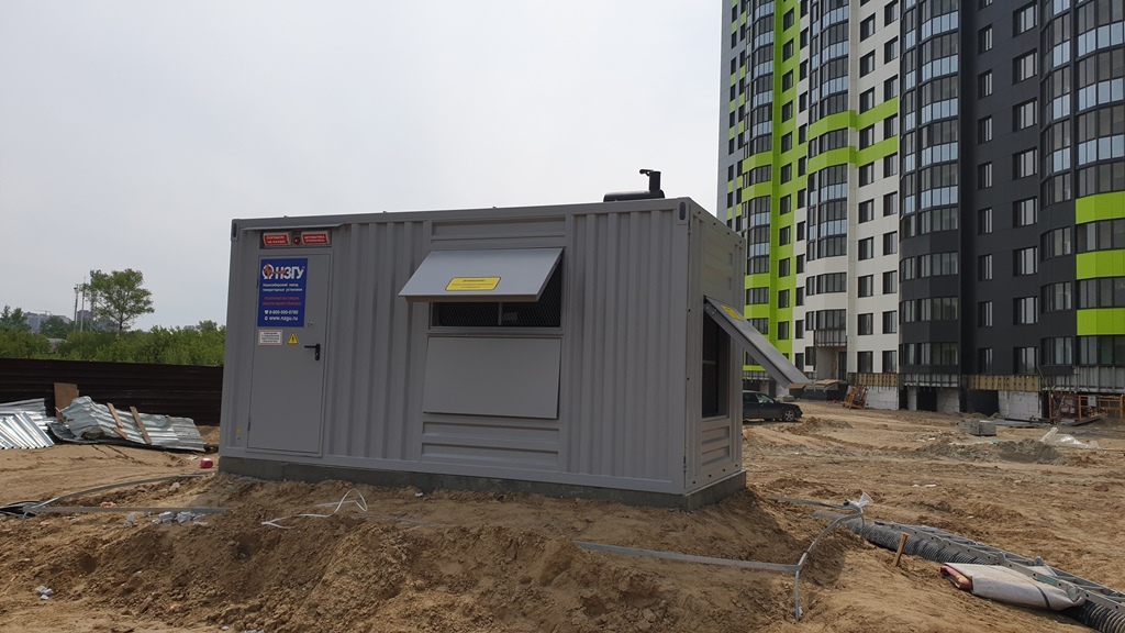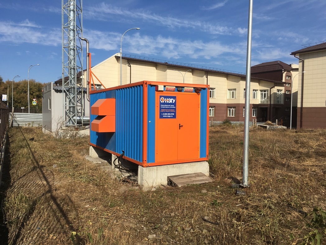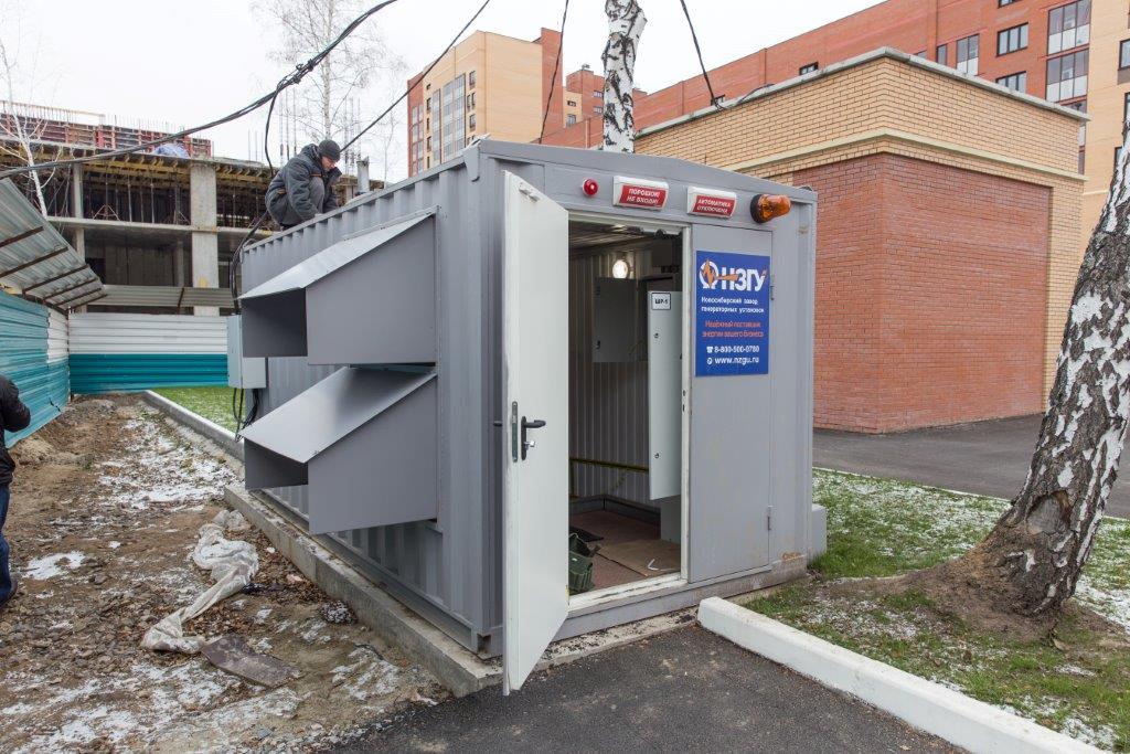 Специалисты НЗГУ установили дизельгенератор 200кВт контейнерного исполнения на одном из новых жилых комплексов Наукограда Кольцово. Для того, чтобы дизельгенератор не выбивался из общей концепции ЖК застройщик возвёл для него отдельную пристройку к ТП