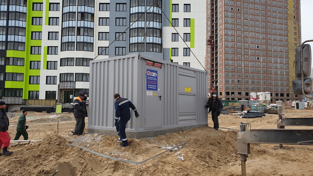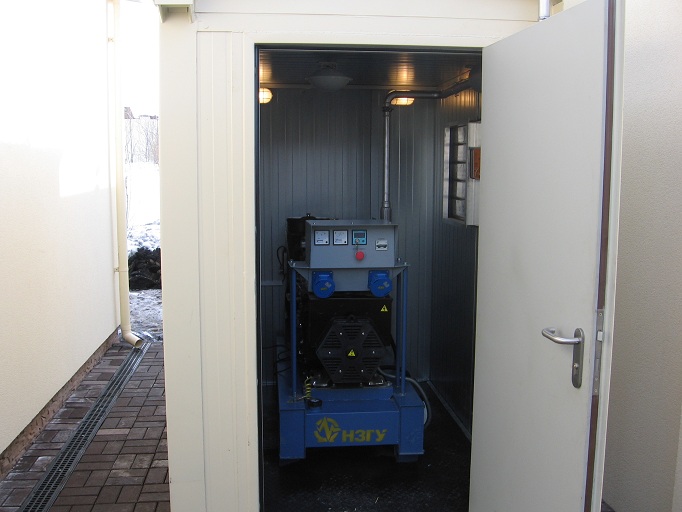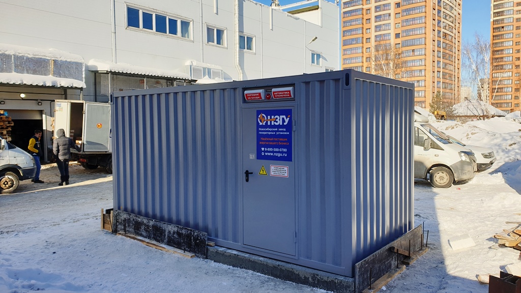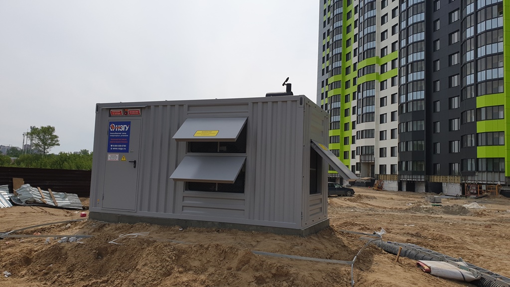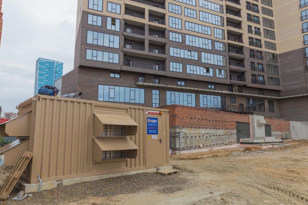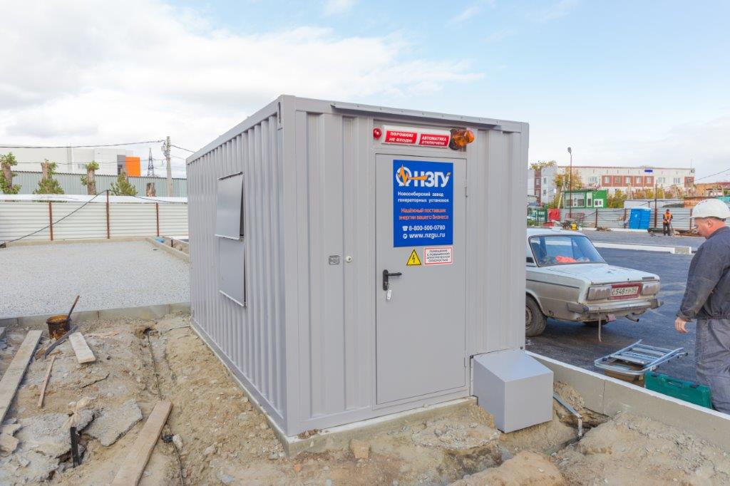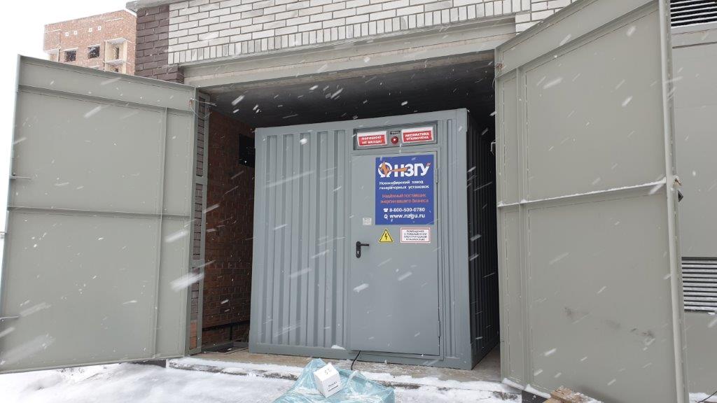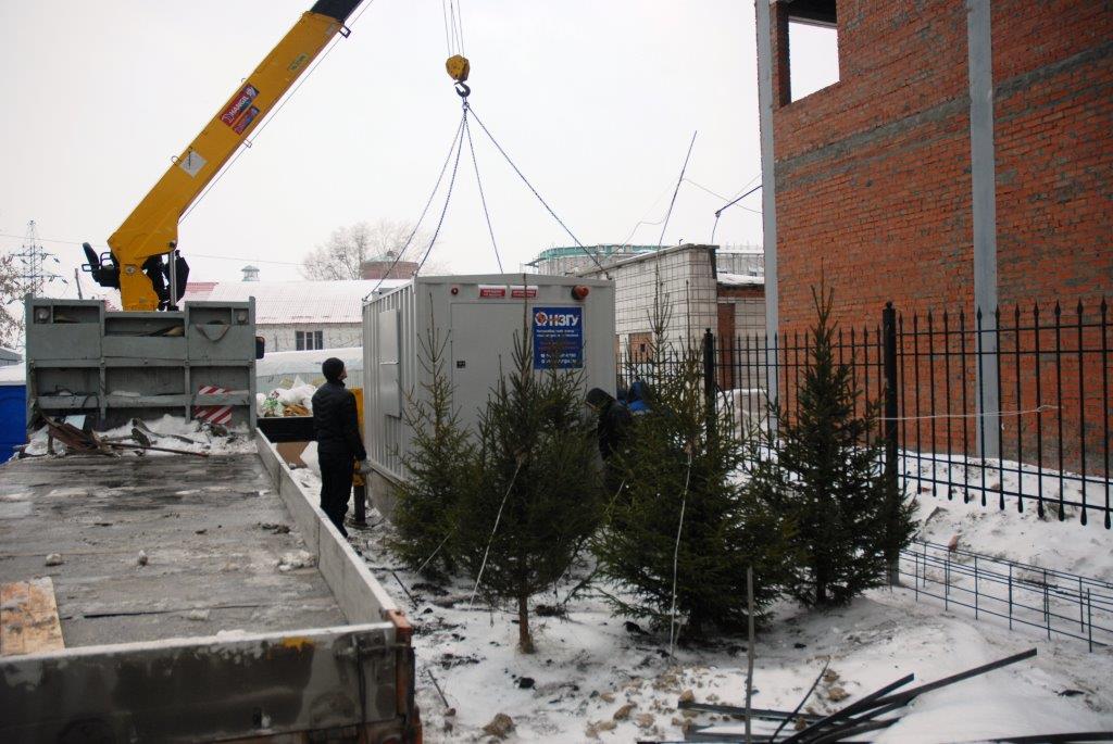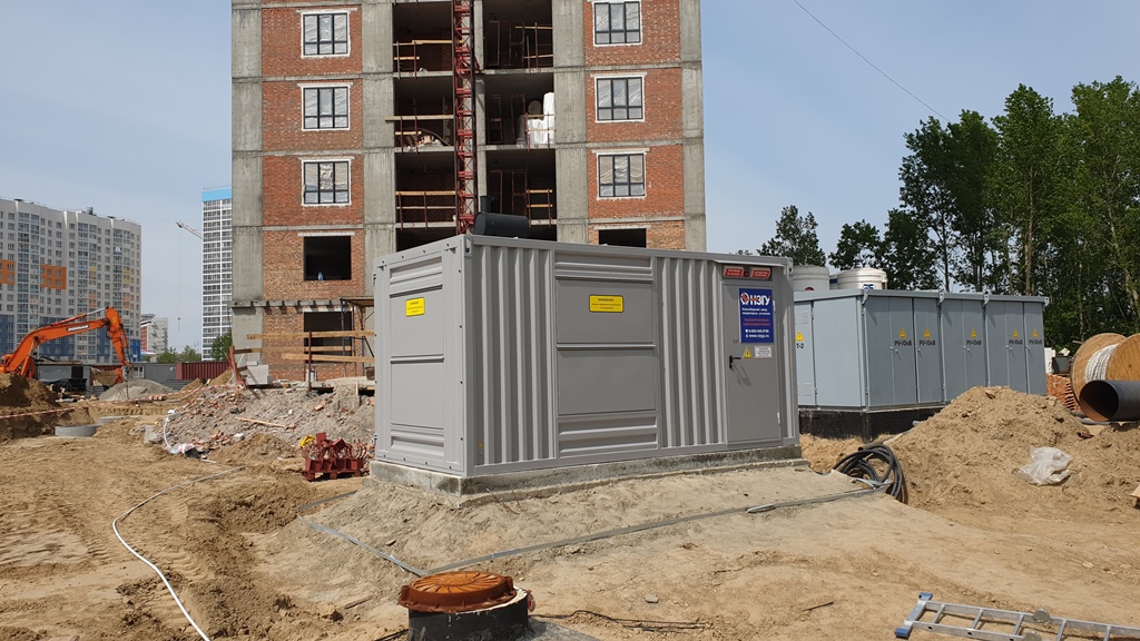 Специалисты НЗГУ установили дизельгенератор 200кВт контейнерного исполнения на одном из новых жилых комплексов Наукограда Кольцово. Для того, чтобы дизельгенератор не выбивался из общей концепции ЖК застройщик возвёл для него отдельную пристройку к ТП