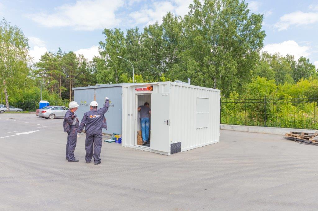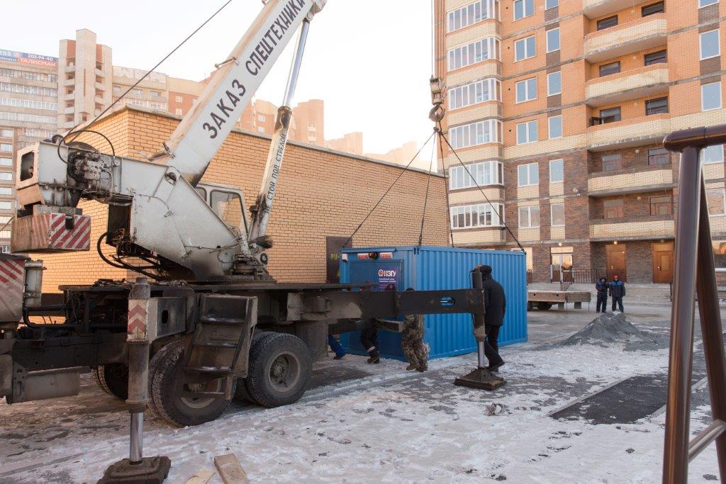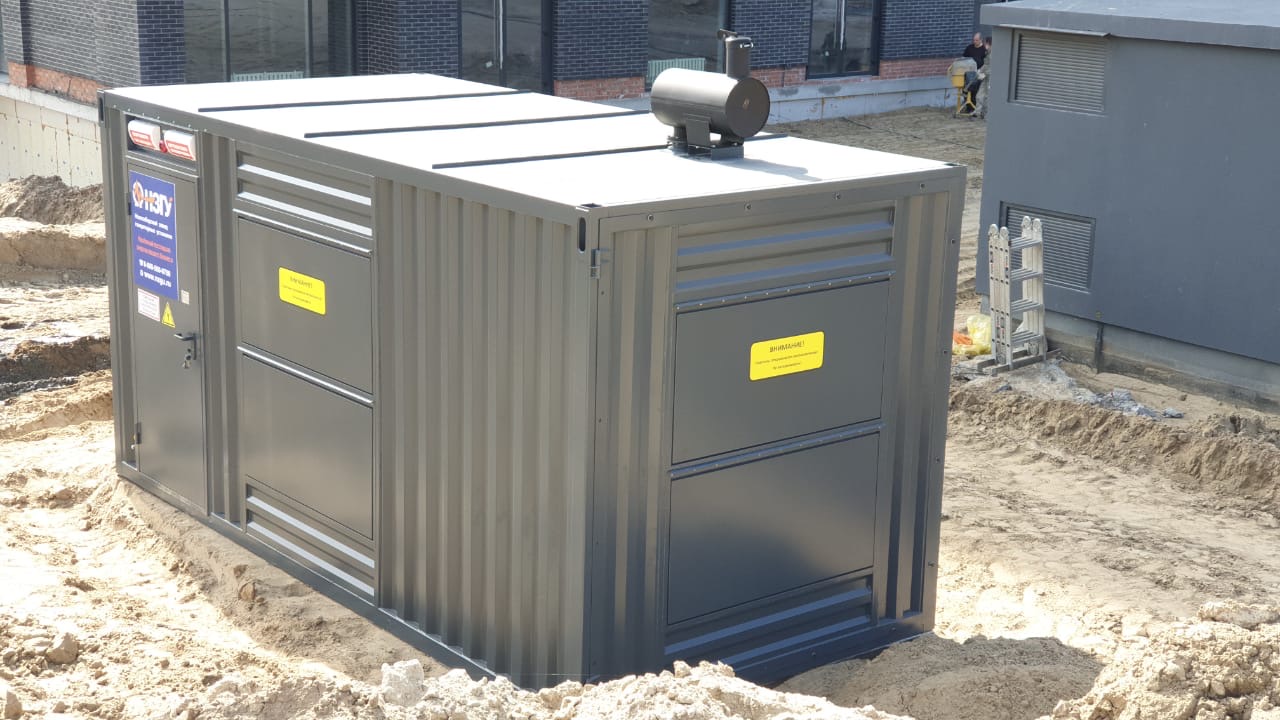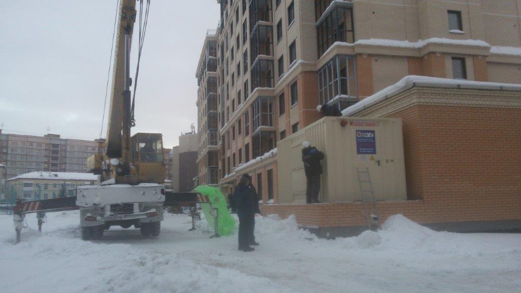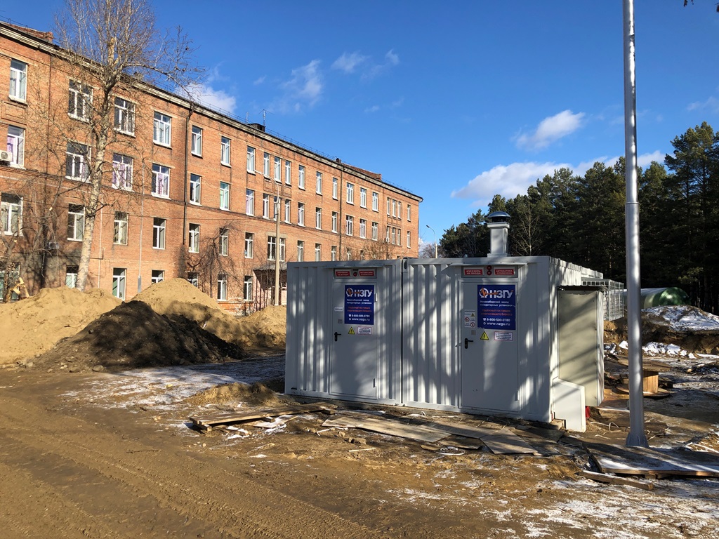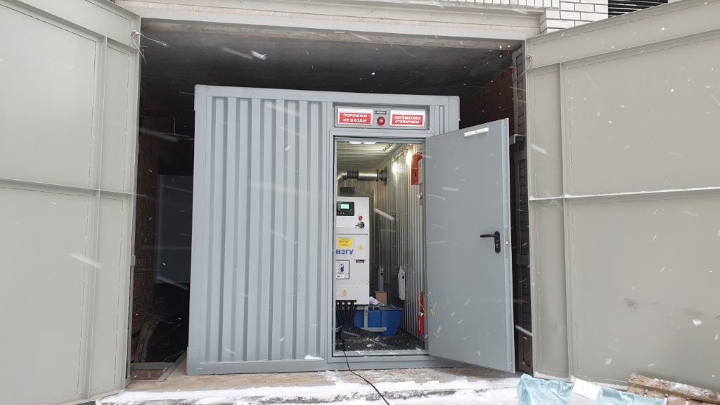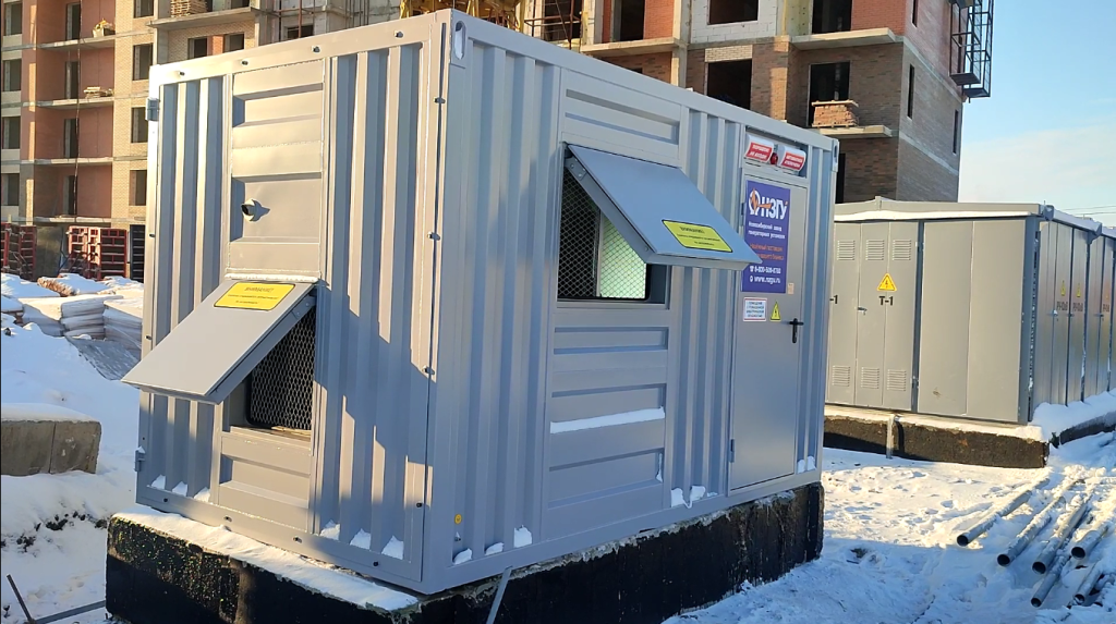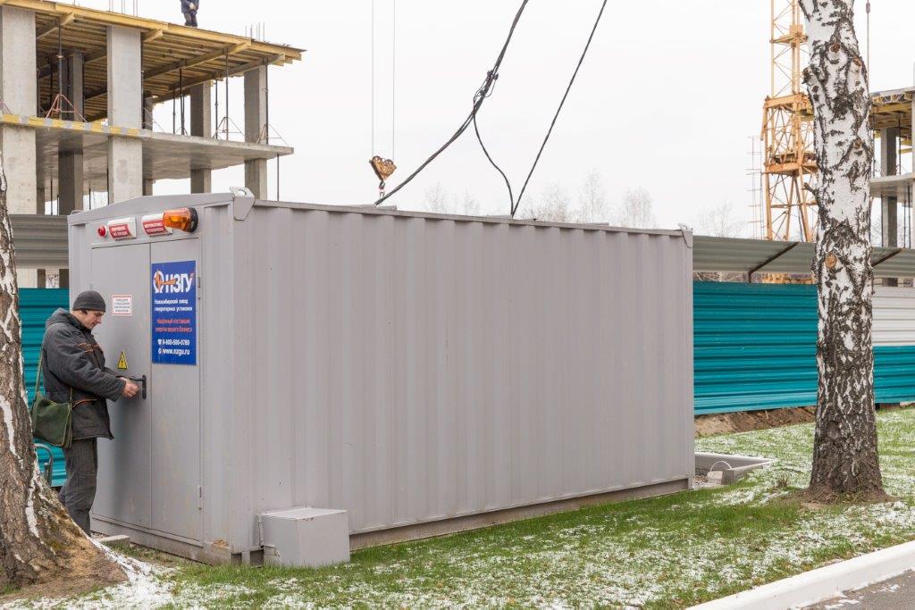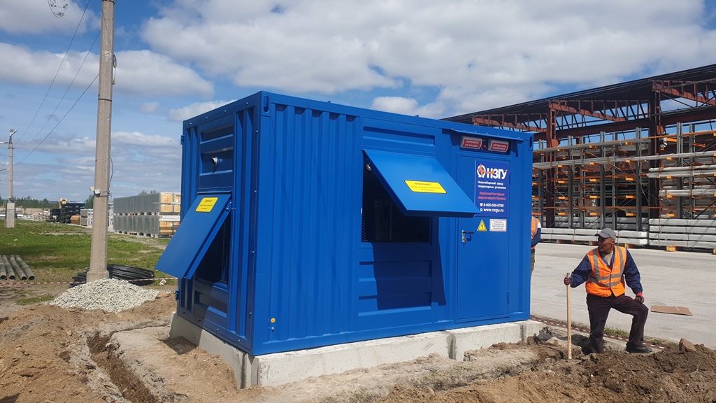 Специалисты НЗГУ установили дизельгенератор 200кВт контейнерного исполнения на одном из новых жилых комплексов Наукограда Кольцово. Для того, чтобы дизельгенератор не выбивался из общей концепции ЖК застройщик возвёл для него отдельную пристройку к ТП