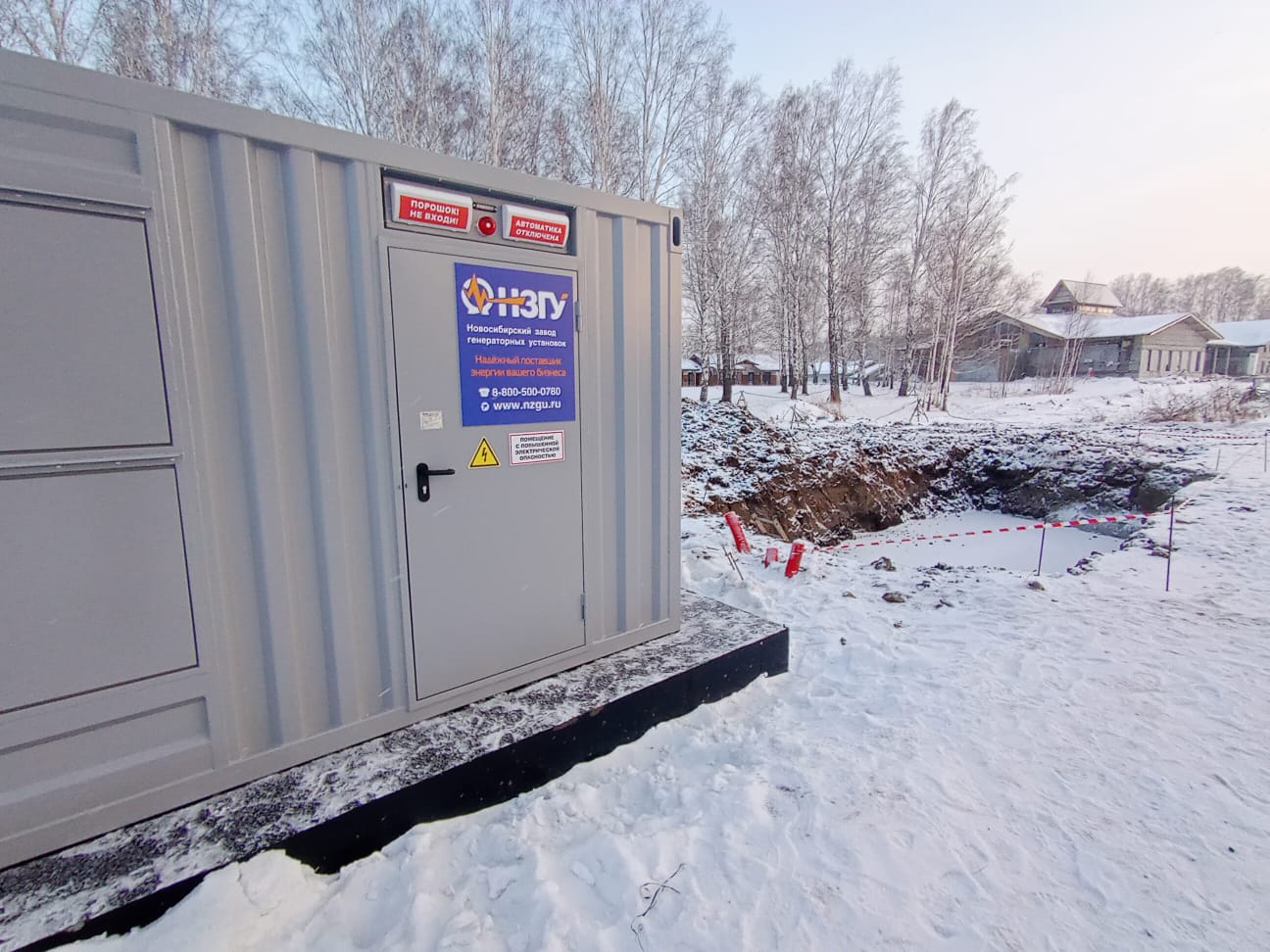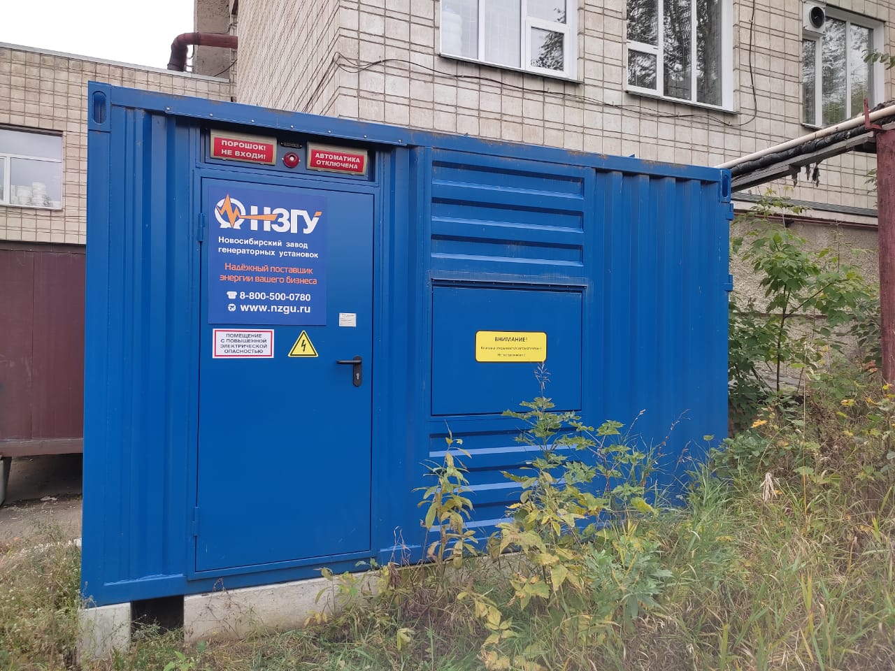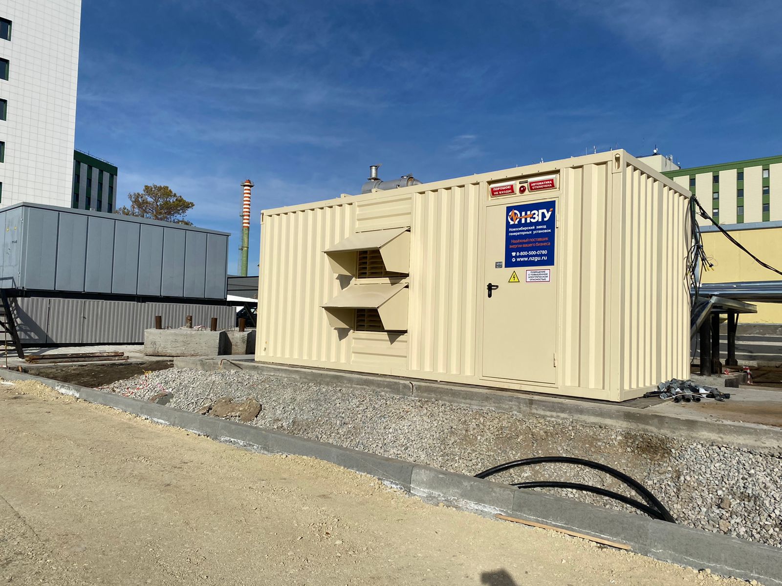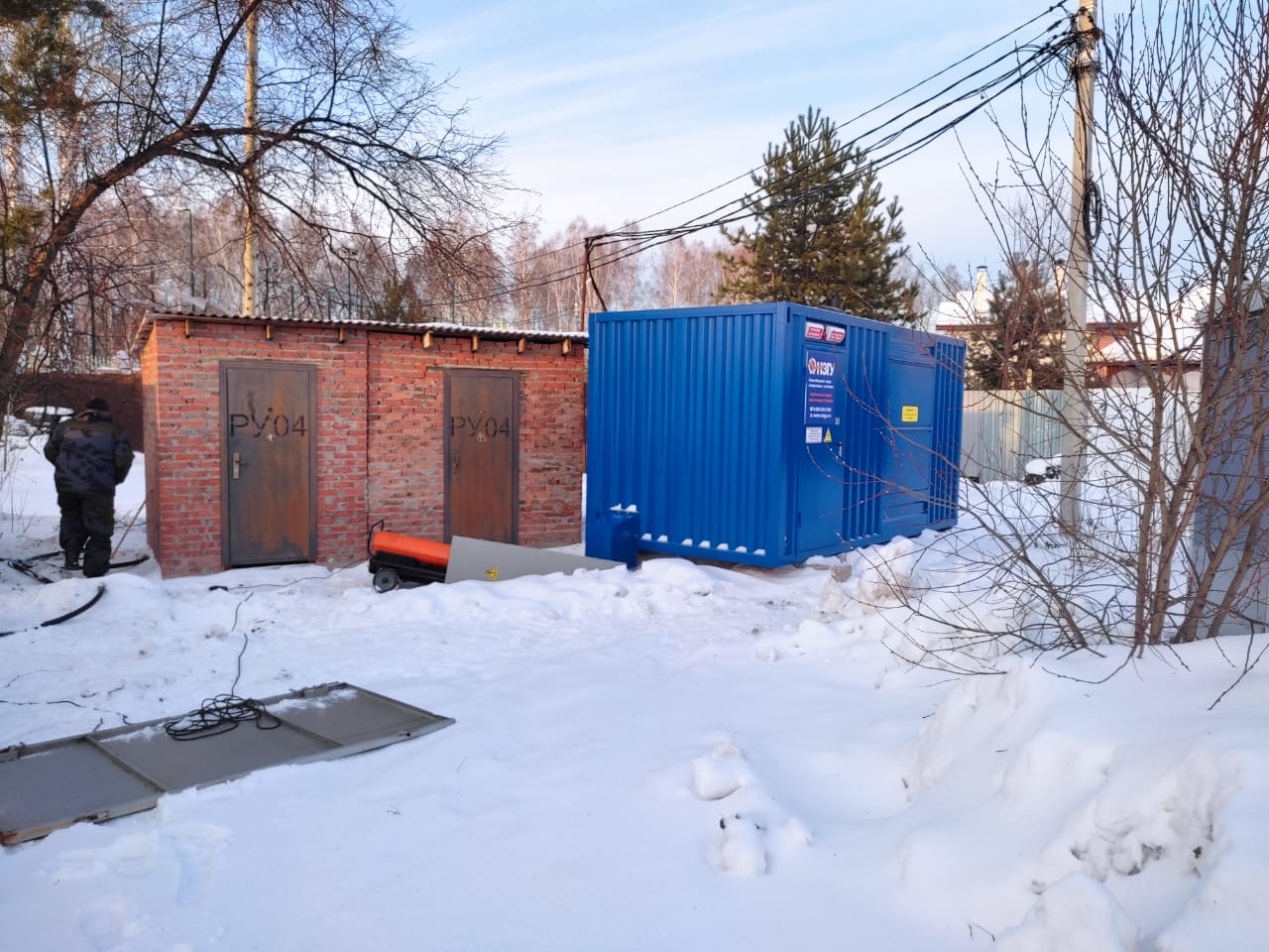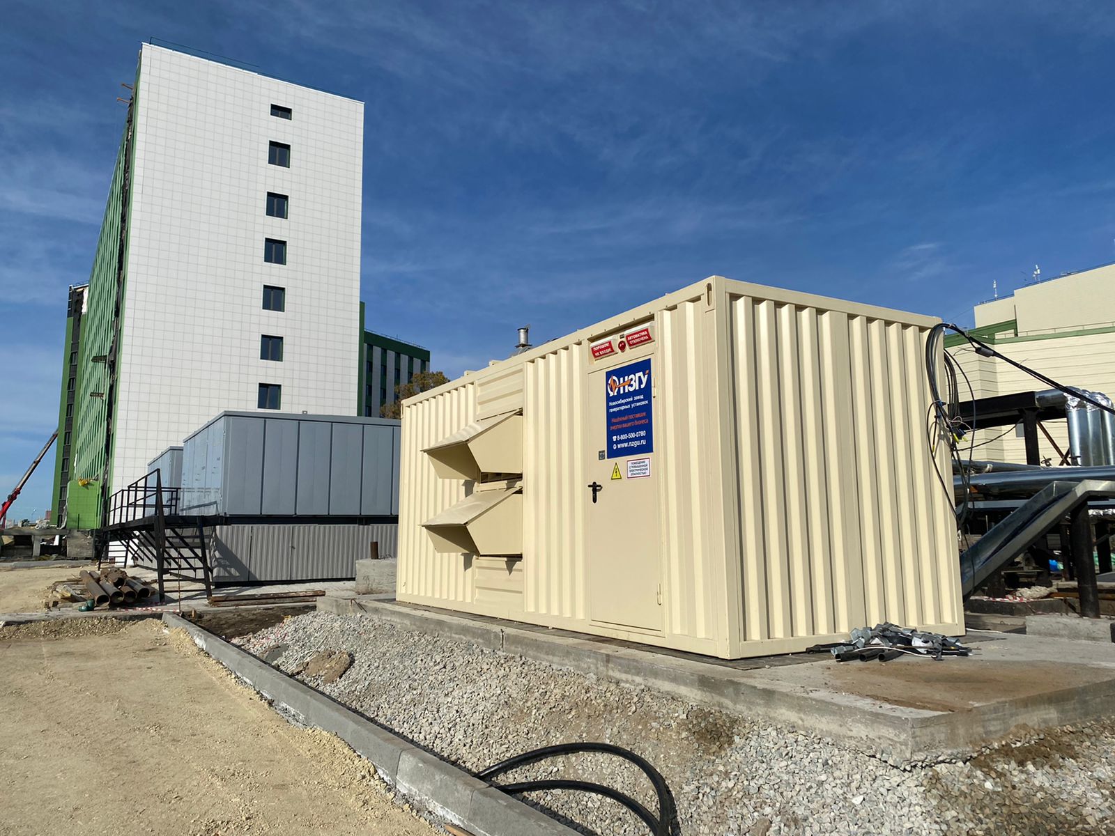 Специалисты НЗГУ установили дизельгенератор 200кВт контейнерного исполнения на одном из новых жилых комплексов Наукограда Кольцово. Для того, чтобы дизельгенератор не выбивался из общей концепции ЖК застройщик возвёл для него отдельную пристройку к ТП
