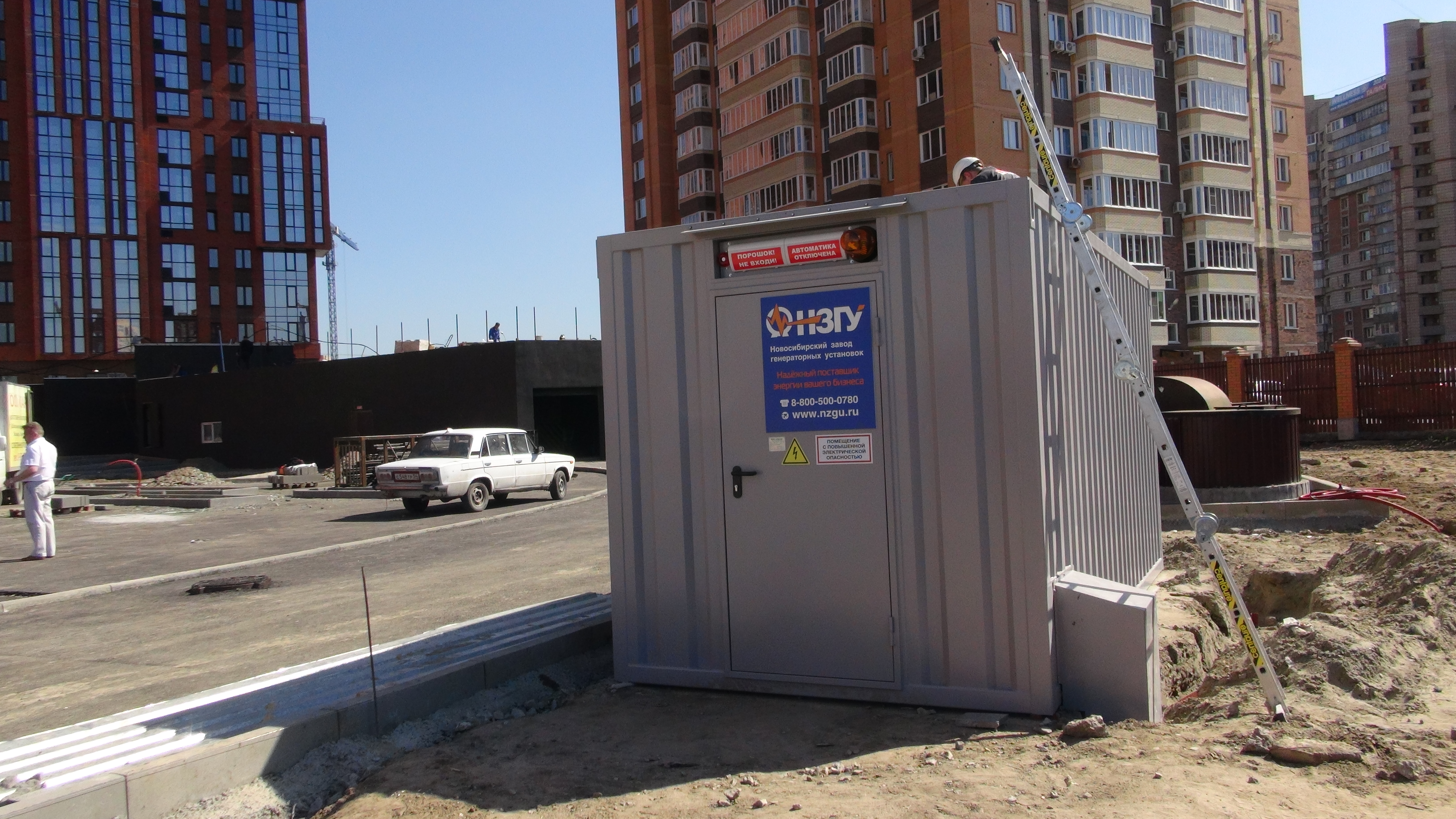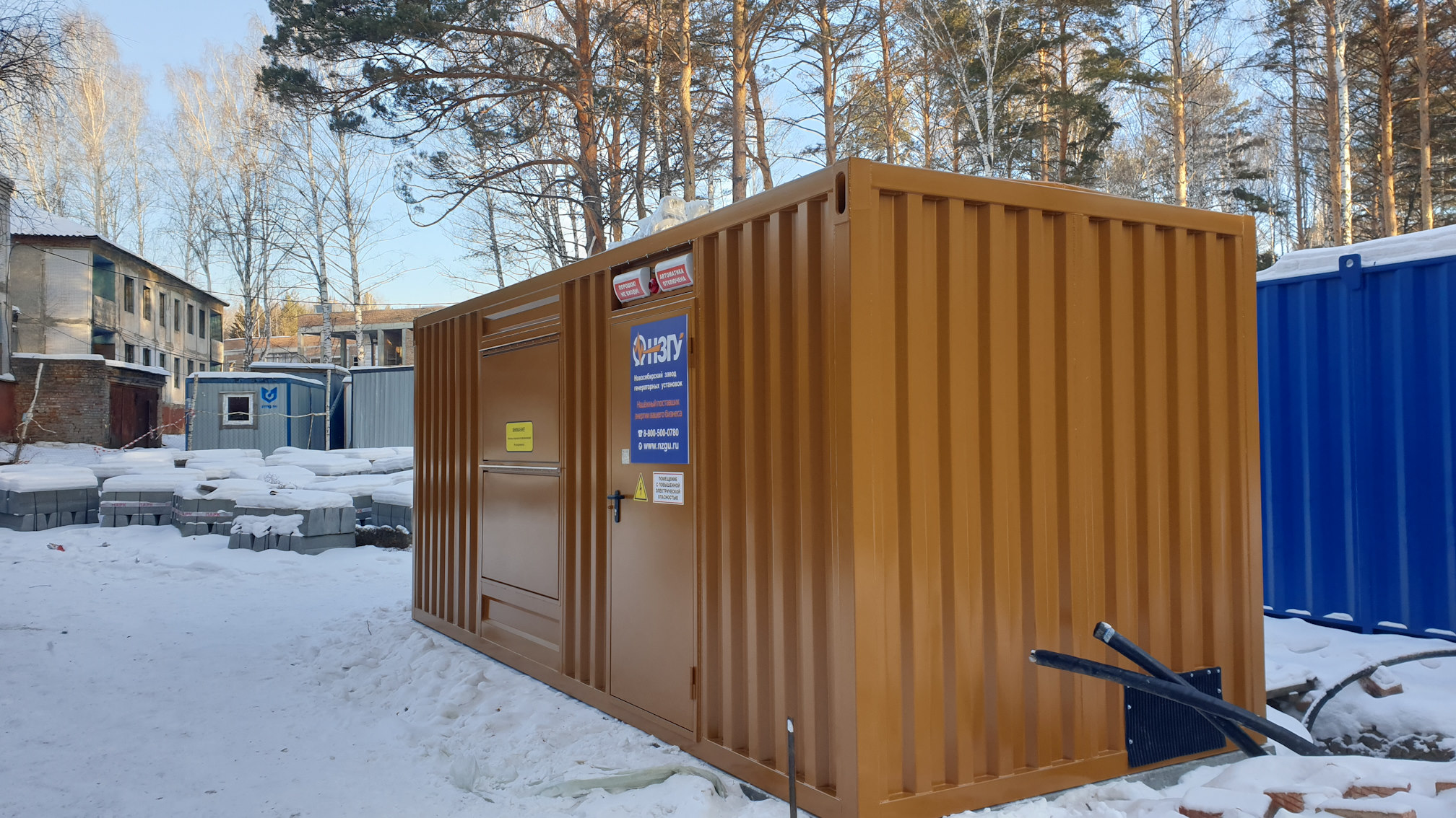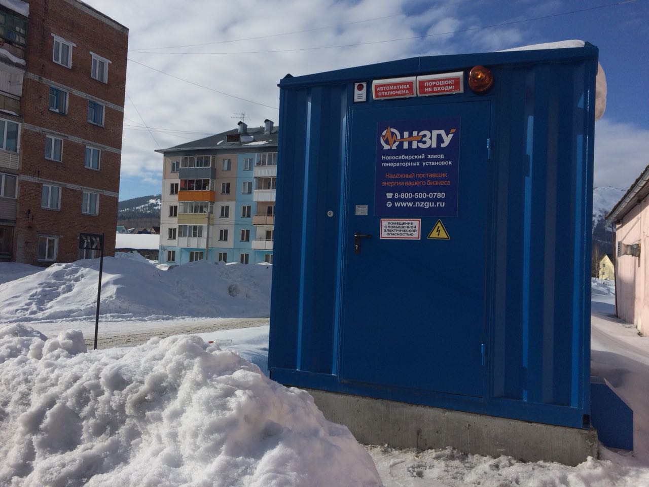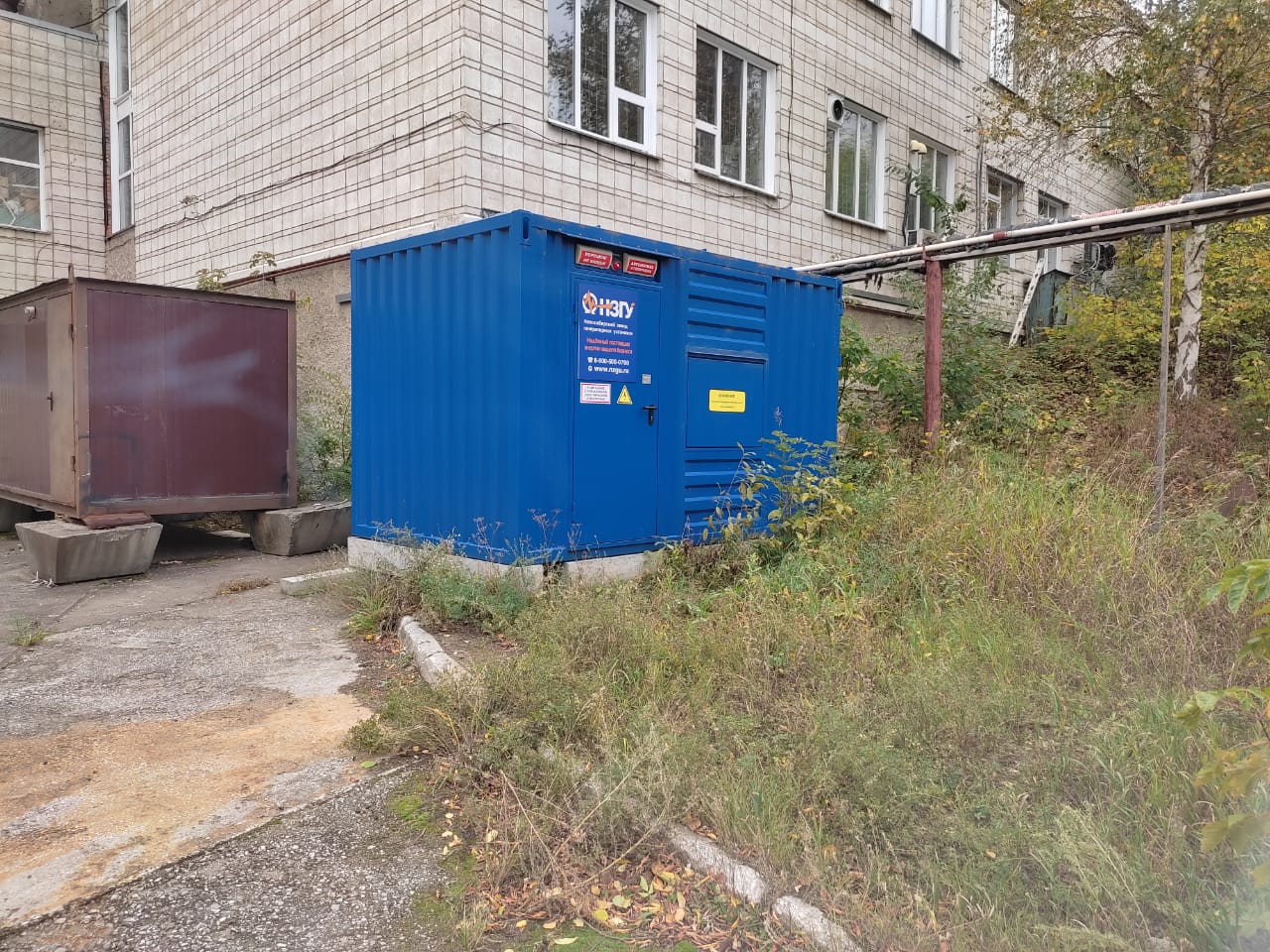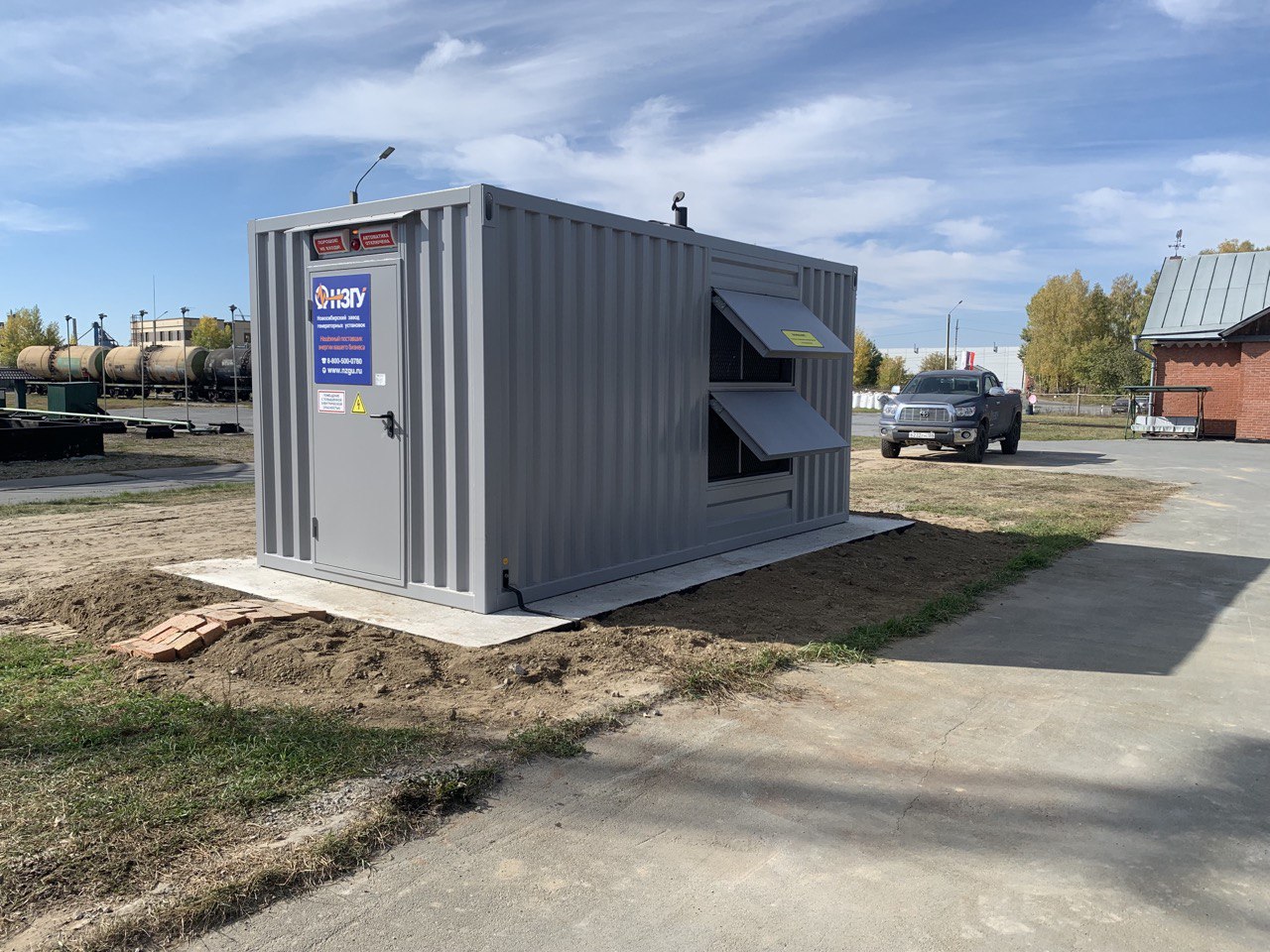 Специалисты НЗГУ установили дизельгенератор 200кВт контейнерного исполнения на одном из новых жилых комплексов Наукограда Кольцово. Для того, чтобы дизельгенератор не выбивался из общей концепции ЖК застройщик возвёл для него отдельную пристройку к ТП