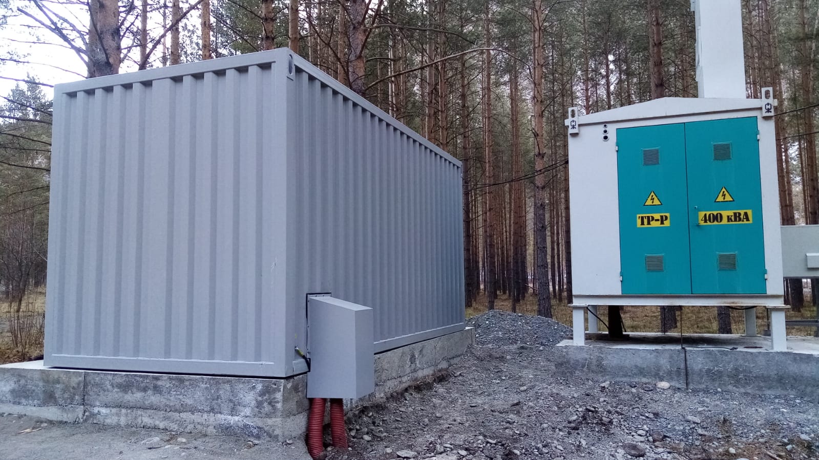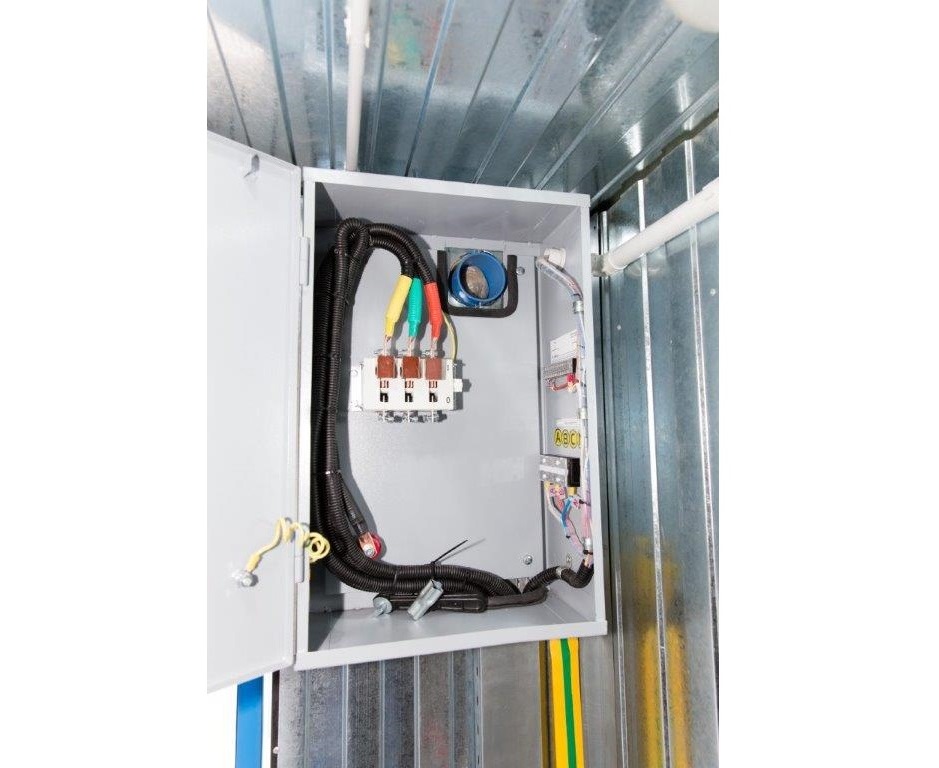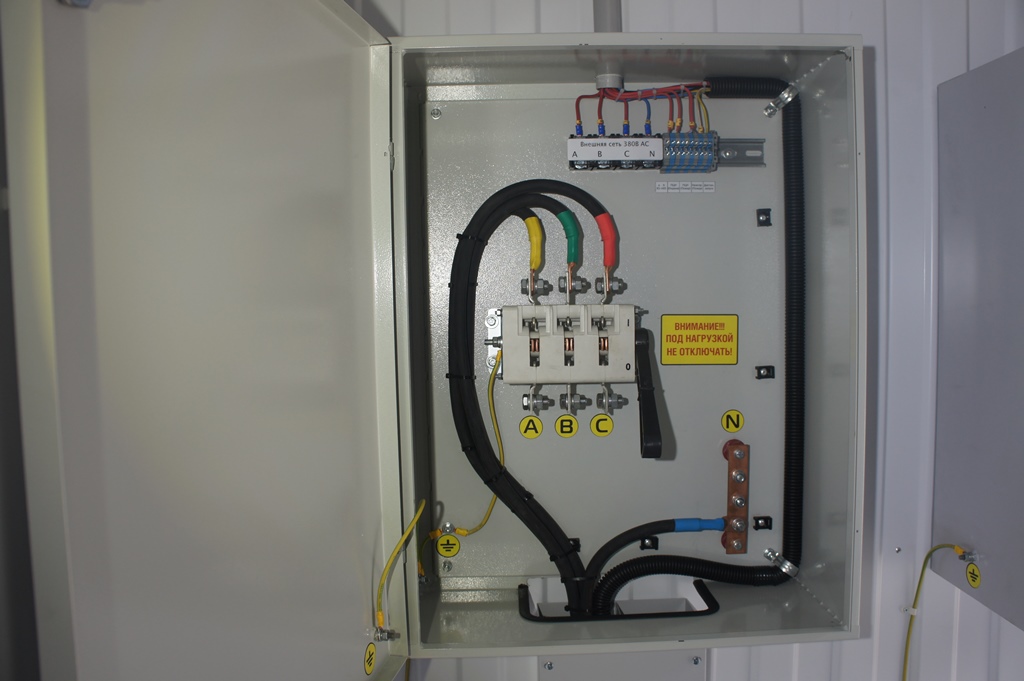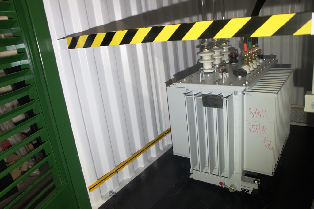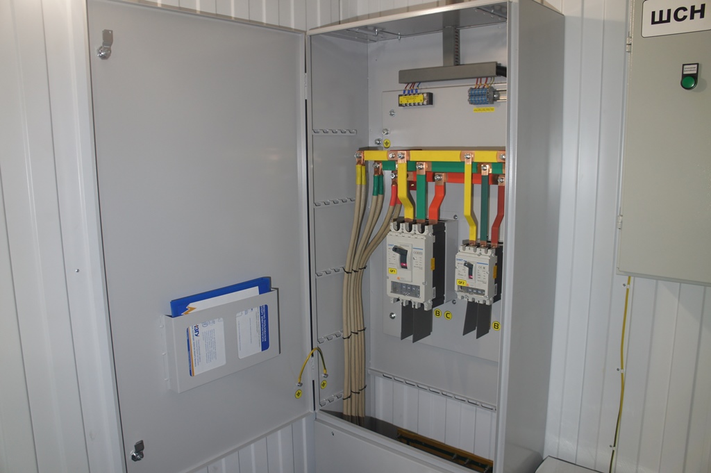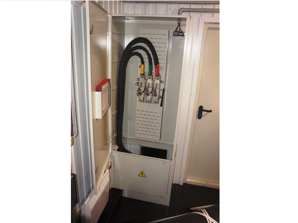 Блок-контейнер с трансформаторной подстанцией 250 кВА 10/0,4 кВ и дизельгенератором 125 кВА для гарантированного электроснабжения базы отдыха в Горном Алтае. В основном режиме питание осуществляется от ТП 10/0,4кВ, при пропадании внешней сети - от дизельгенератора 100 кВт. Переключение осуществляется в автоматическом режиме шкафом АВР.