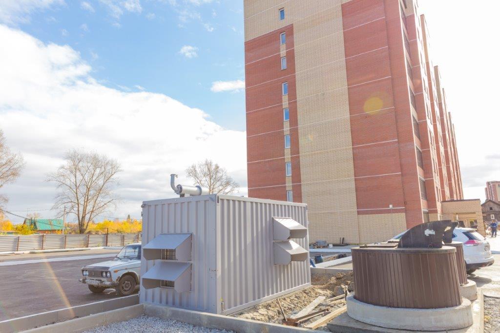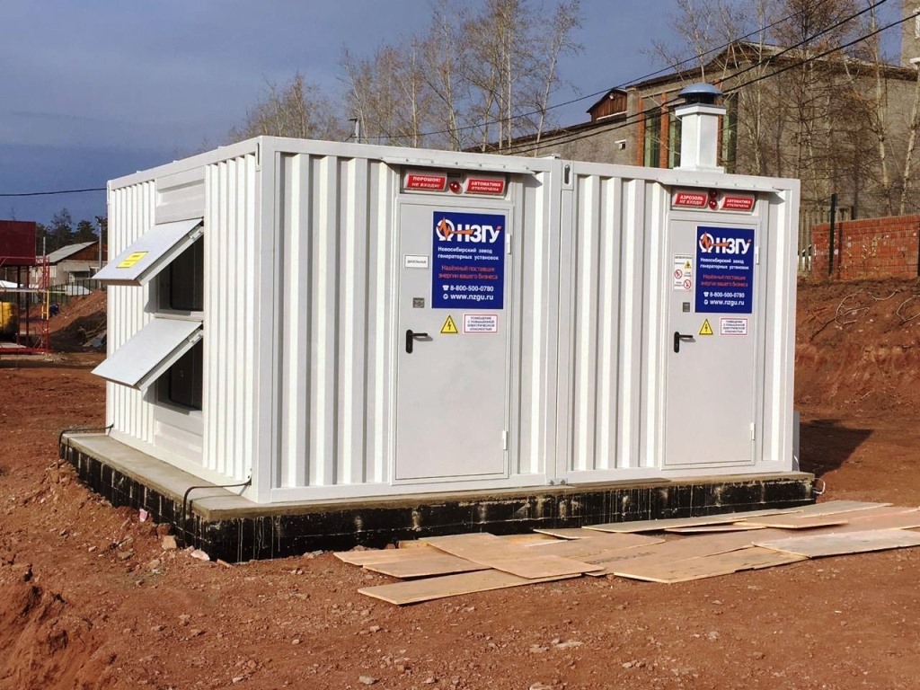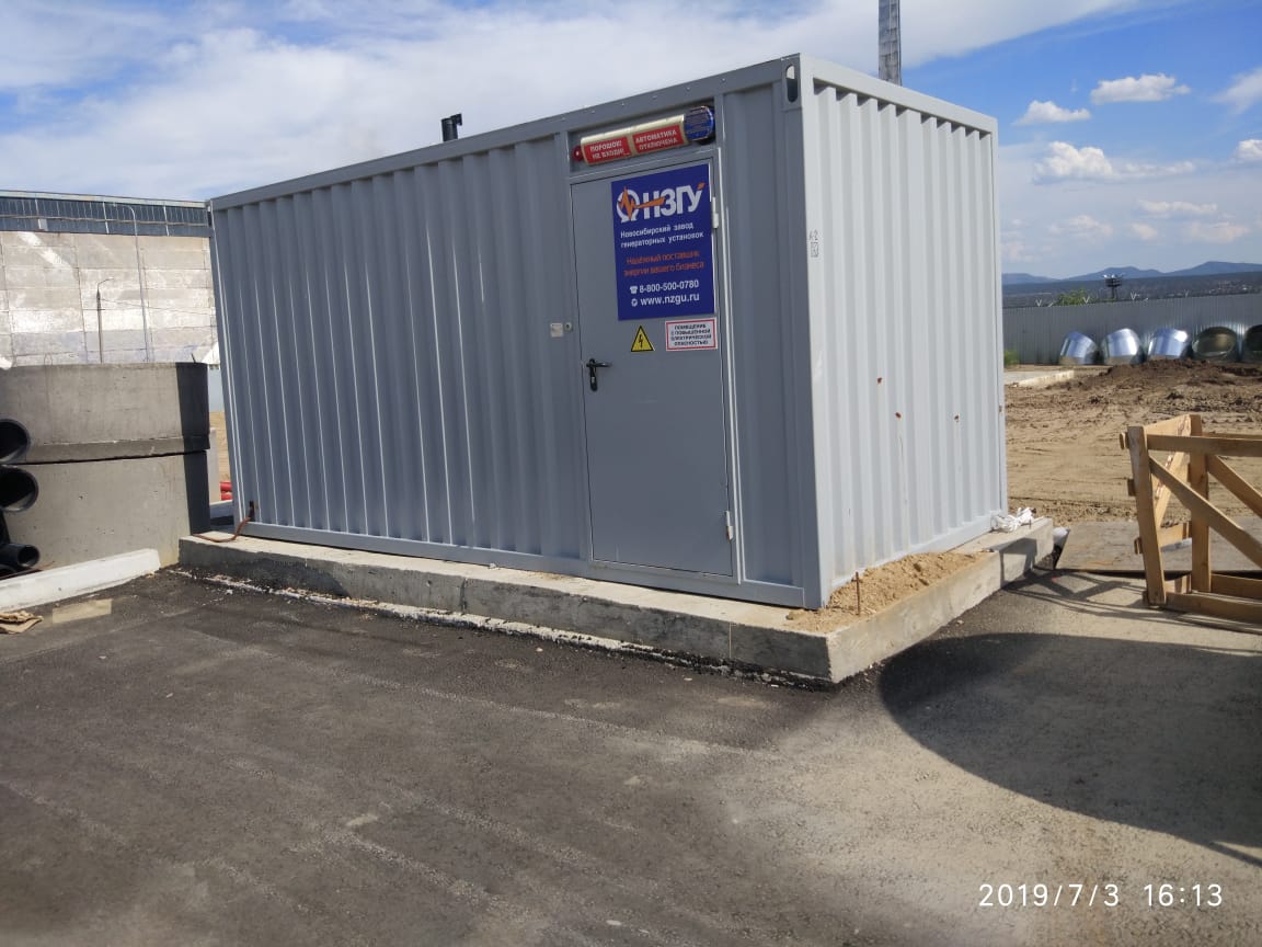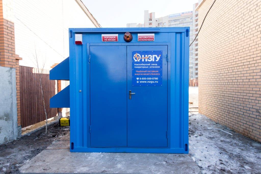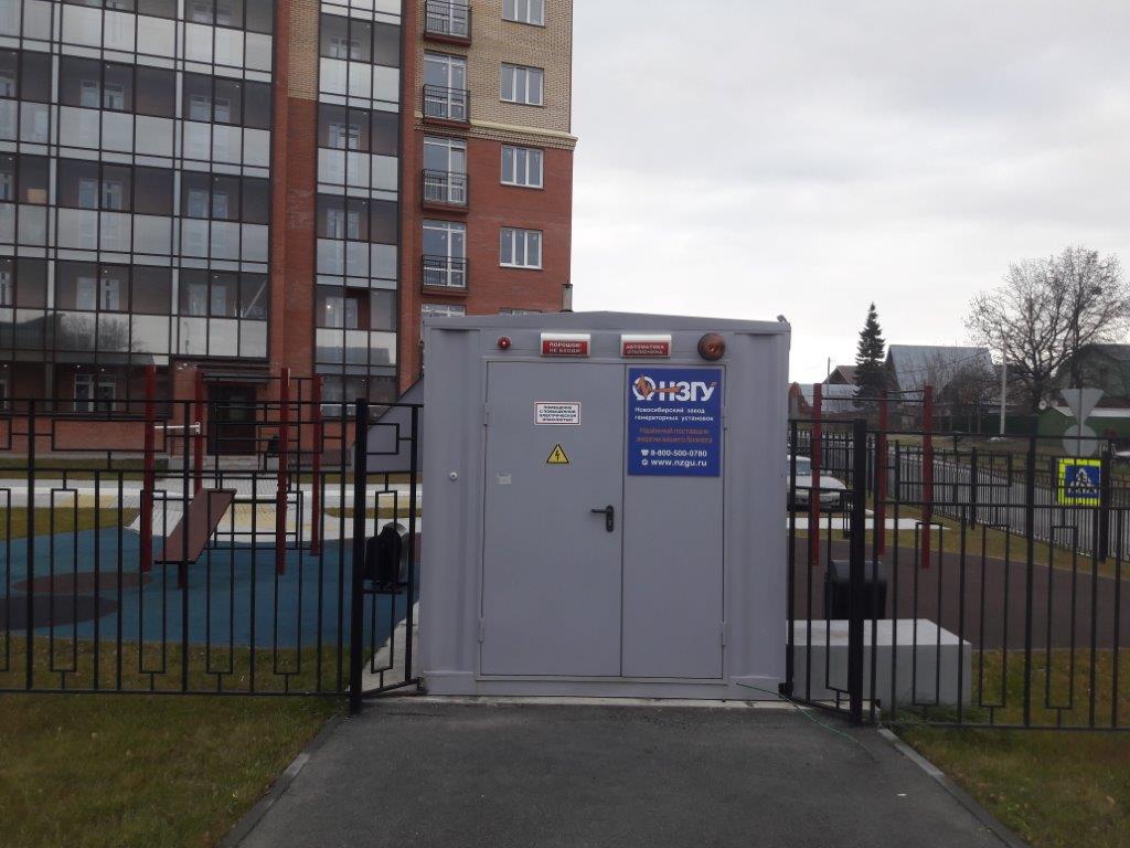 Дизельгенератор предназначен для резервного электроснабжения противопожарной автоматики строящихся жилых домов в пригородном посёлке Новосибирска.