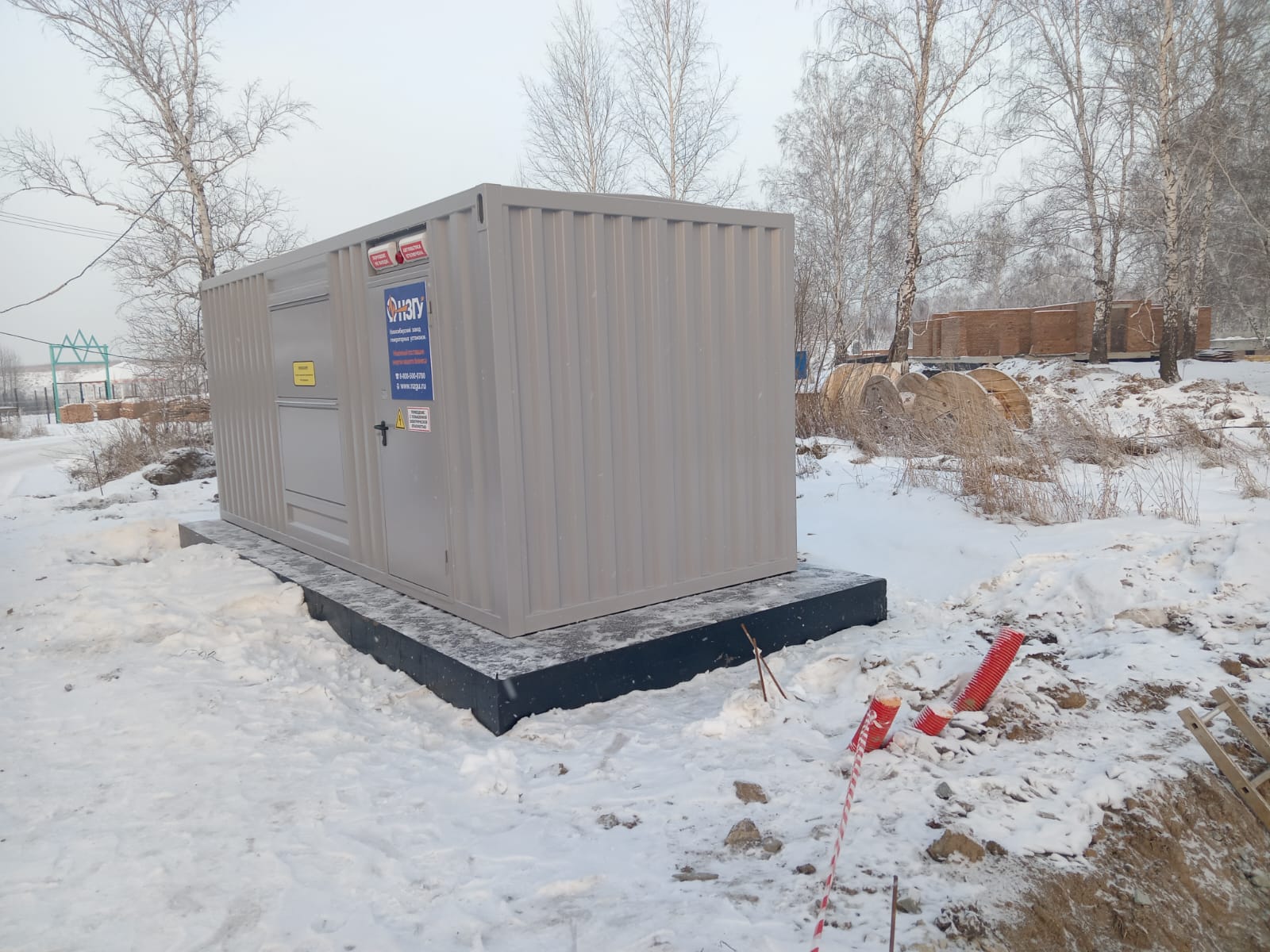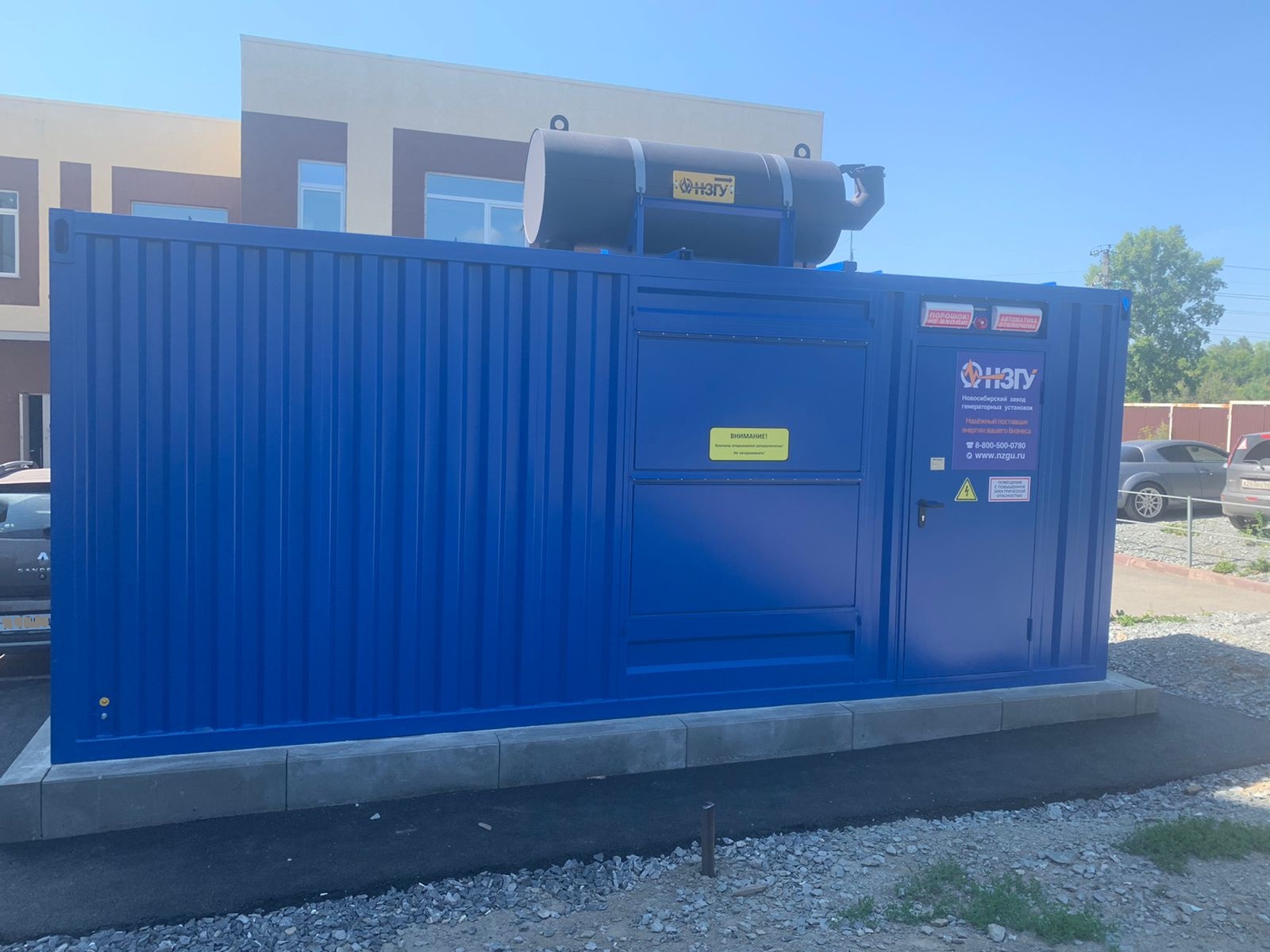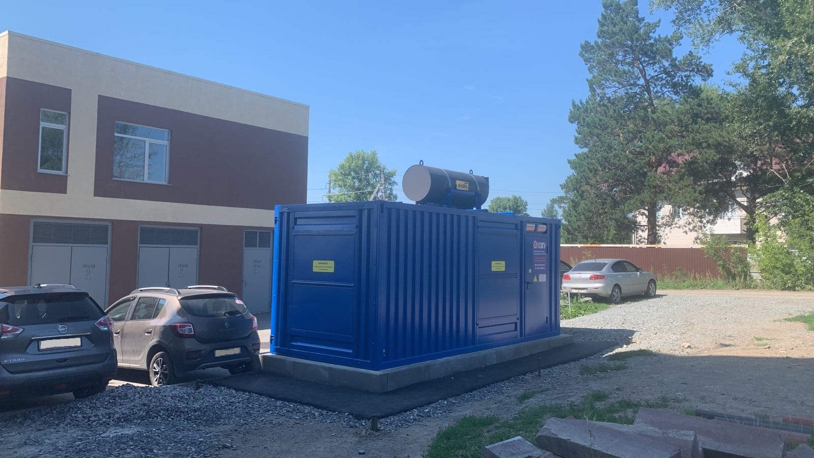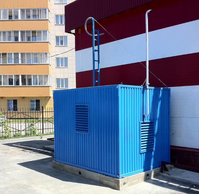 Дизельгенератор предназначен для резервного электроснабжения противопожарной автоматики строящихся жилых домов в пригородном посёлке Новосибирска.