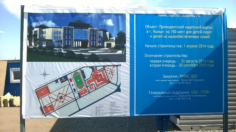 Комплекс зданий, возводимый в Кызыле подрядной организацией ООО «МСУ-4» под общим руководством ОАО «Главное управление обустройства войск» Министерства обороны России, станет одним из основных юбилейных объектов на территории республики, отмечающей в этом году 100-летие единения с Россией. Инициатором создания в Кызыле кадетского училища на 75 воспитанников стал глава региона Шолбан Кара-оол. Эта инициатива нашла одобрение со стороны министра обороны Сергея Шойгу, уроженца Тувы. При его поддержке республика попала в число шести регионов, на территории которых Указом Президента страны будут созданы президентские кадетские училища на 150 мест.