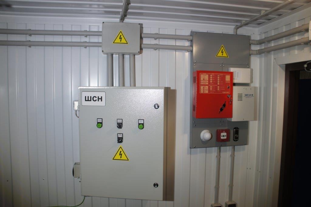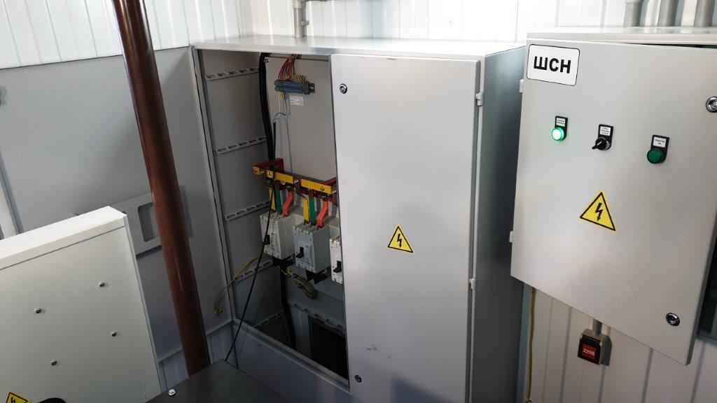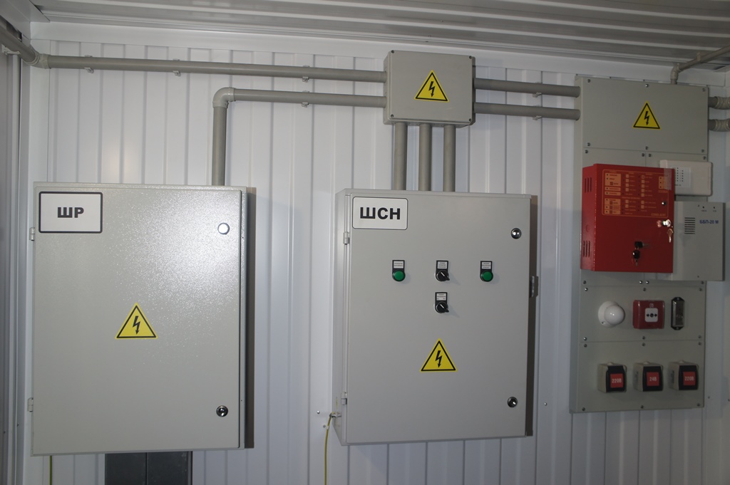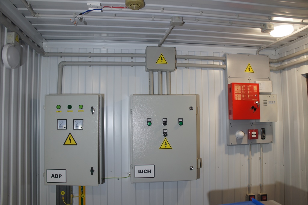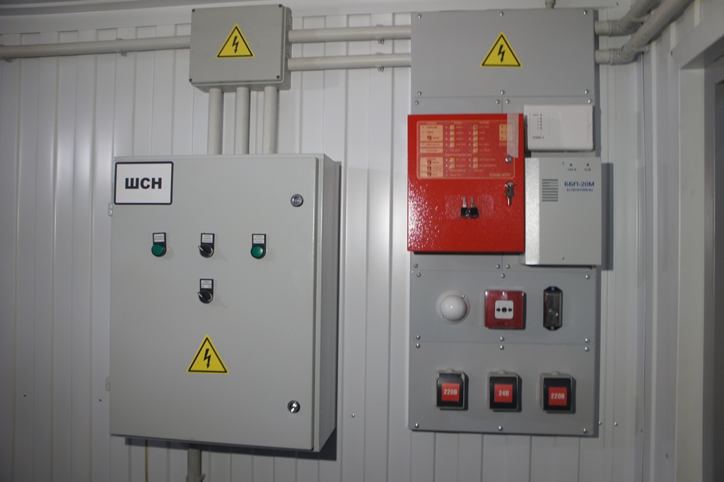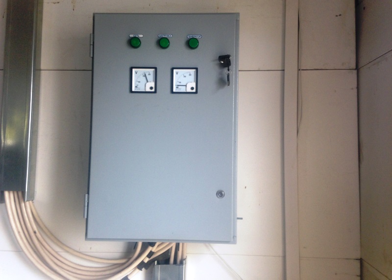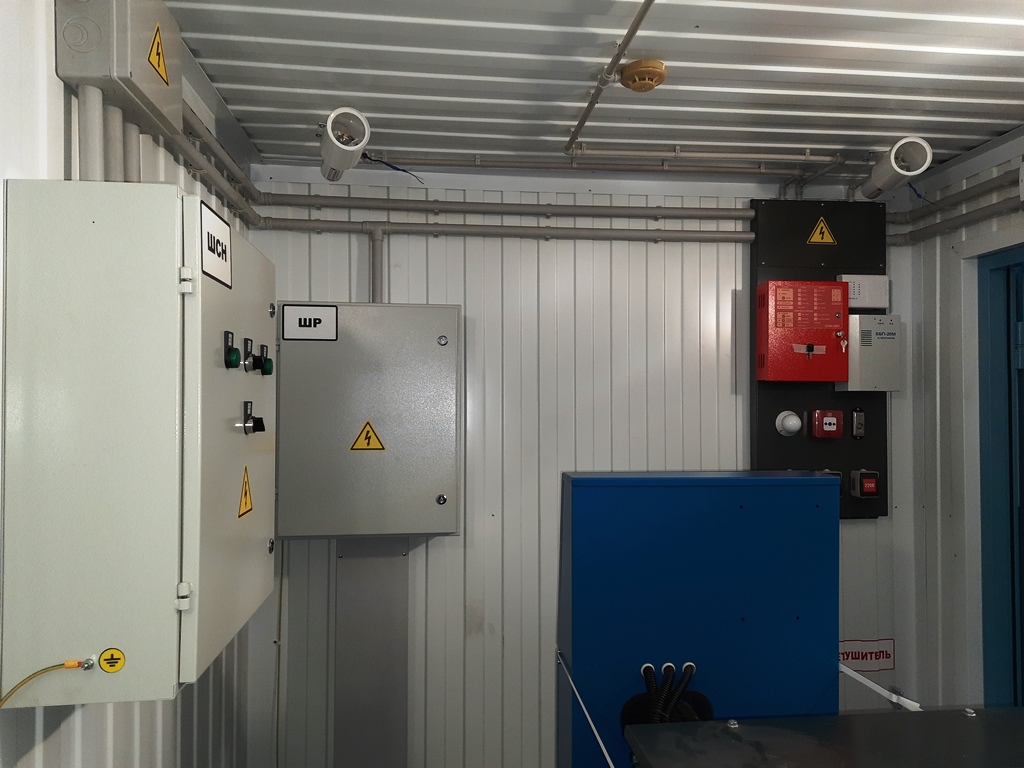 Система резервного электроснабжения объекта - Кудряшовский мясокомбинат. Была поставлена задача по резервированию с помощью дизельгенератора электропитания котельной и другого оборудования мясокомбината при пропадании сети на обоих силовых вводах ТП. Задача была решена сотрудниками нашего предприятия. Для контроля состояния системы в блок-контейнере установлен GSM передатчик.