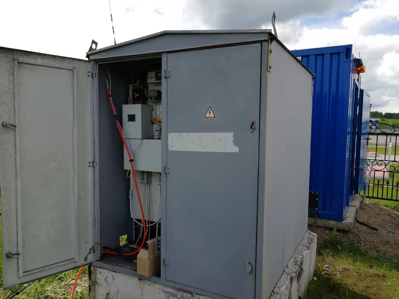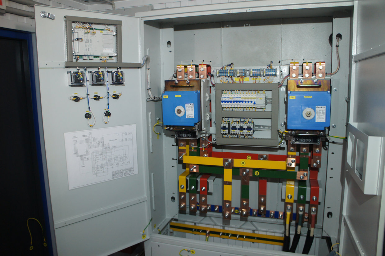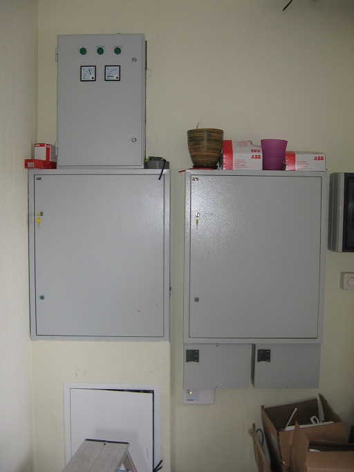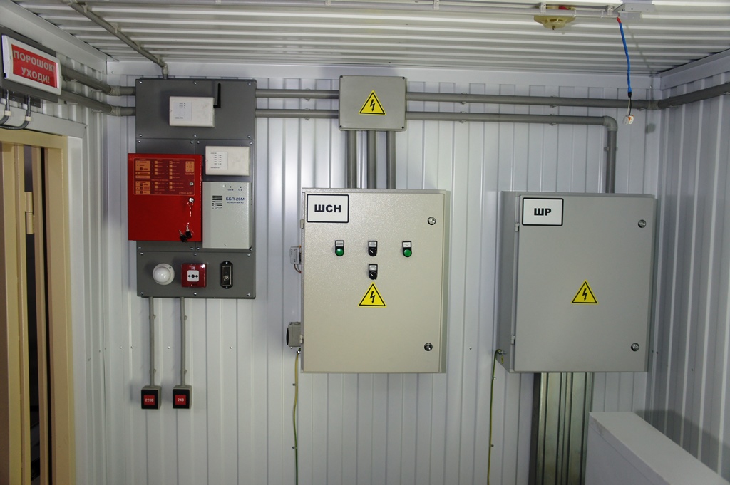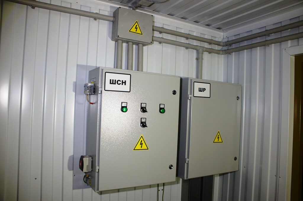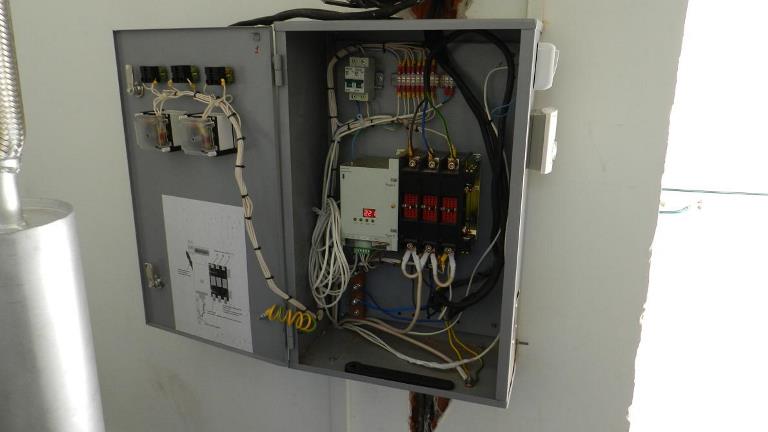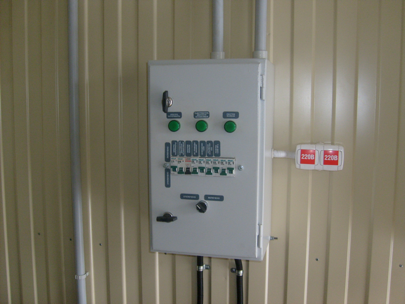Система резервного электроснабжения объекта - Кудряшовский мясокомбинат. Была поставлена задача по резервированию с помощью дизельгенератора электропитания котельной и другого оборудования мясокомбината при пропадании сети на обоих силовых вводах ТП. Задача была решена сотрудниками нашего предприятия. Для контроля состояния системы в блок-контейнере установлен GSM передатчик.