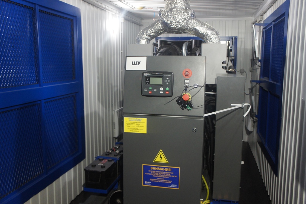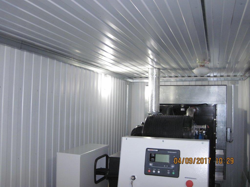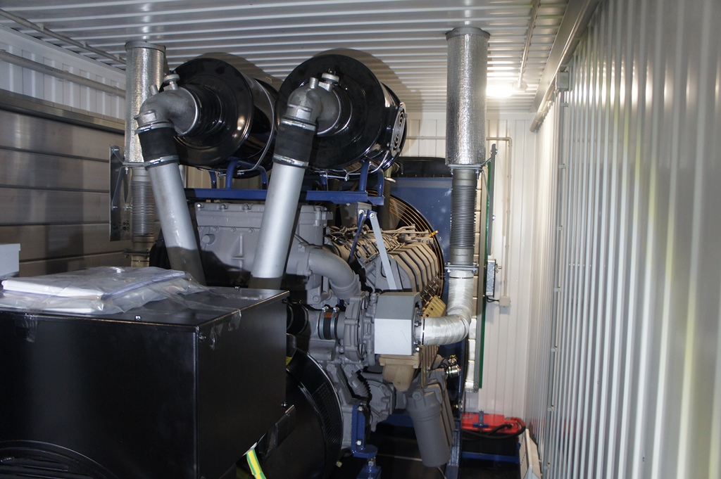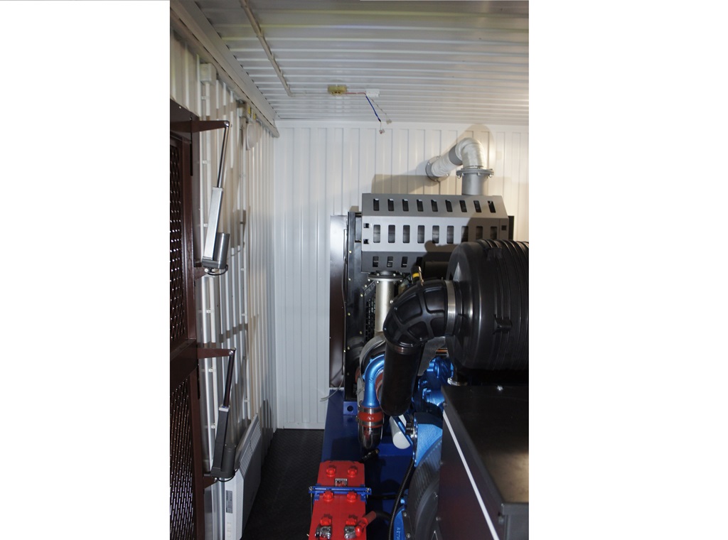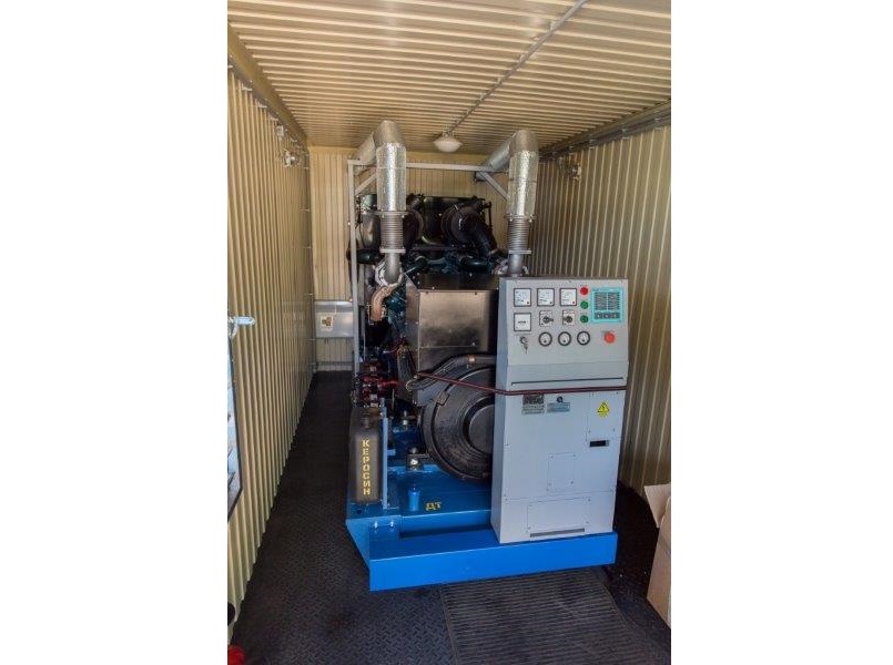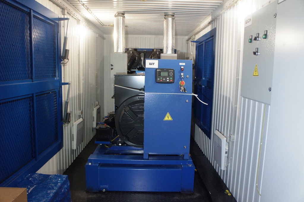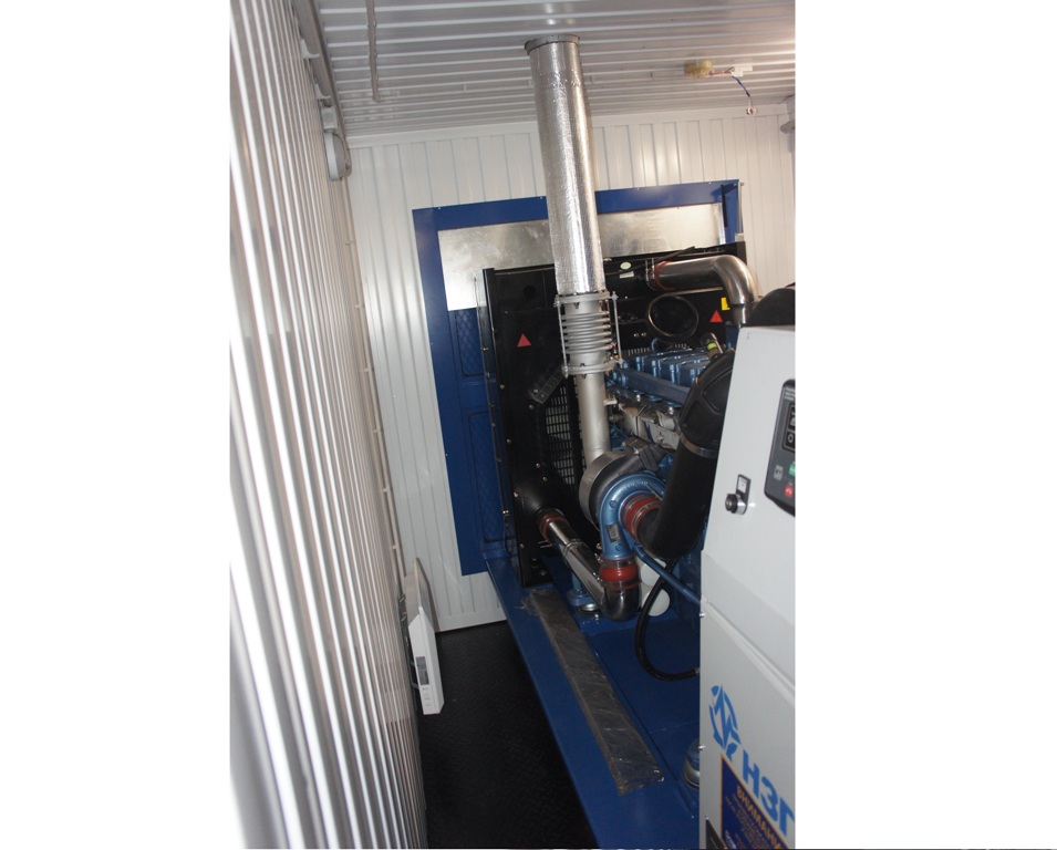 Дополнительно установлен электрический подогреватель ОЖ двигателя, дополнительный расходный бак для машинного масла и дополнительный топливный бак емкостью 1500 литров для обеспечение непрерывной работы ДГУ в течение 48 часов. Данный дизельный генератор предназначен для резервного электроснабжения Таймырской центральной районной больницы в г. Дудинка Красноярского края. В виду отдаленности и труднодоступности доставка контейнера с ДГУ осуществлялась речным транспортом по реке Енисей в летний период.
