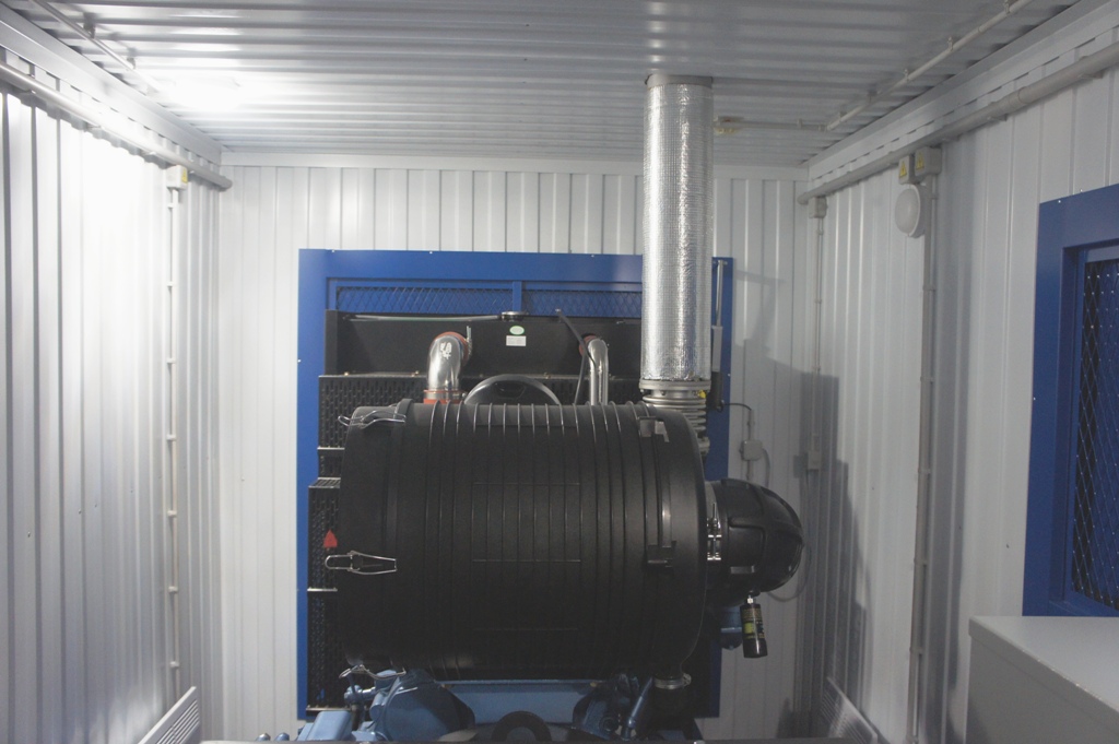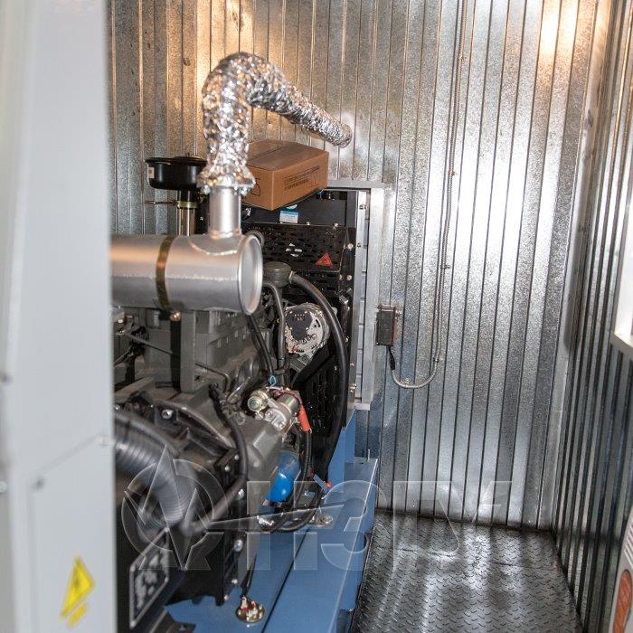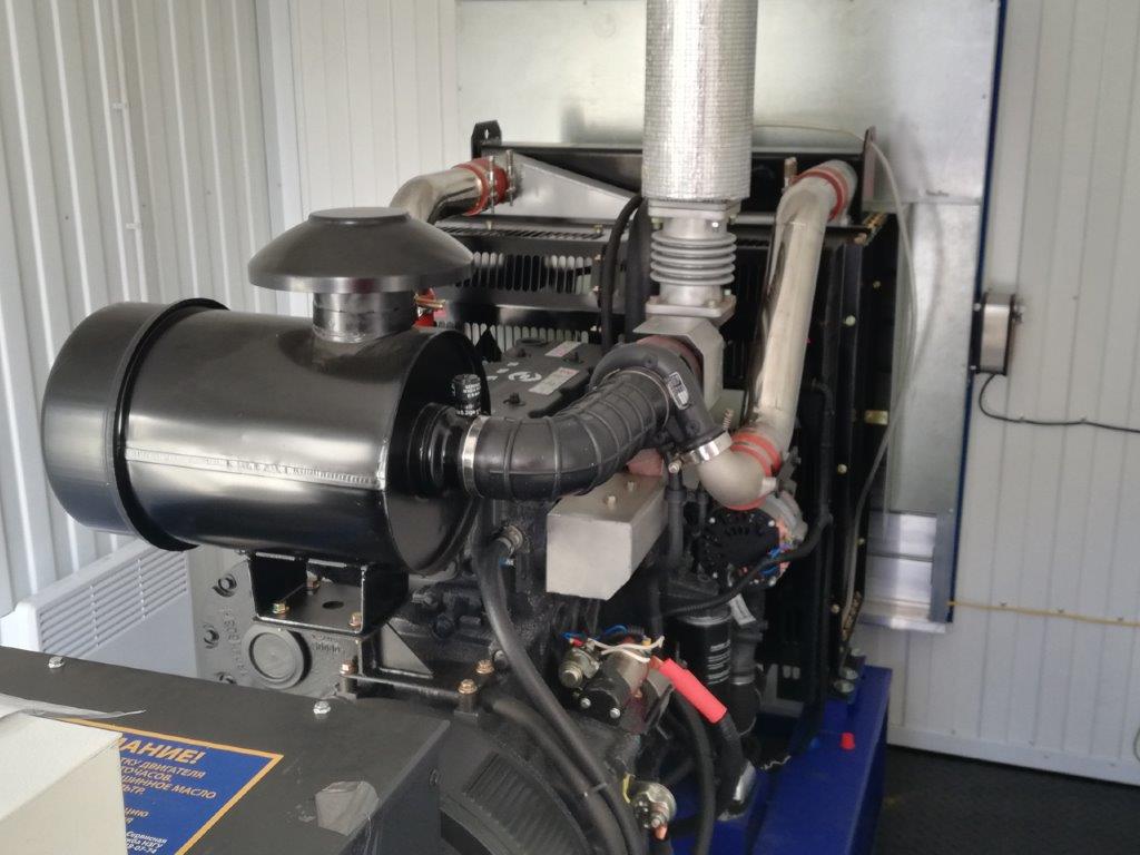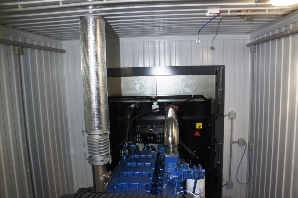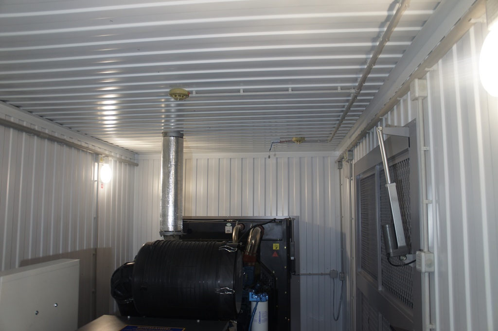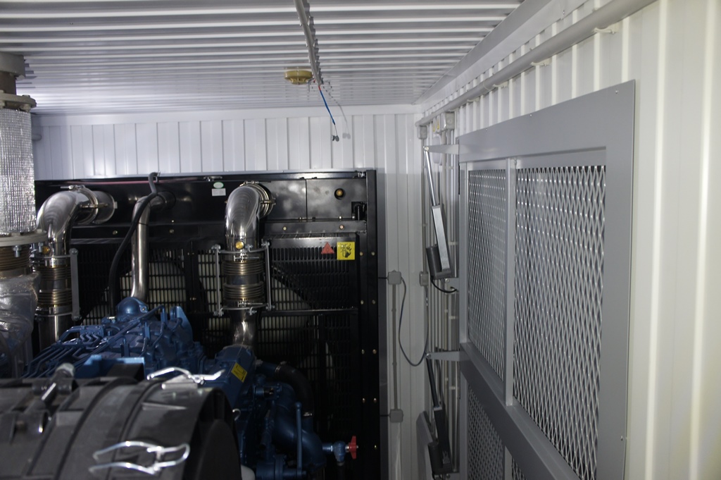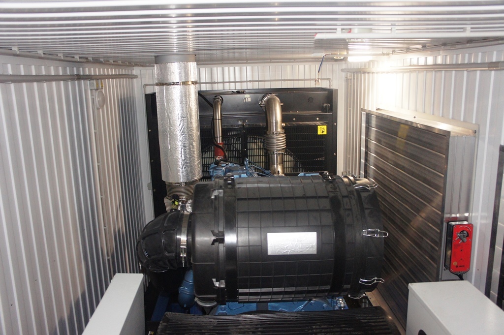Дополнительно установлен электрический подогреватель ОЖ двигателя, дополнительный расходный бак для машинного масла и дополнительный топливный бак емкостью 1500 литров для обеспечение непрерывной работы ДГУ в течение 48 часов. Данный дизельный генератор предназначен для резервного электроснабжения Таймырской центральной районной больницы в г. Дудинка Красноярского края. В виду отдаленности и труднодоступности доставка контейнера с ДГУ осуществлялась речным транспортом по реке Енисей в летний период.