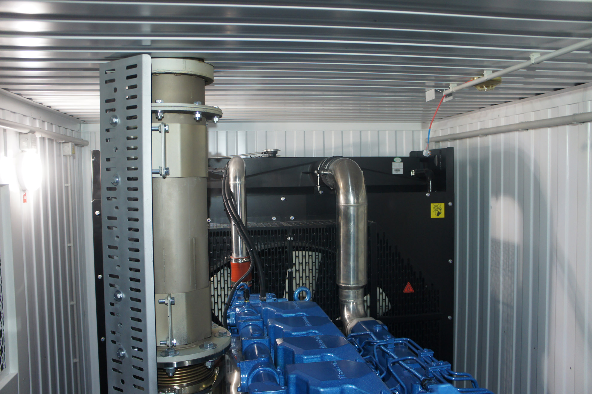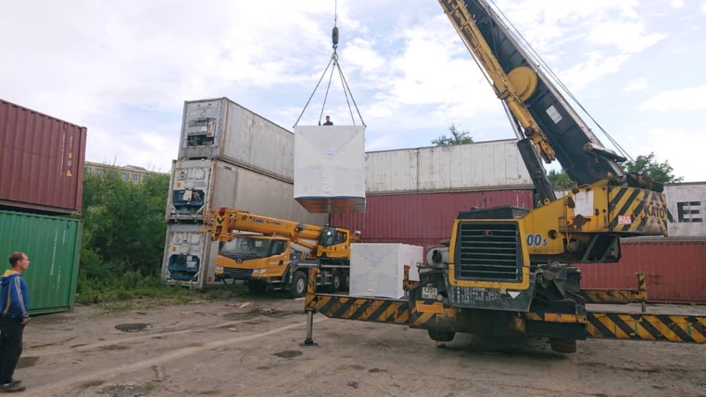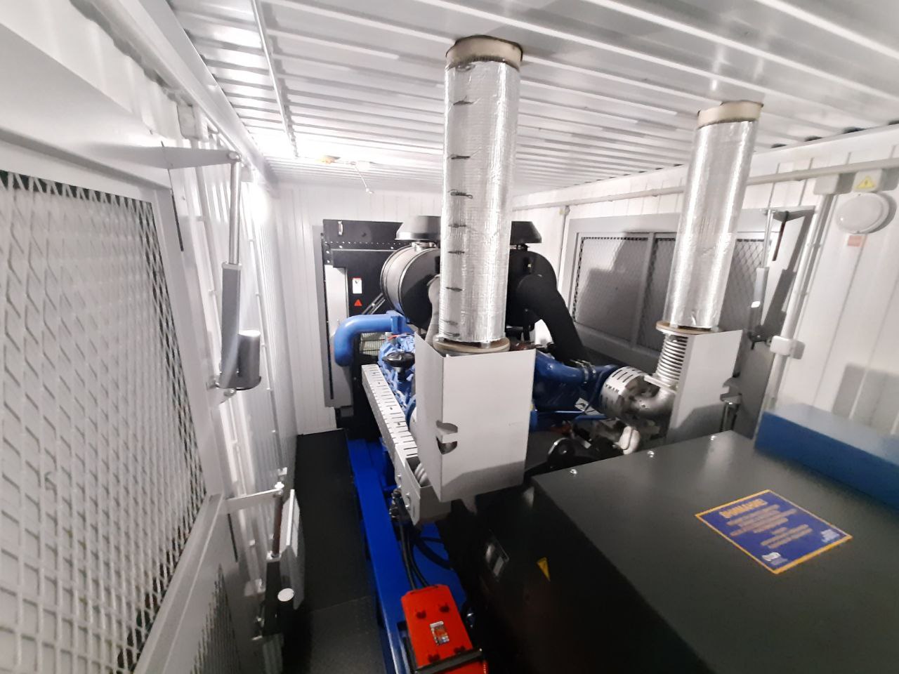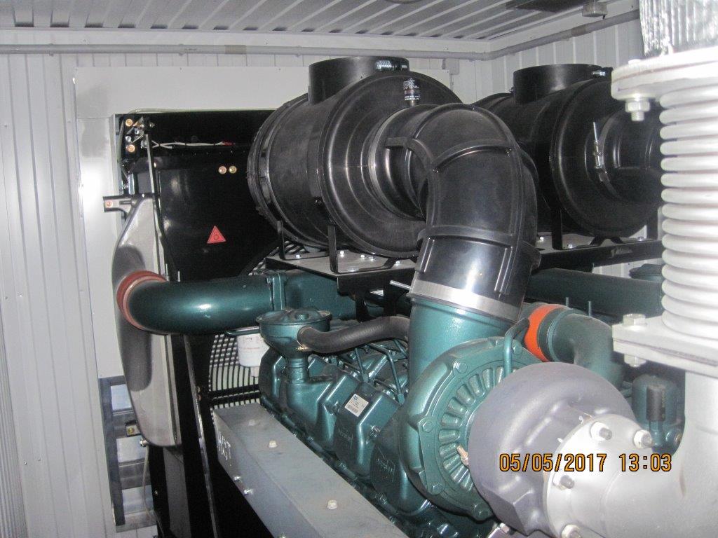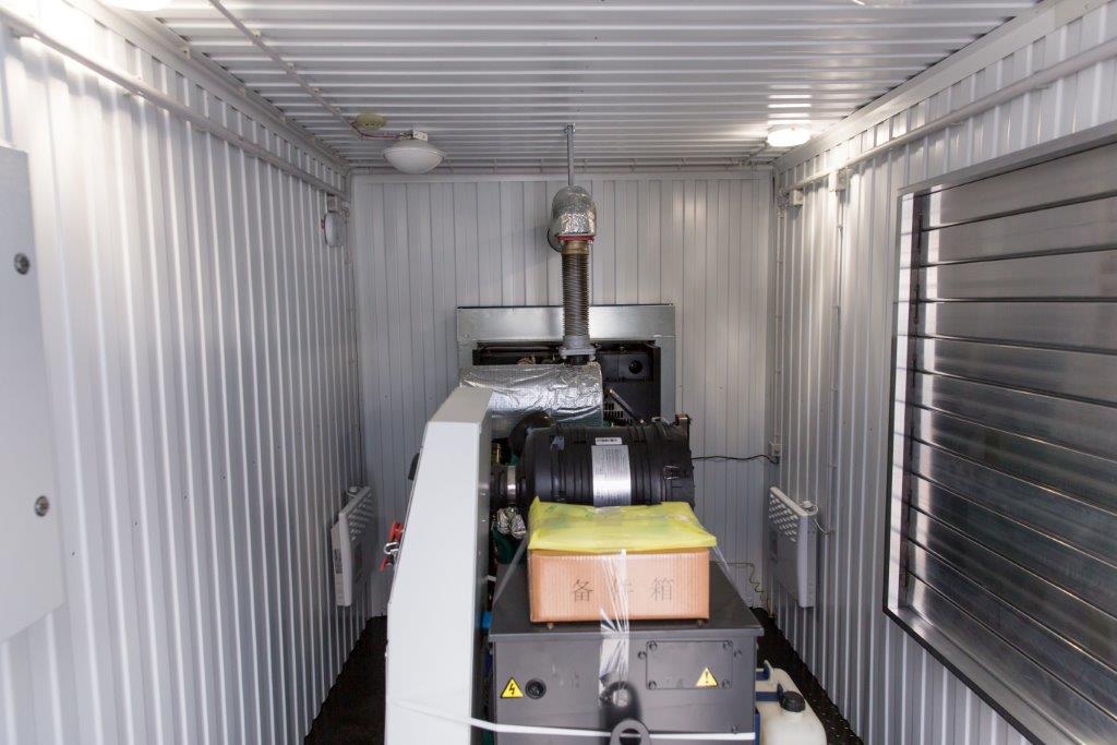 Дополнительно установлен электрический подогреватель ОЖ двигателя, дополнительный расходный бак для машинного масла и дополнительный топливный бак емкостью 1500 литров для обеспечение непрерывной работы ДГУ в течение 48 часов. Данный дизельный генератор предназначен для резервного электроснабжения Таймырской центральной районной больницы в г. Дудинка Красноярского края. В виду отдаленности и труднодоступности доставка контейнера с ДГУ осуществлялась речным транспортом по реке Енисей в летний период.