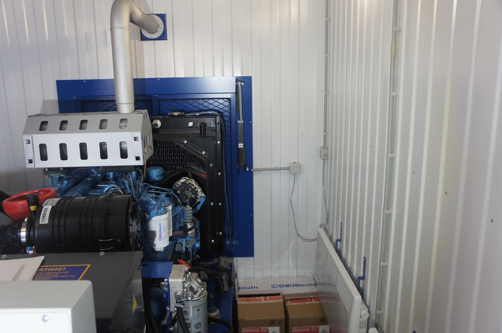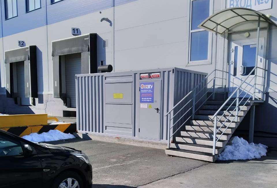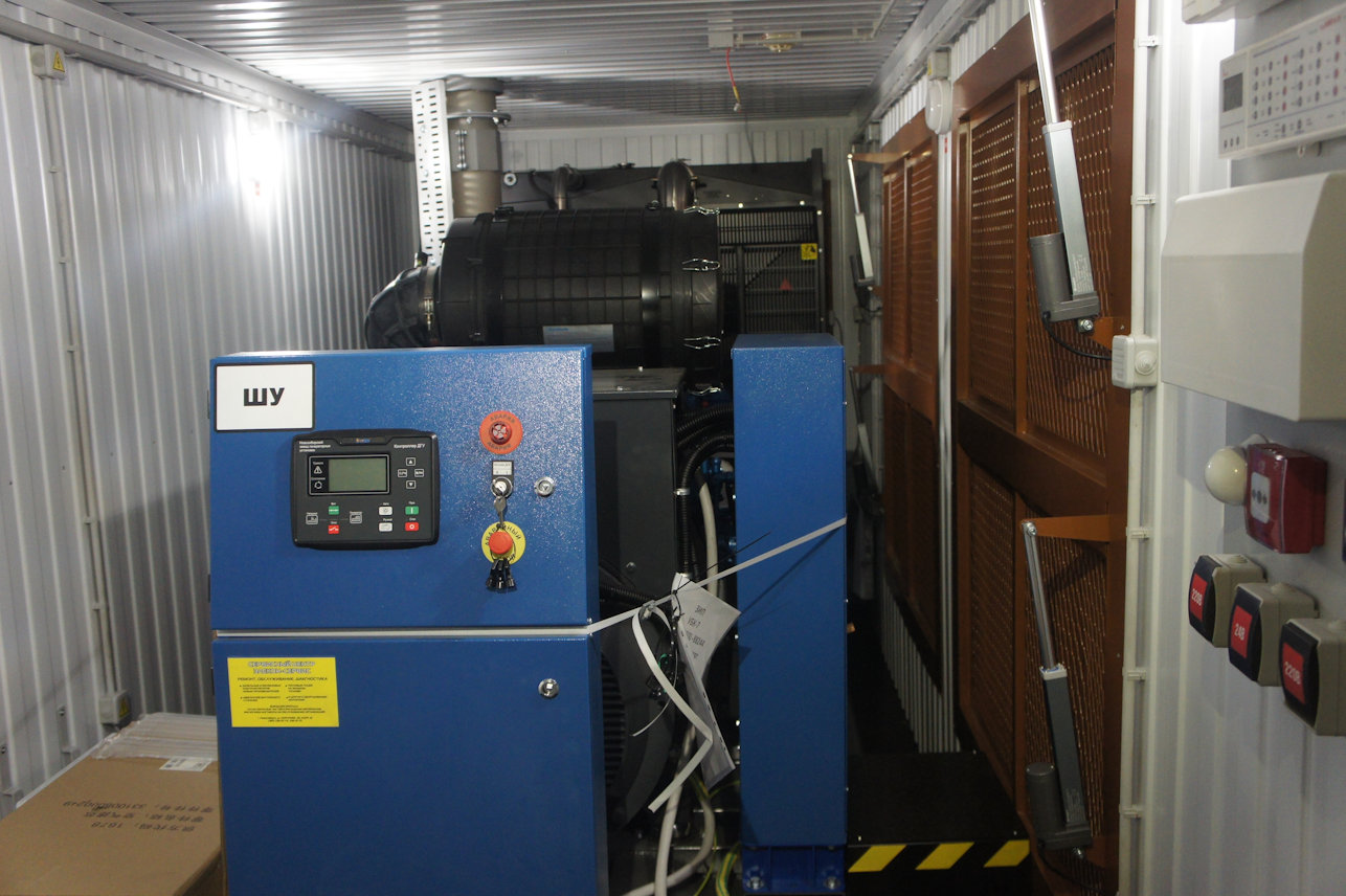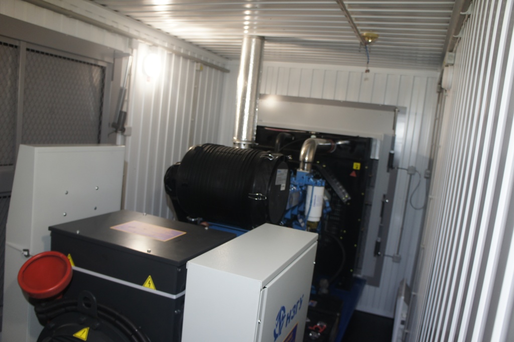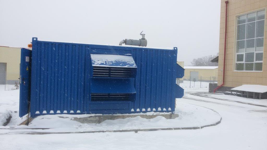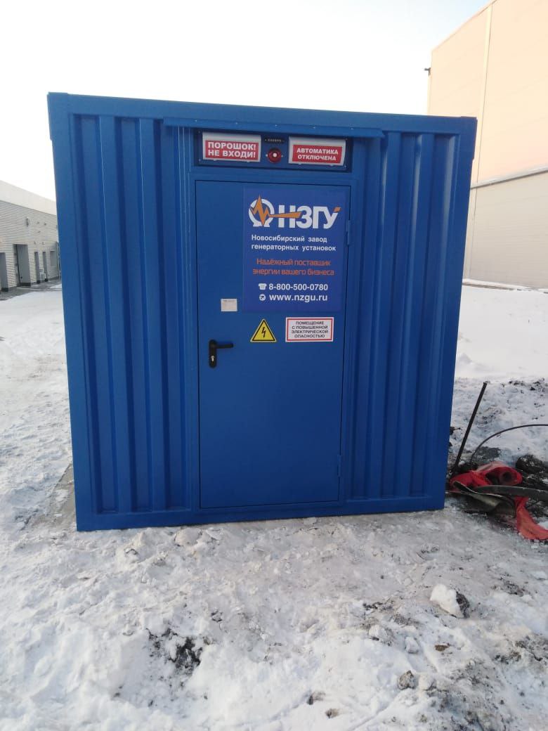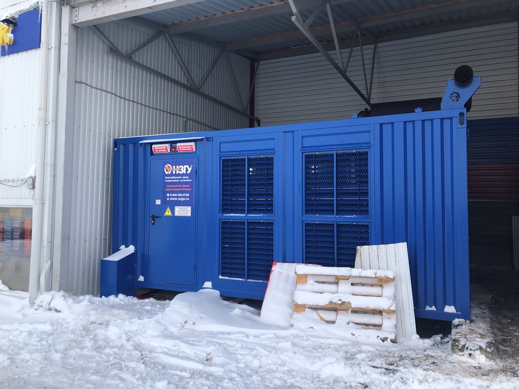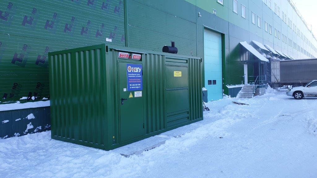 Дизельный генератор используется для резервирования электроснабжения большого логистического комплекса площадью 10 000 кв.м. в г. Обь, (пригород г. Новосибирска)