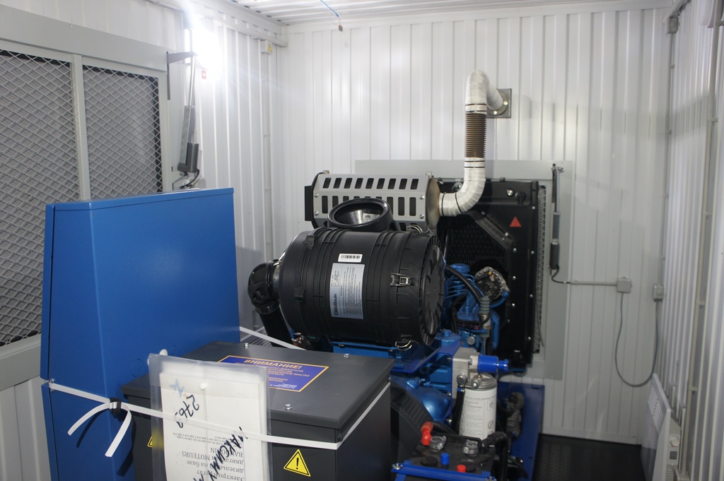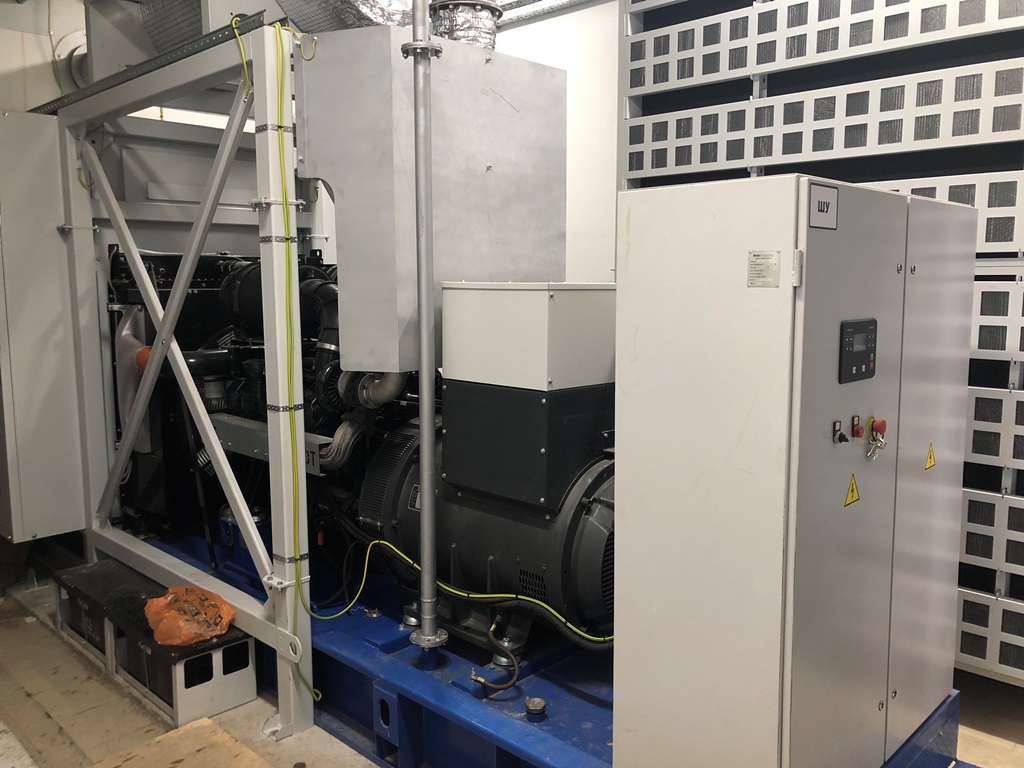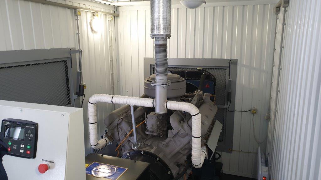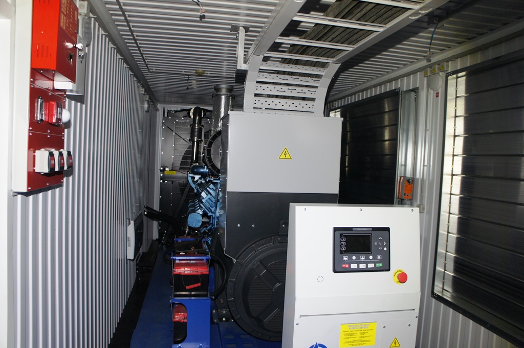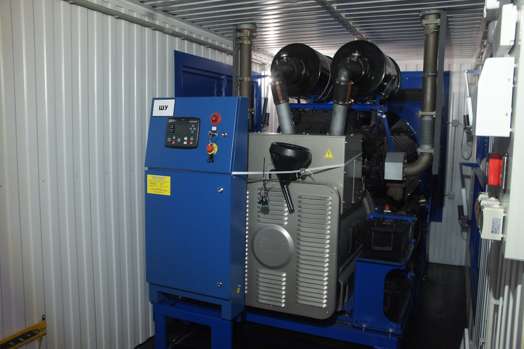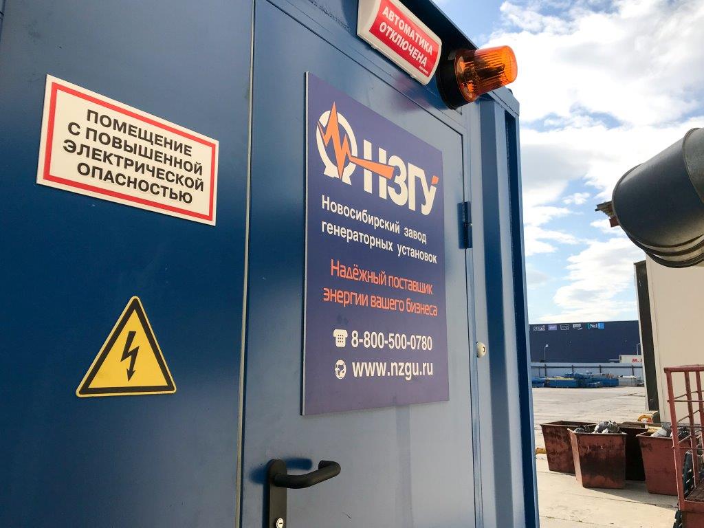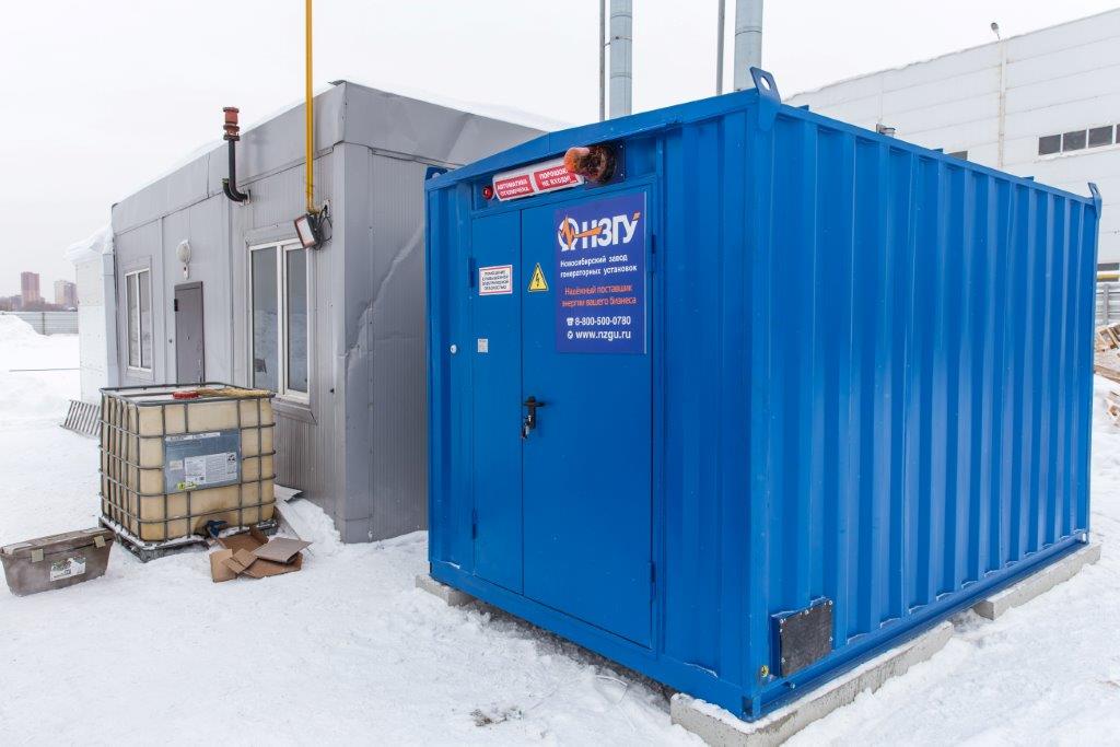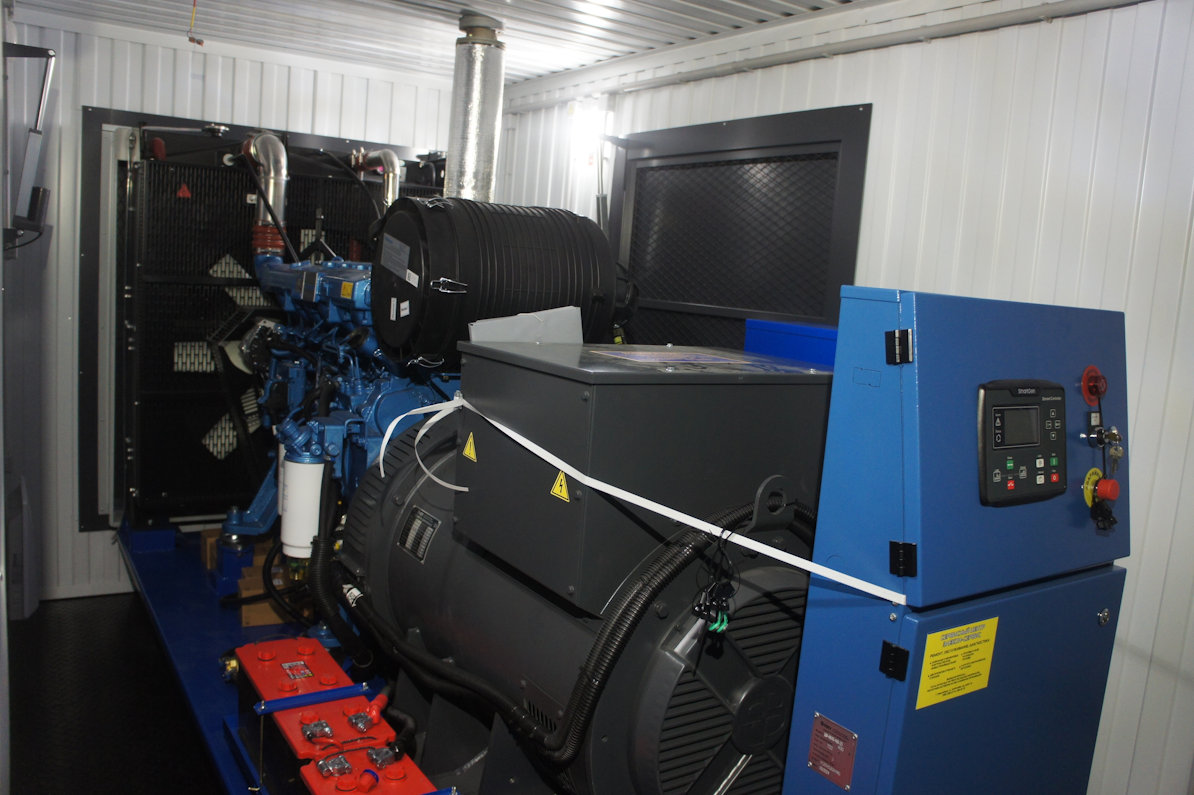 Дизельный генератор используется для резервирования электроснабжения большого логистического комплекса площадью 10 000 кв.м. в г. Обь, (пригород г. Новосибирска)