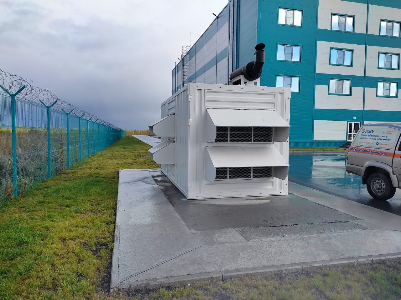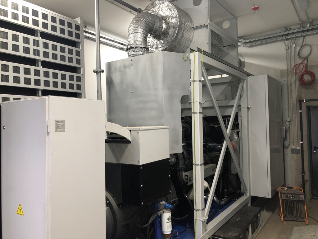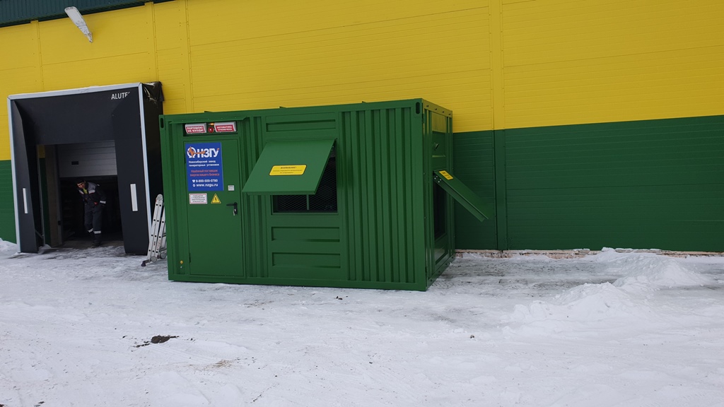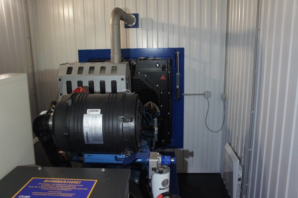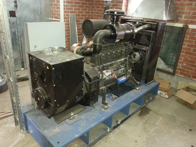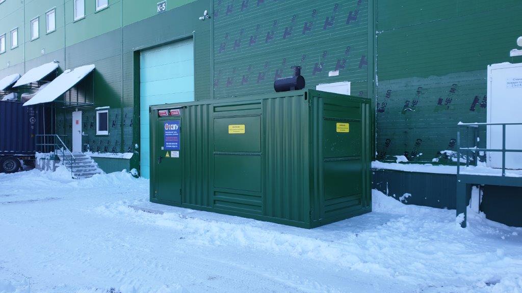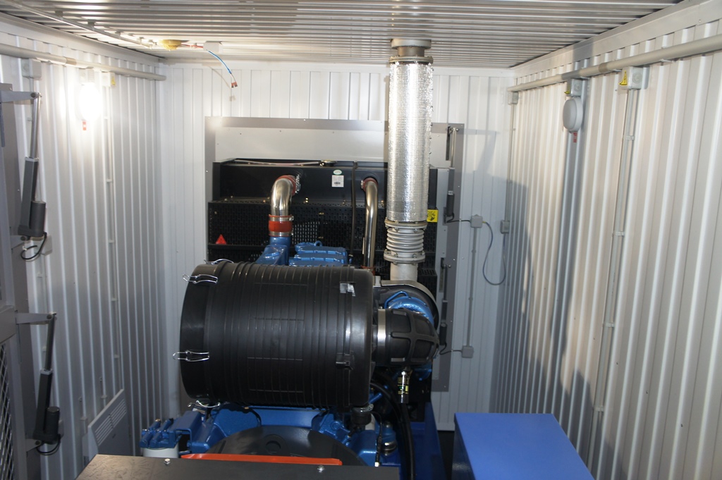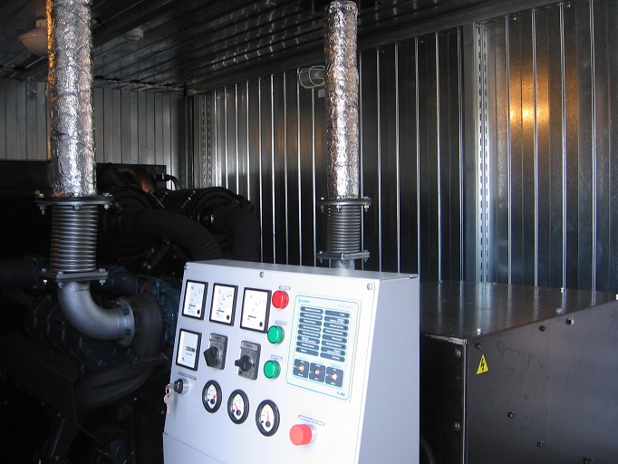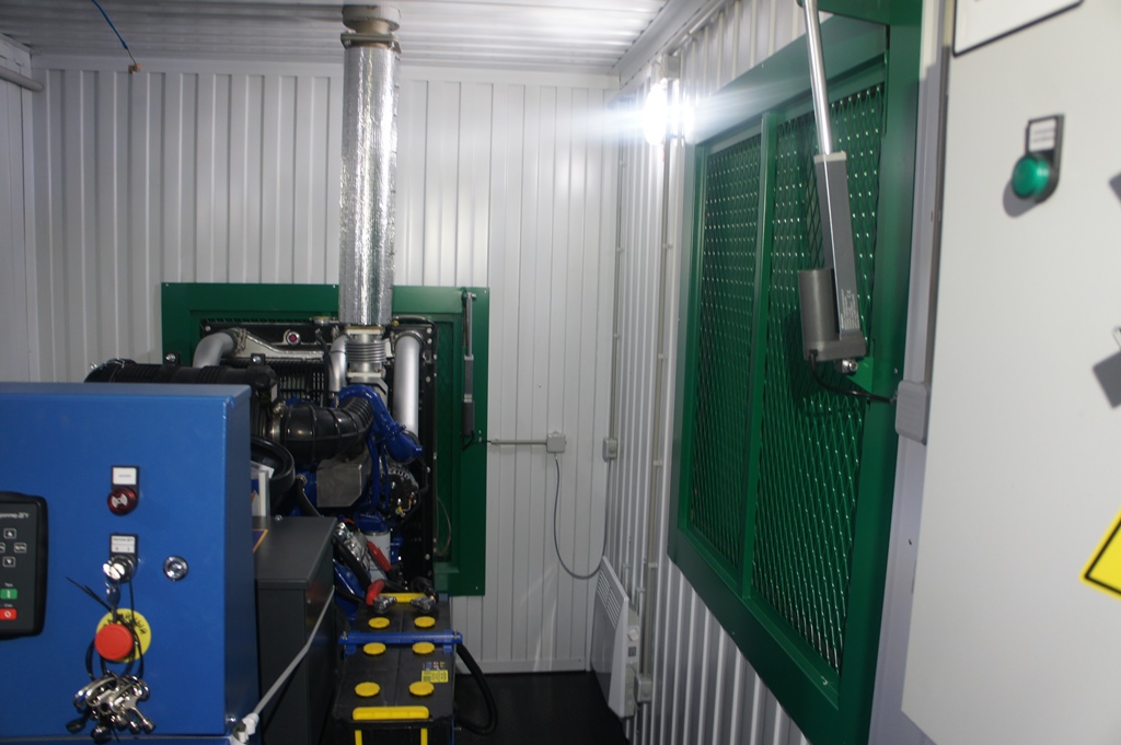 Дизельный генератор используется для резервирования электроснабжения большого логистического комплекса площадью 10 000 кв.м. в г. Обь, (пригород г. Новосибирска)