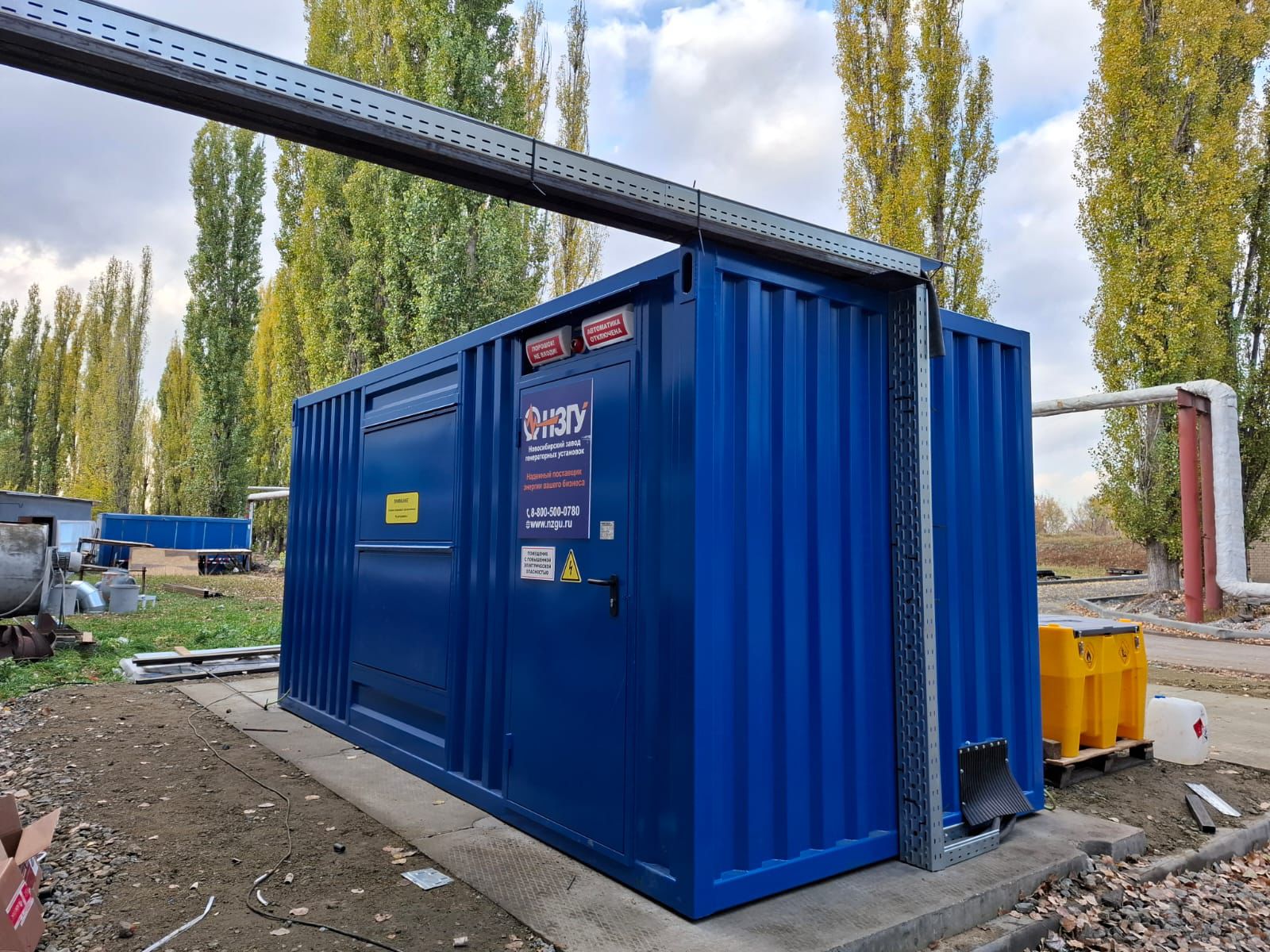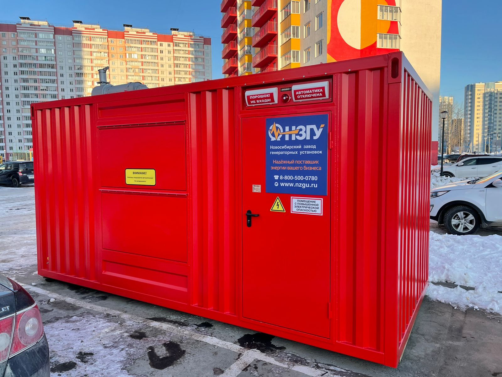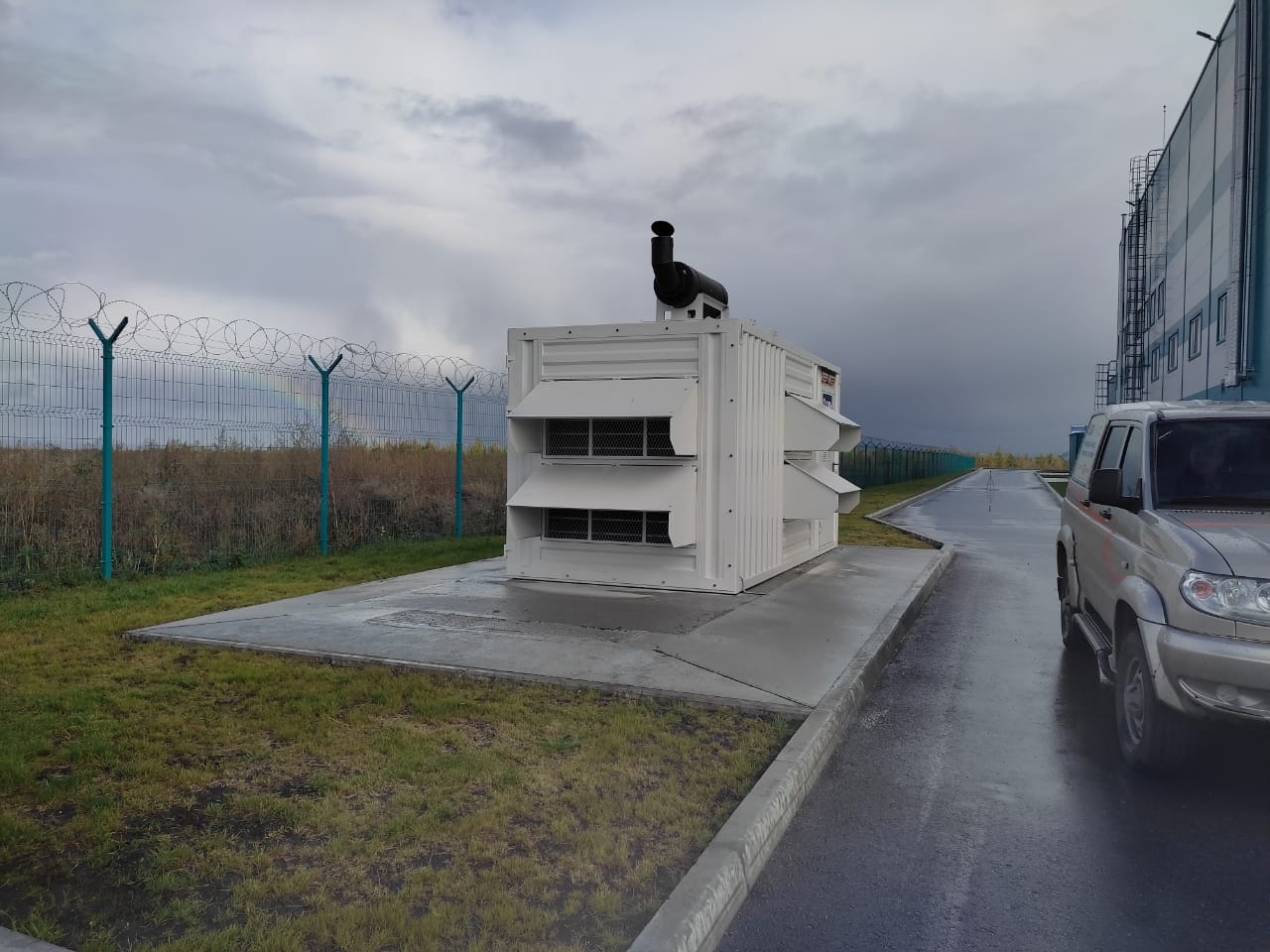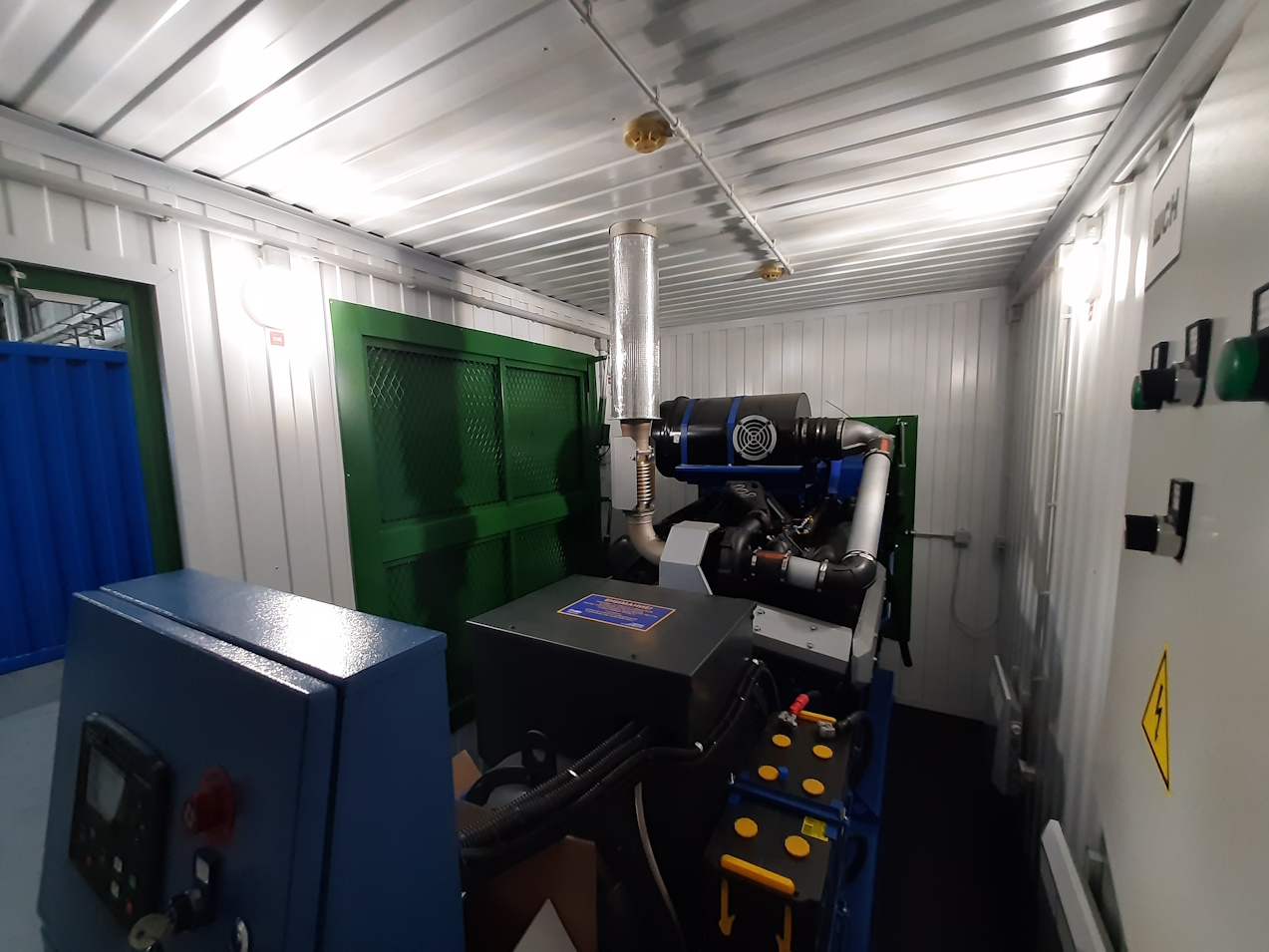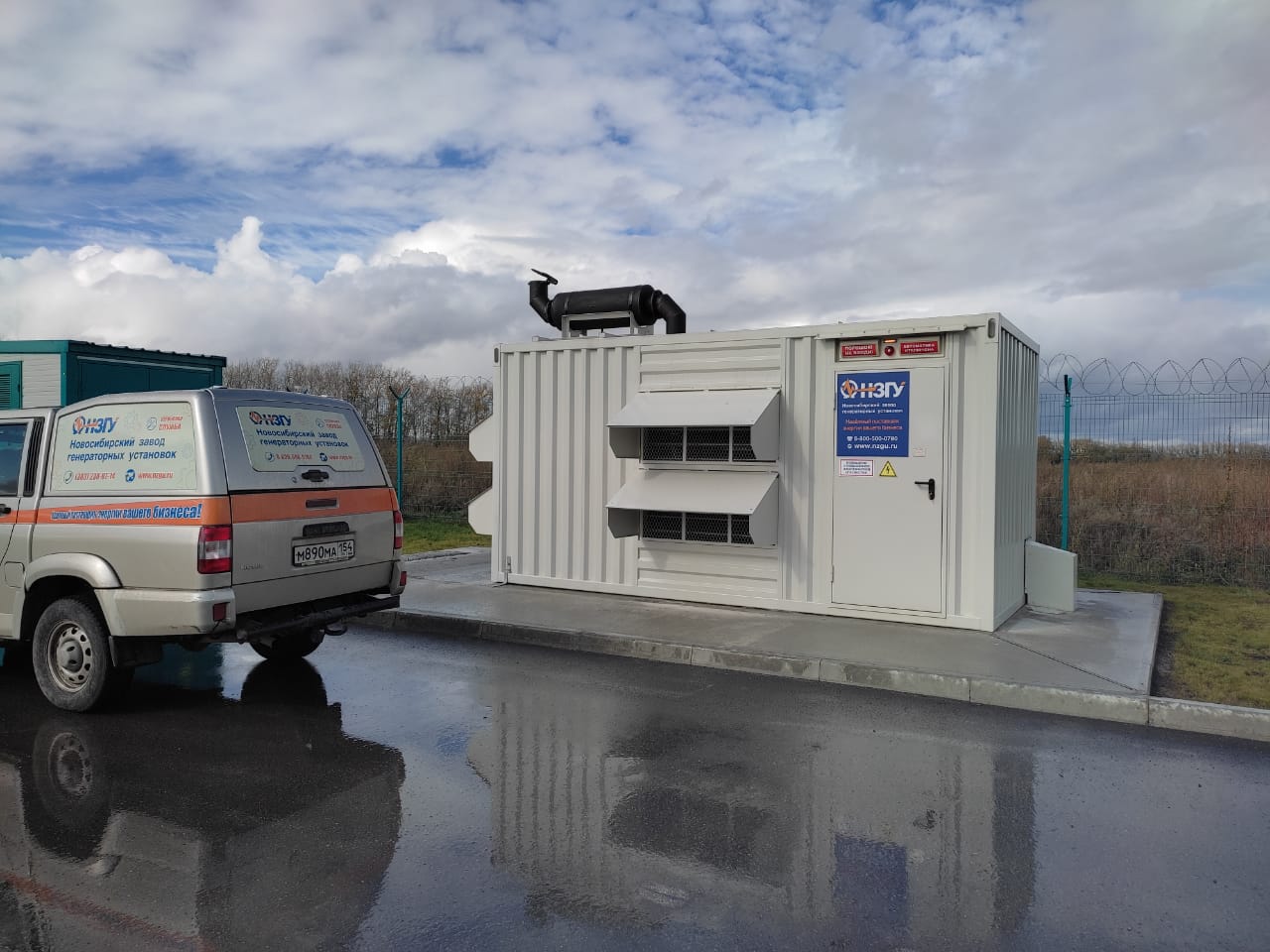 Дизельный генератор используется для резервирования электроснабжения большого логистического комплекса площадью 10 000 кв.м. в г. Обь, (пригород г. Новосибирска)