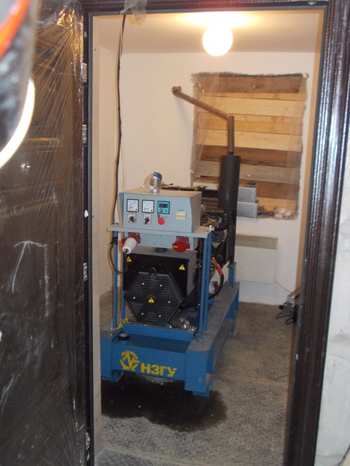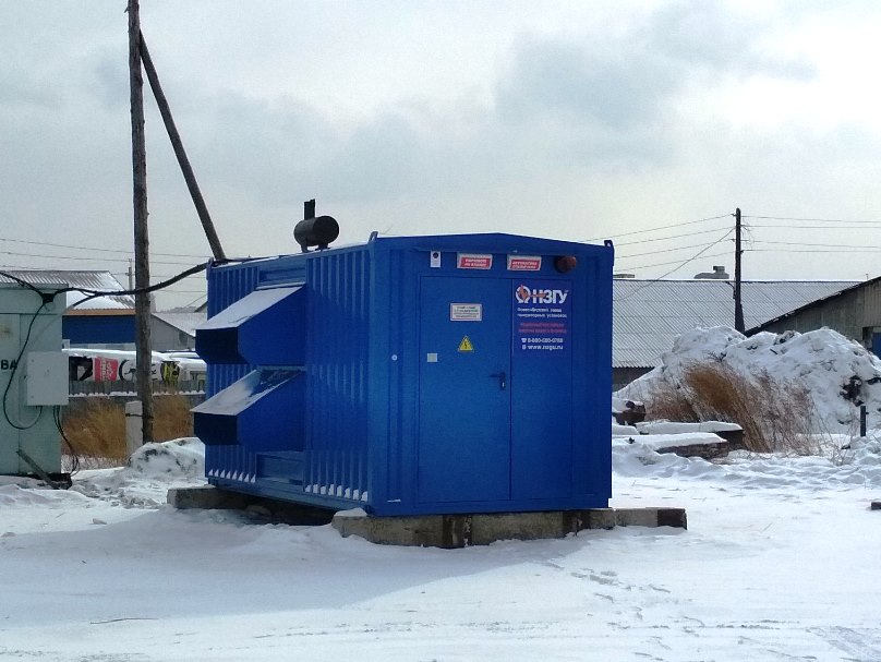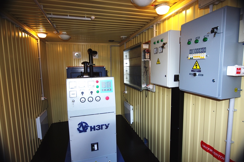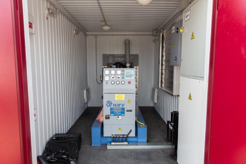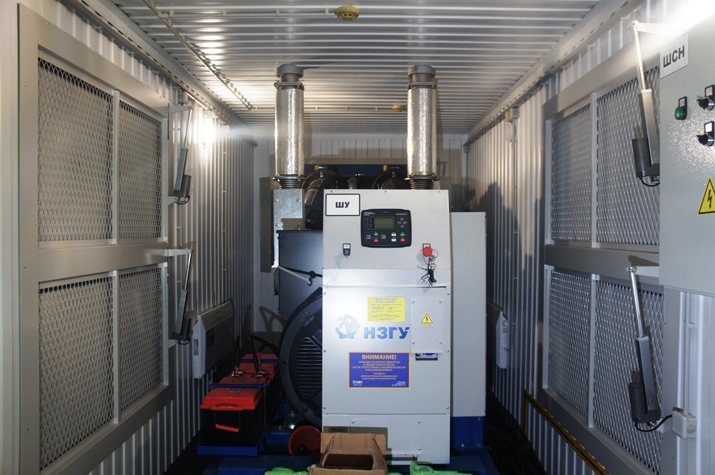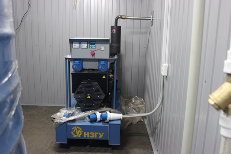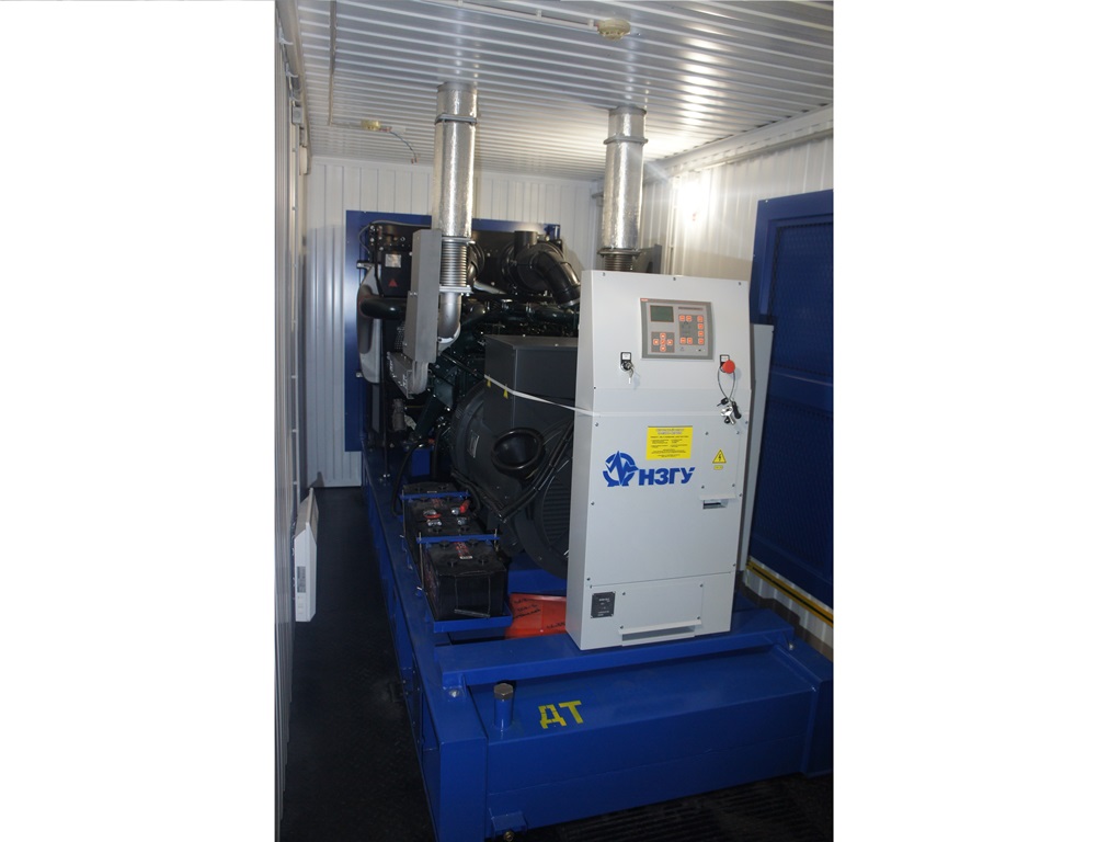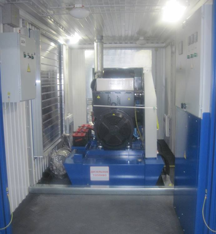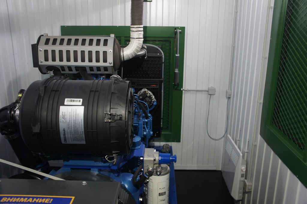 Дизельный электроагрегат на базе двигателя Дусан (DOOSAN). Модель ЭДД-500-4, в утепленном блок-контейнере типа СЕВЕР (УБК-6). Дополнительно установлен независимый ПЖД с отдельным топливным баком для авиационного керосина для возможности запуска ДГУ при отказе всех систем жизнеобеспечения контейнера. Ведь остановка функционирования сетевых насосов в зимний период грозит разморозкой системы теплоснабжения всего города.
