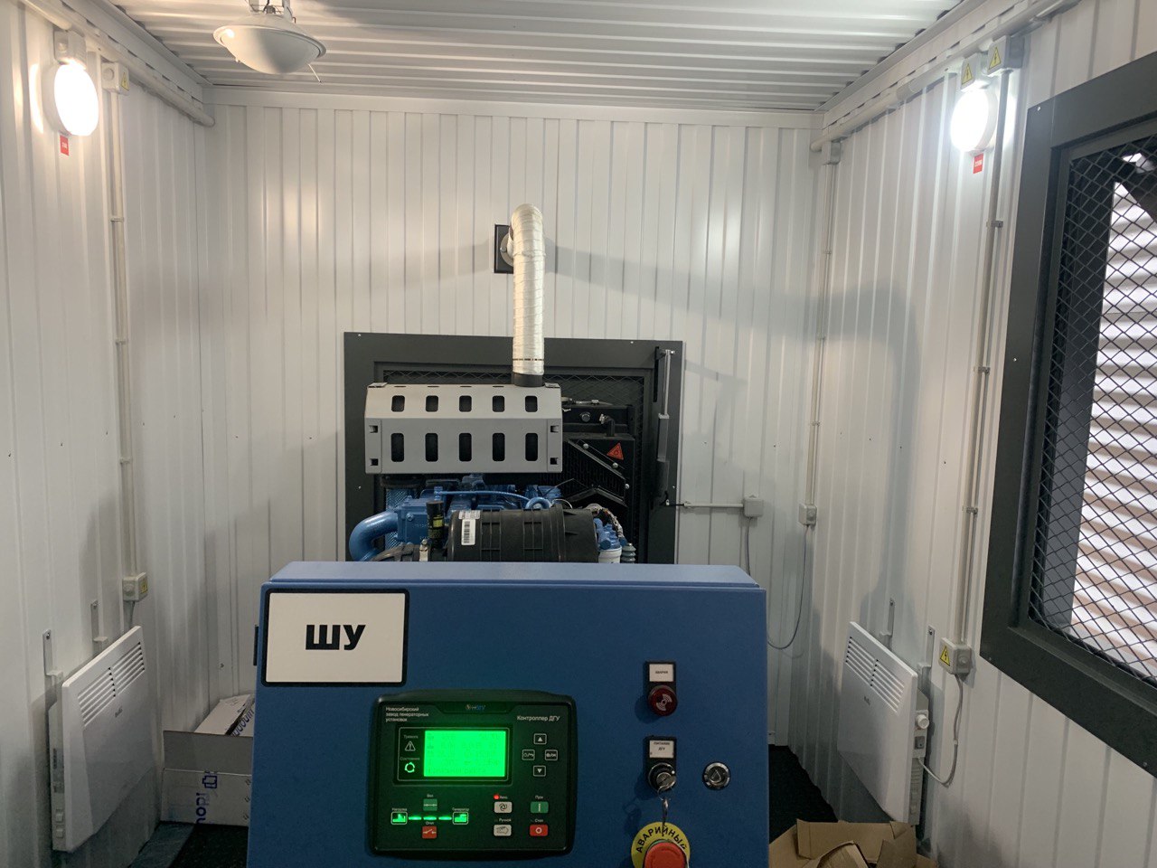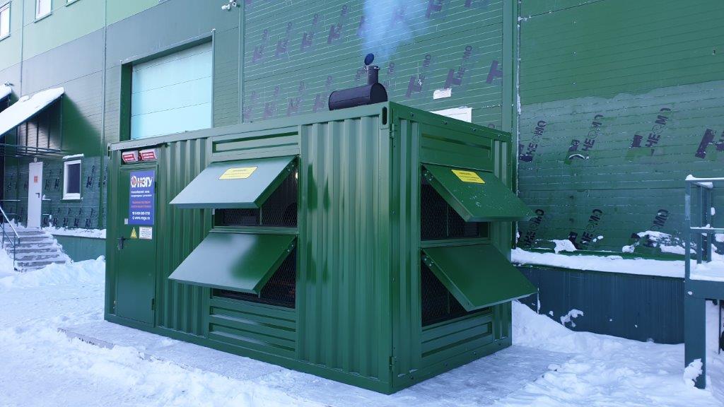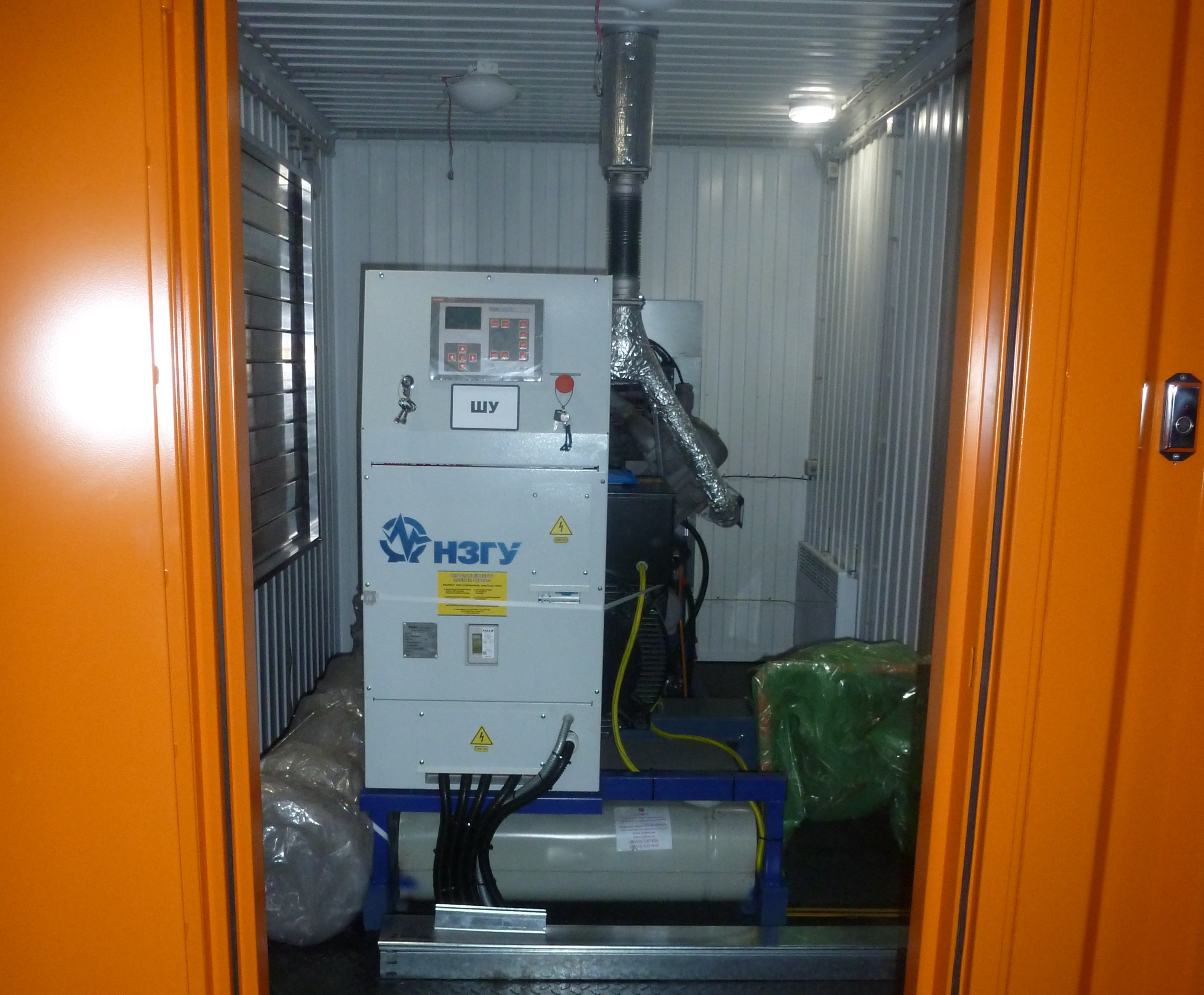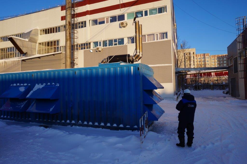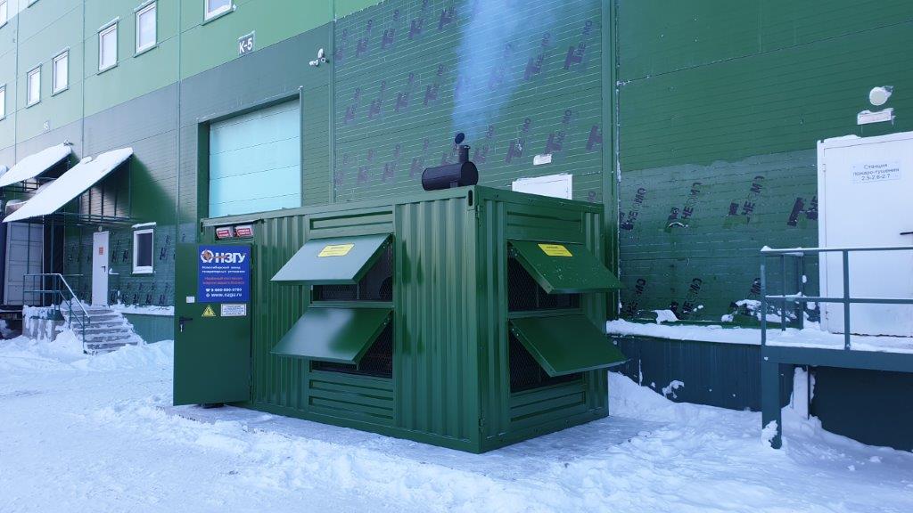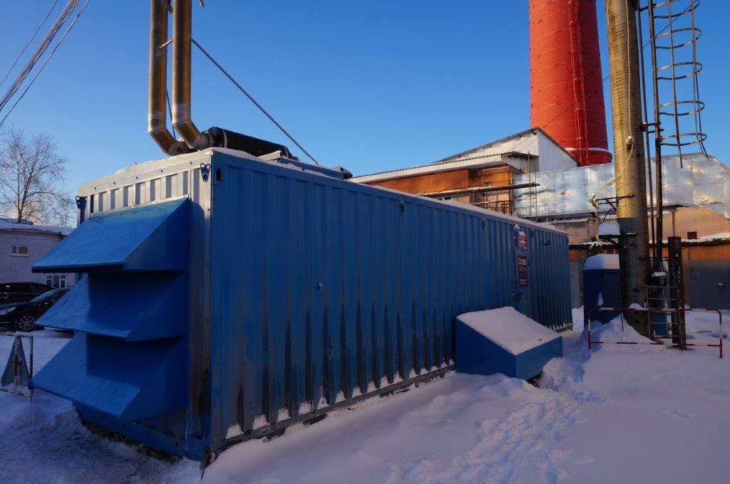 Дизельный электроагрегат на базе двигателя Дусан (DOOSAN). Модель ЭДД-500-4, в утепленном блок-контейнере типа СЕВЕР (УБК-6). Дополнительно установлен независимый ПЖД с отдельным топливным баком для авиационного керосина для возможности запуска ДГУ при отказе всех систем жизнеобеспечения контейнера. Ведь остановка функционирования сетевых насосов в зимний период грозит разморозкой системы теплоснабжения всего города.