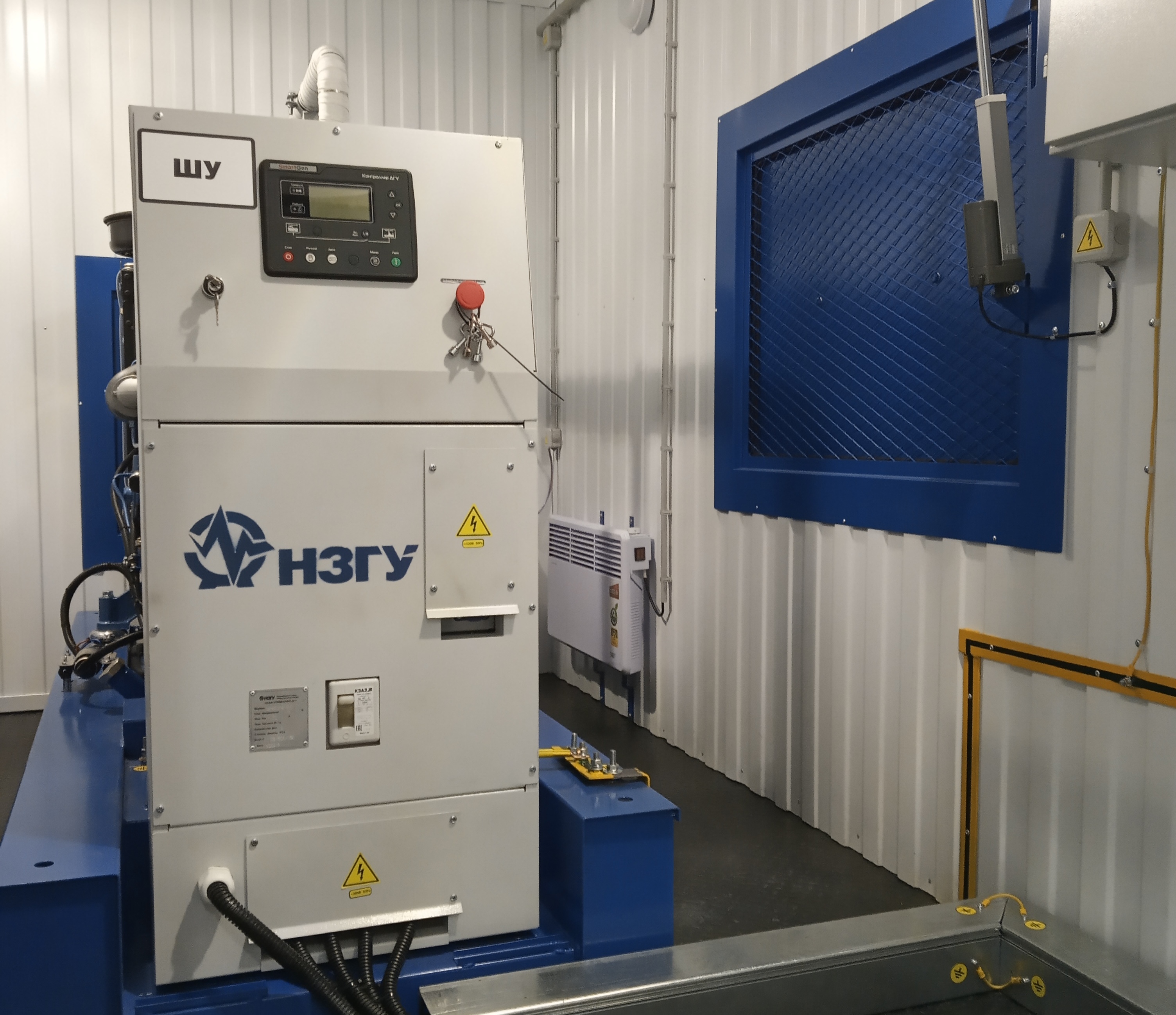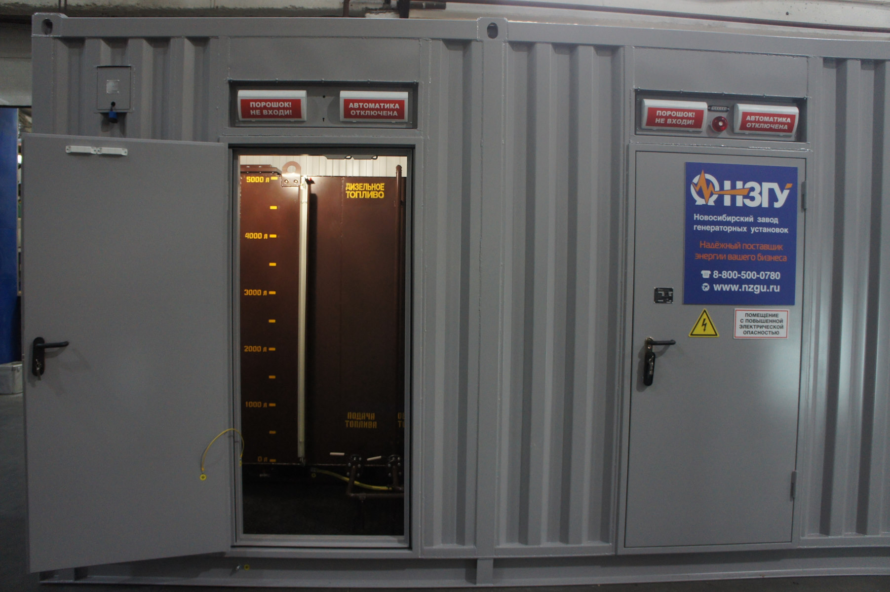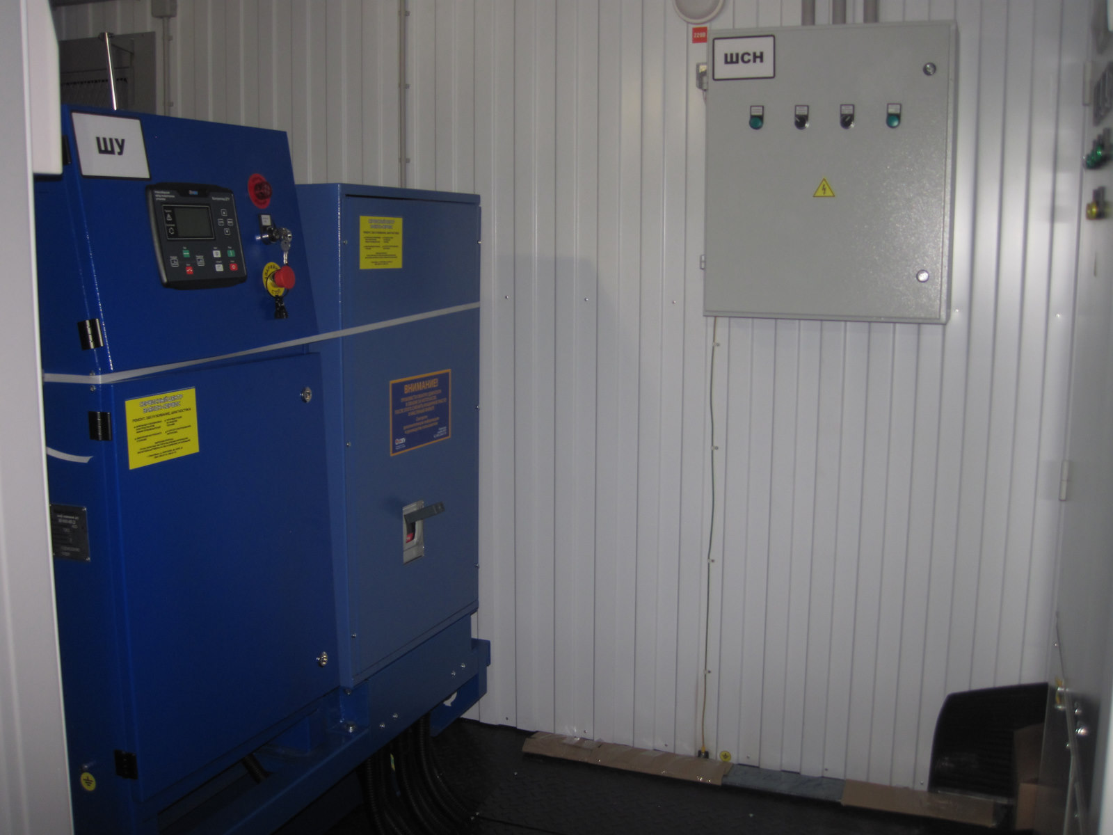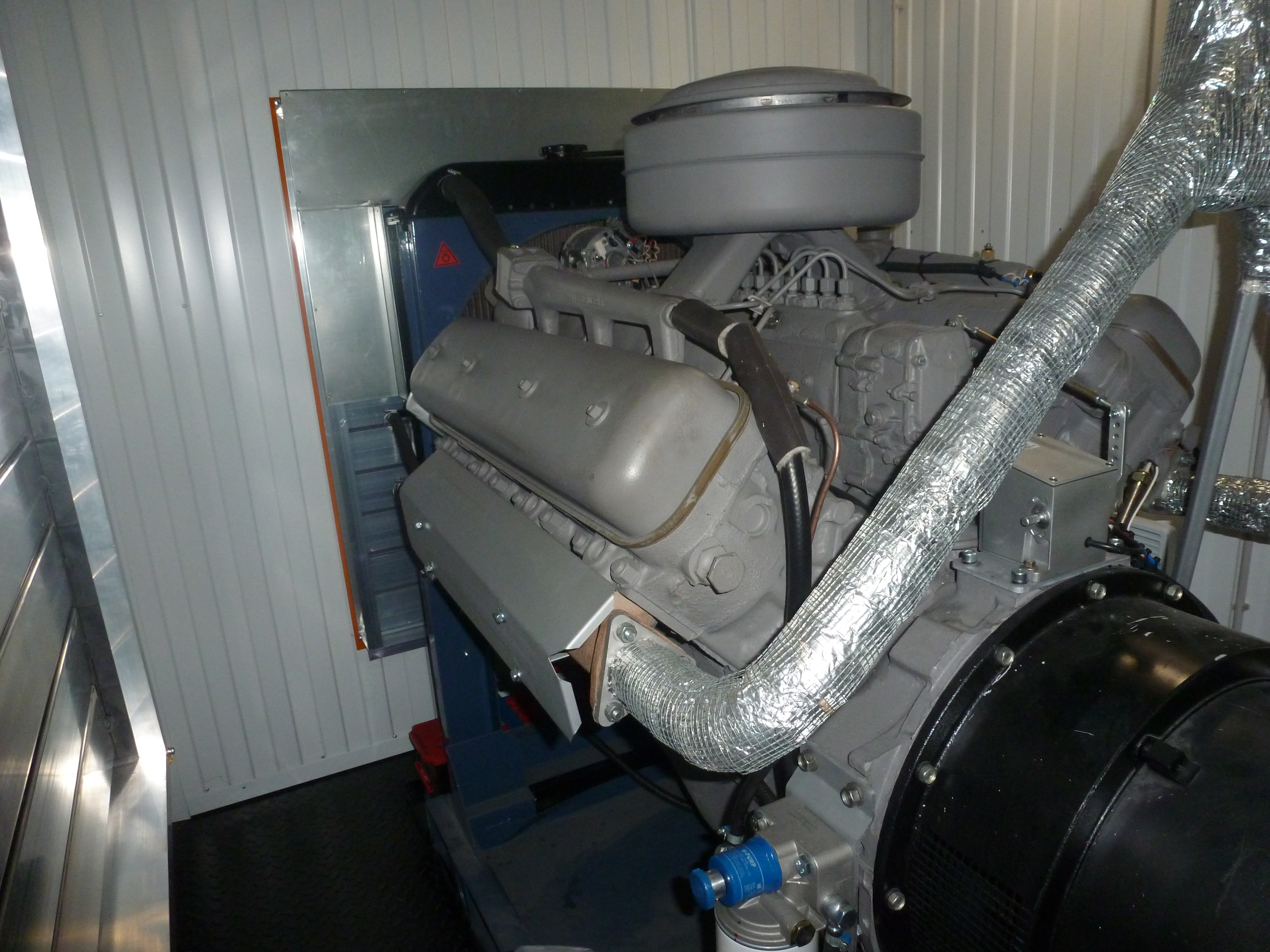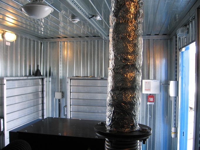 Дизельный электроагрегат на базе двигателя Дусан (DOOSAN). Модель ЭДД-500-4, в утепленном блок-контейнере типа СЕВЕР (УБК-6). Дополнительно установлен независимый ПЖД с отдельным топливным баком для авиационного керосина для возможности запуска ДГУ при отказе всех систем жизнеобеспечения контейнера. Ведь остановка функционирования сетевых насосов в зимний период грозит разморозкой системы теплоснабжения всего города.