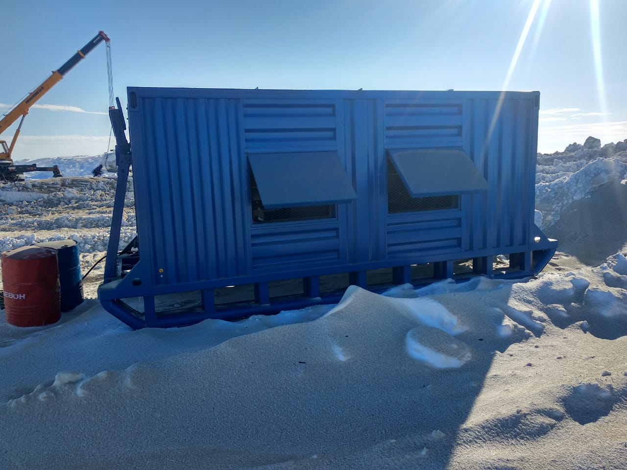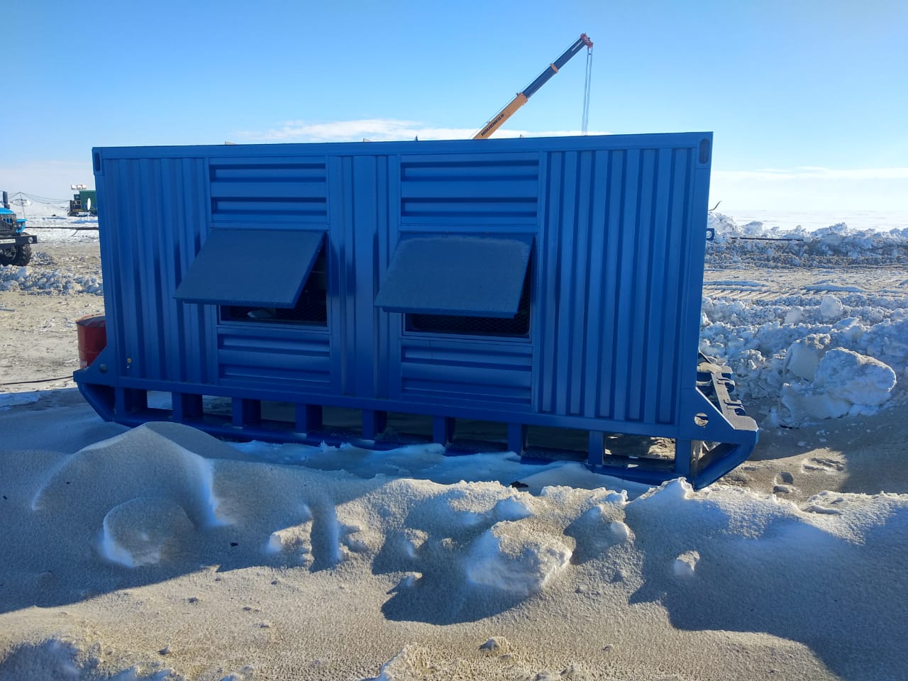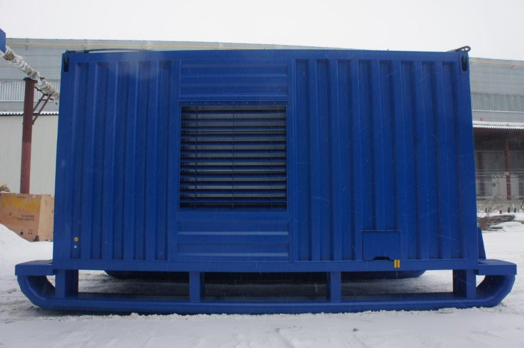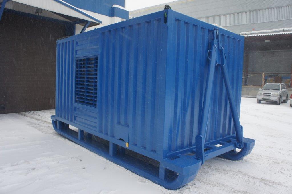 Дизельные генераторные установки в утепленных контейнерах на санях либо салазках широко используются геологоразведочными и нефтесервисными компаниями так как им приходится часто перемещать различное оборудование по бездорожью с помощью гусеничной техники.