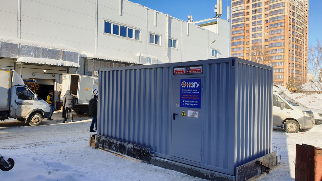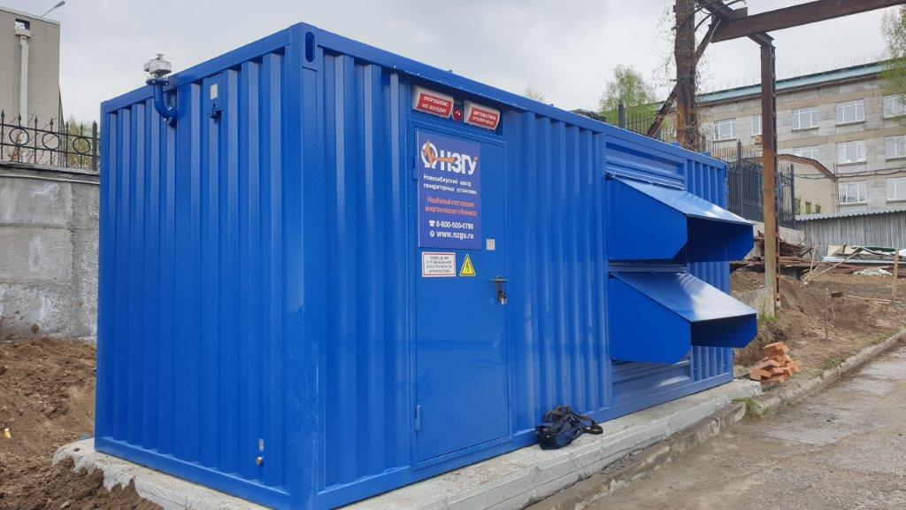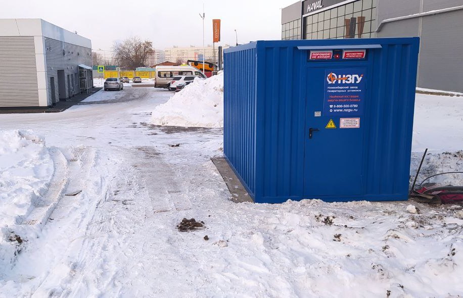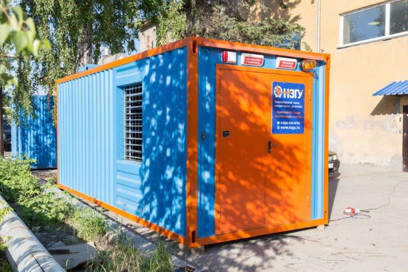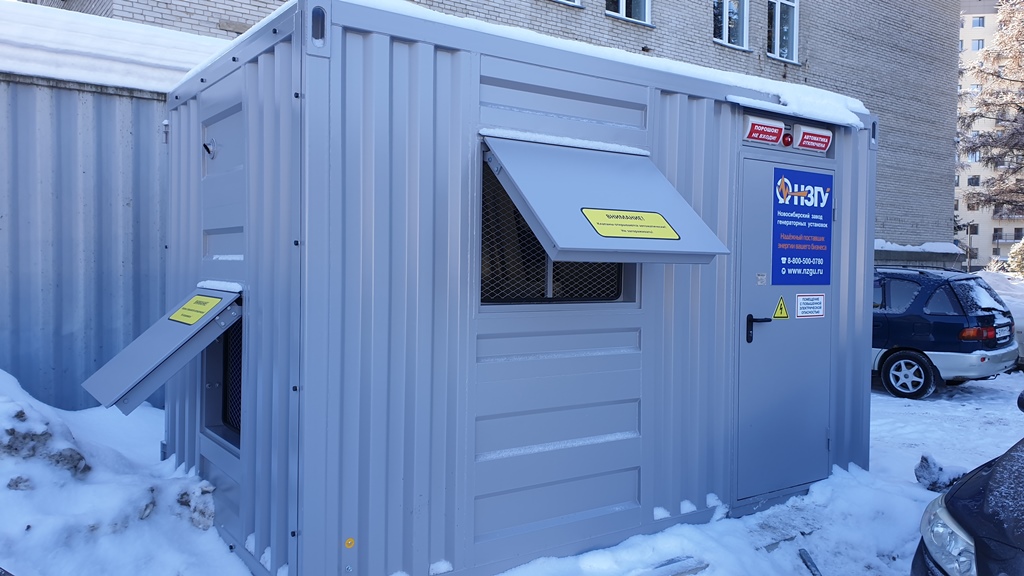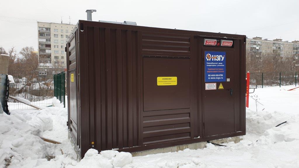 Дизельгенератор в утеплённом блок-контейнере предназначен для аварийного электроснабжения поликлиники №7 в г. Новосибирске, возведённой в рамках государственно-частного партнёрства.