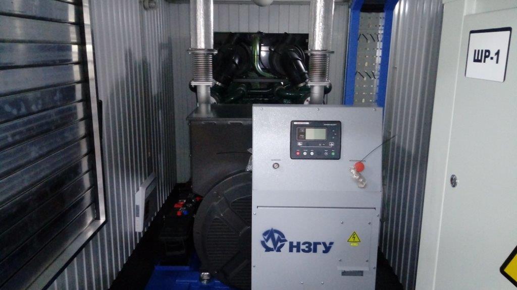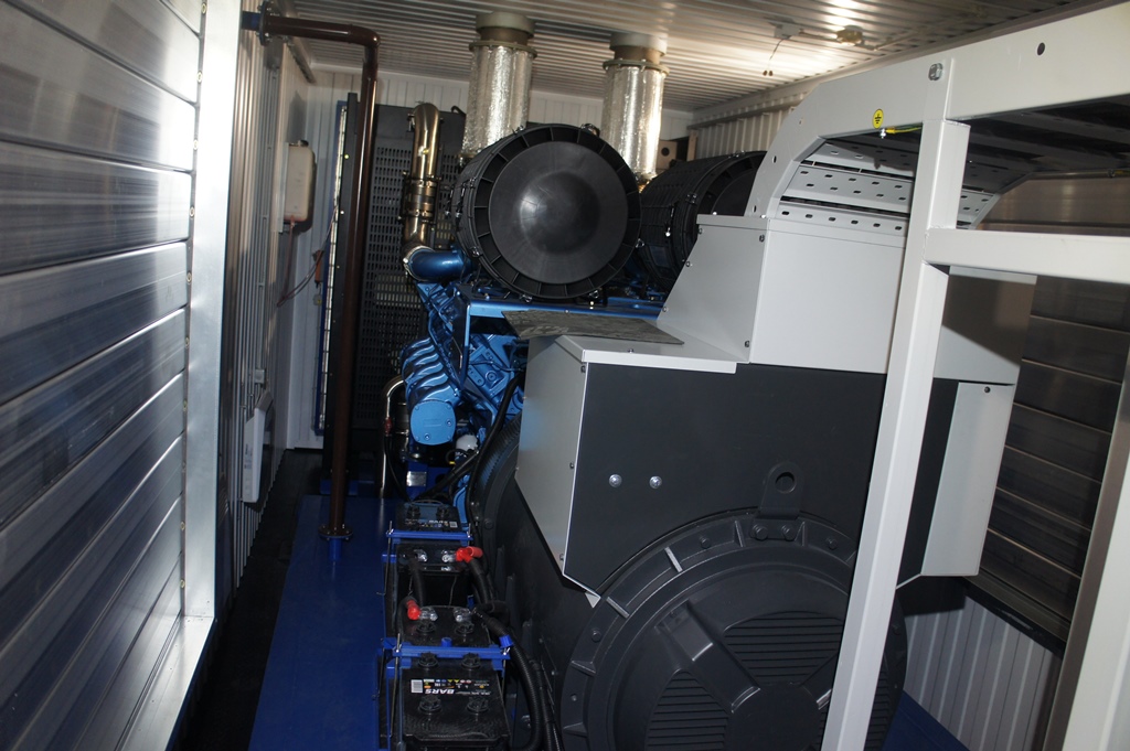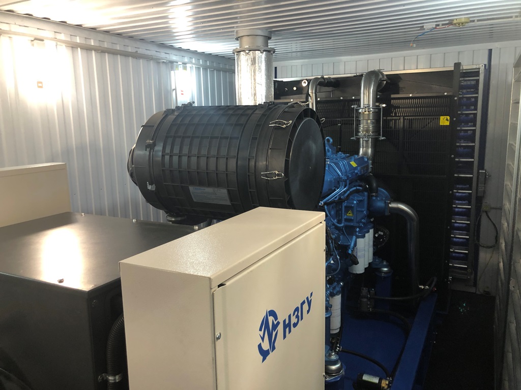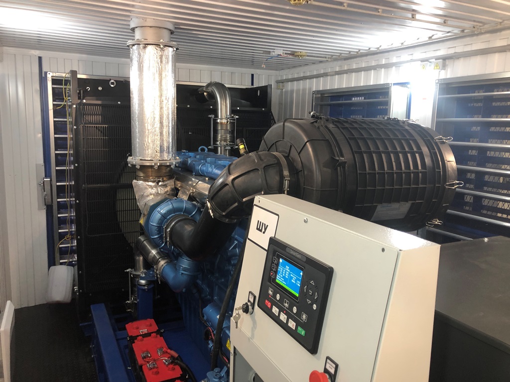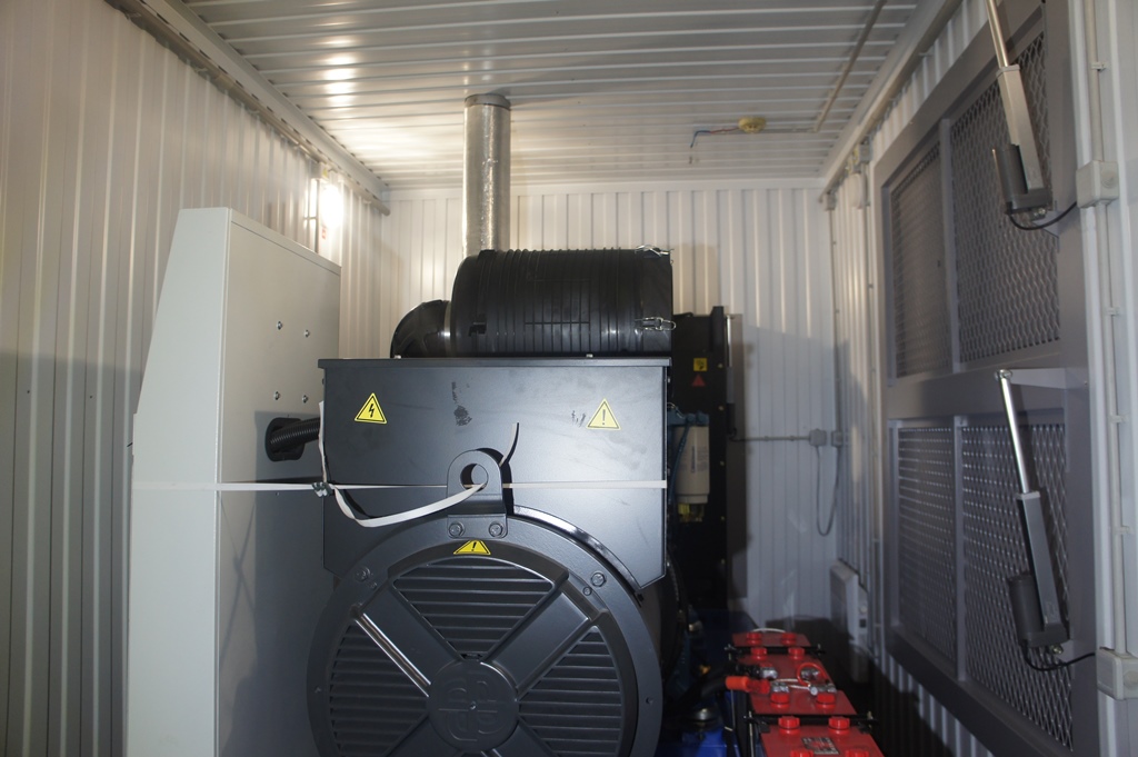 ДГУ ЭДБ-1000-4 мощзностью 1250 кВА на базе двигателя BAUDOUIN MOTEURS 12M33 в утеплённом блок-контейнере с дополнительным топливным баком на 5000 литров.