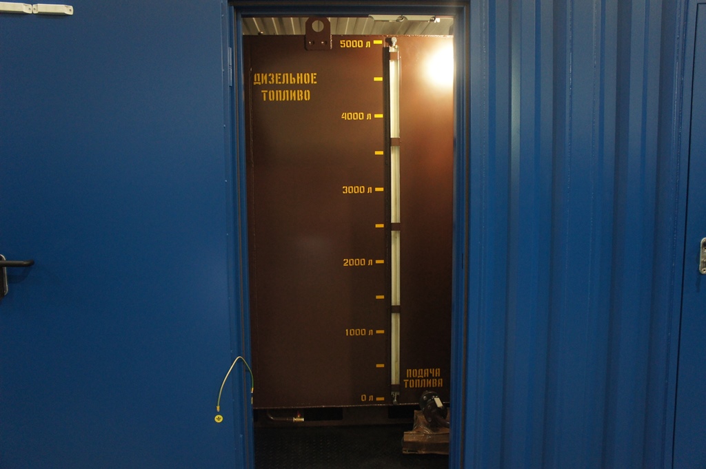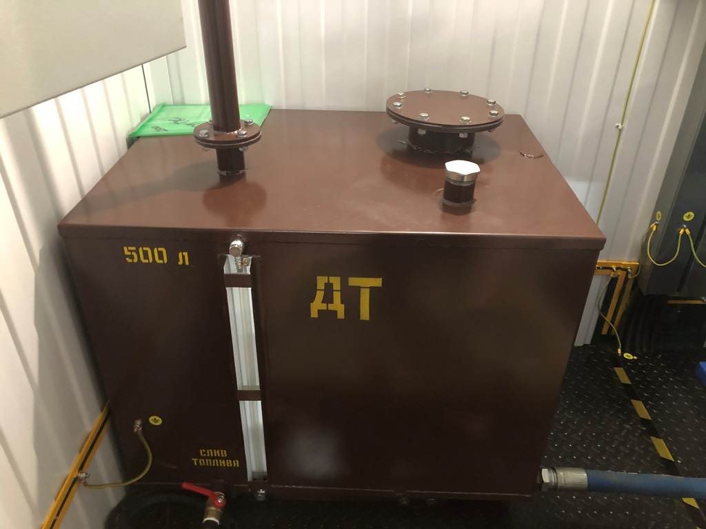 Дополнительный топливный бак 1500л с системой автоматической подкачки дизельного топлива совместно с основным топливным баком в раме электроагрегата 700 л позволяют ДГУ работать при полной нагрузке не менее суток.