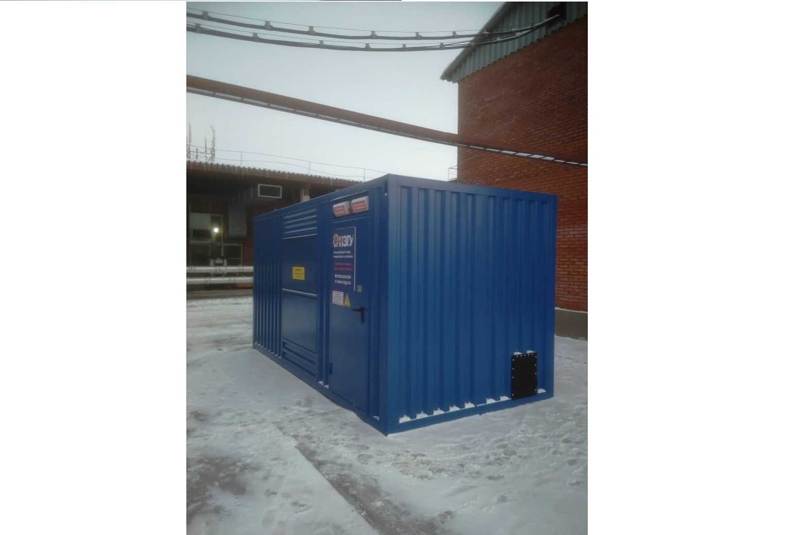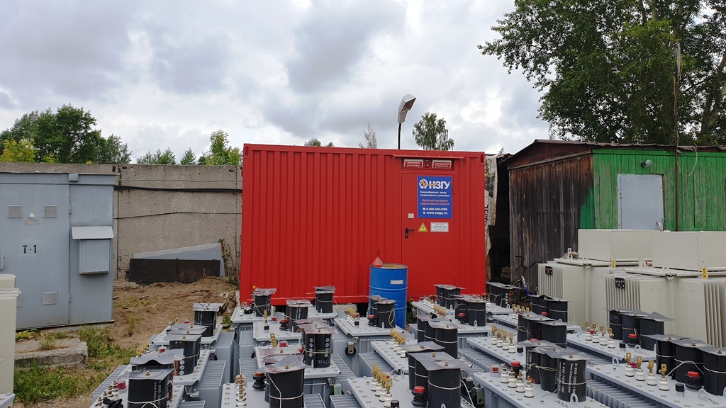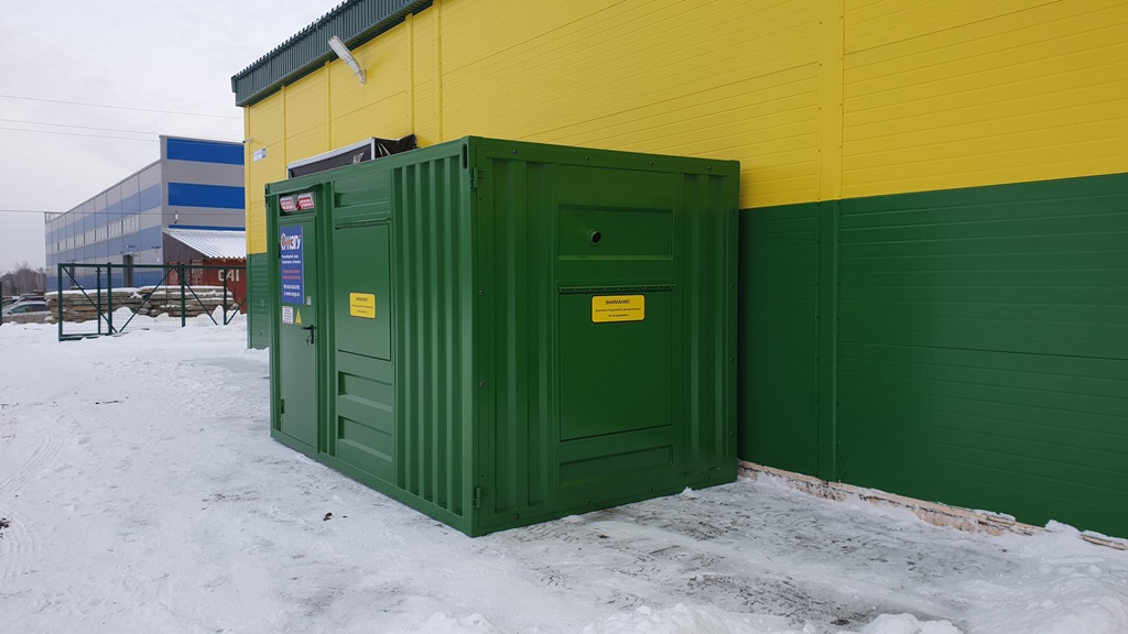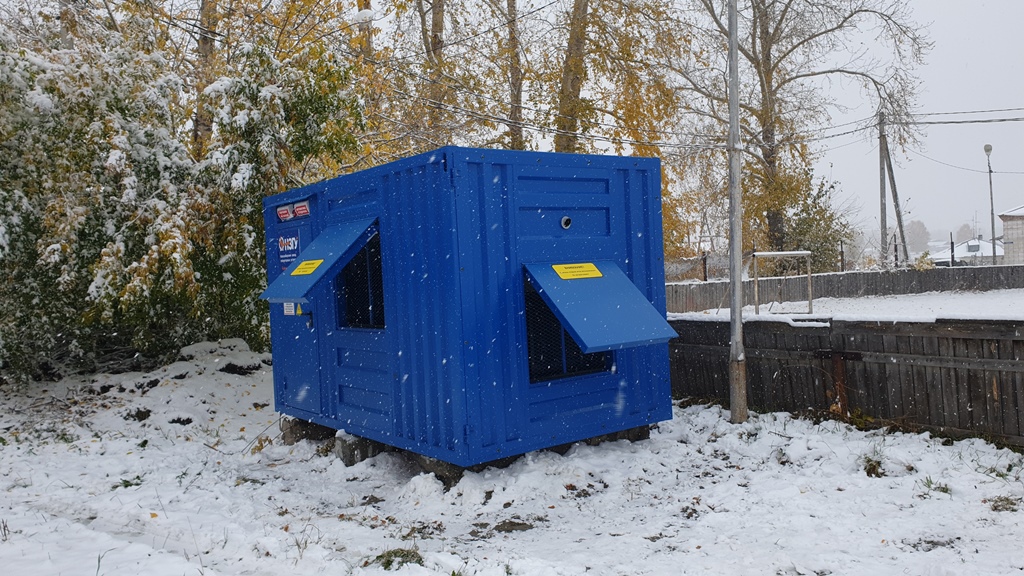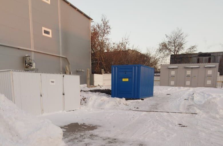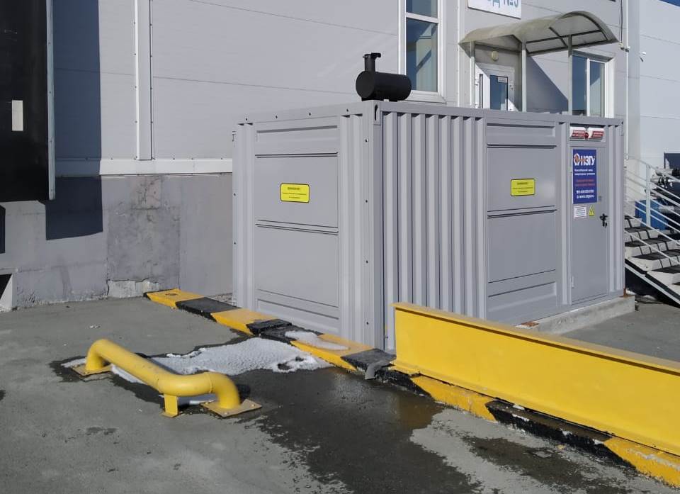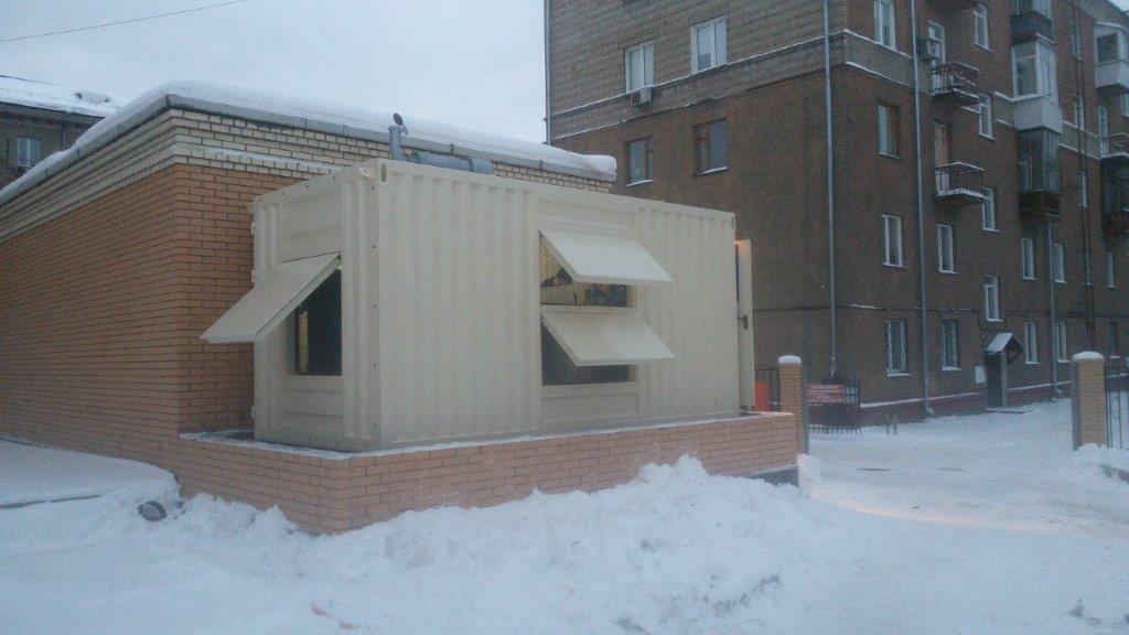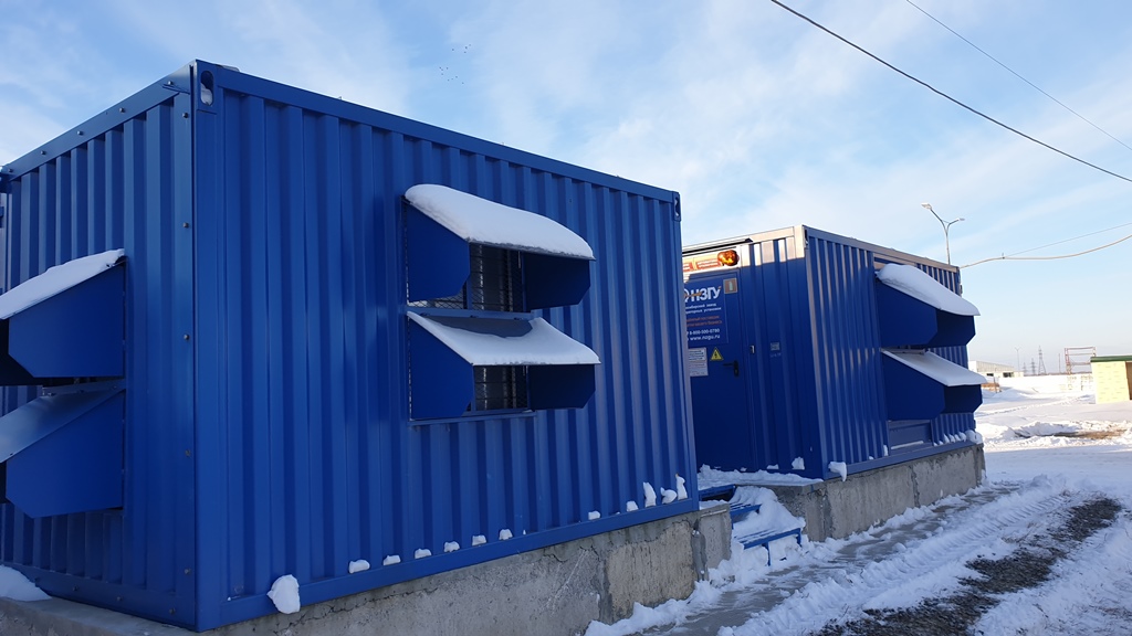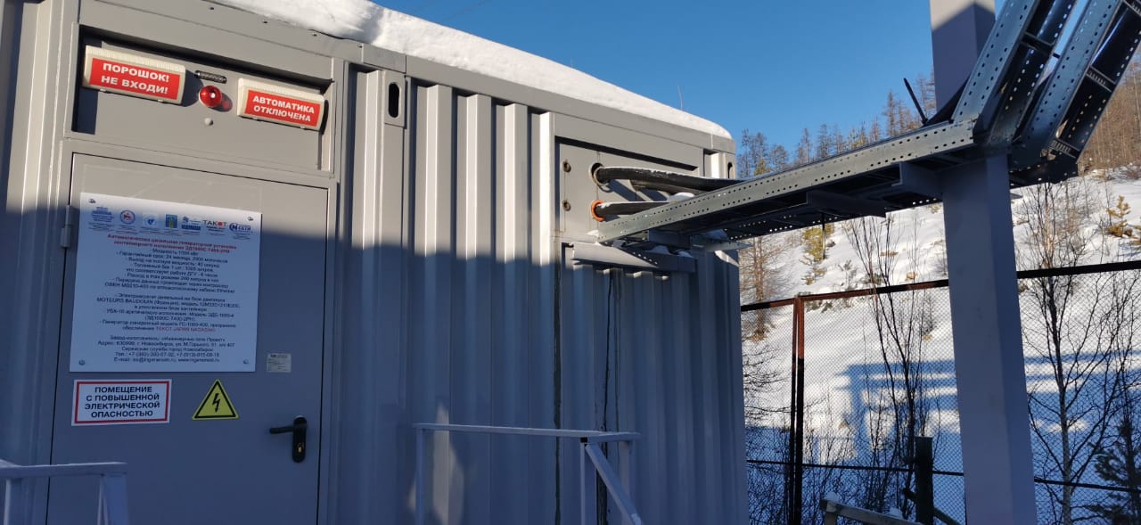 Резервный источник электропитания на базе дизельгенератора, мощностью 100 кВт в блок-контейнере типа СЕВЕР для защиты от неблагоприятных погодных условий суровой Красноярской зимы и несанкционированного доступа к оборудованию.