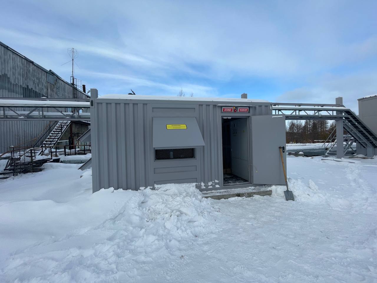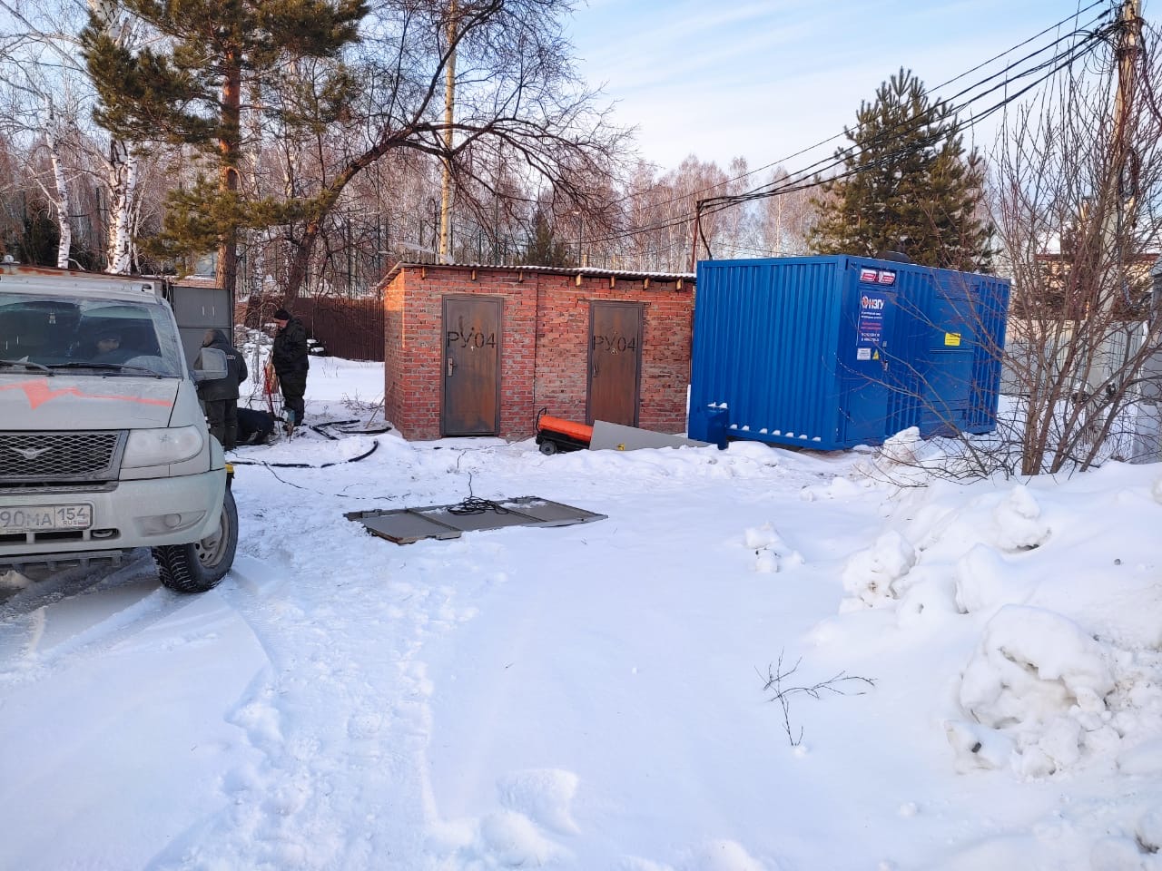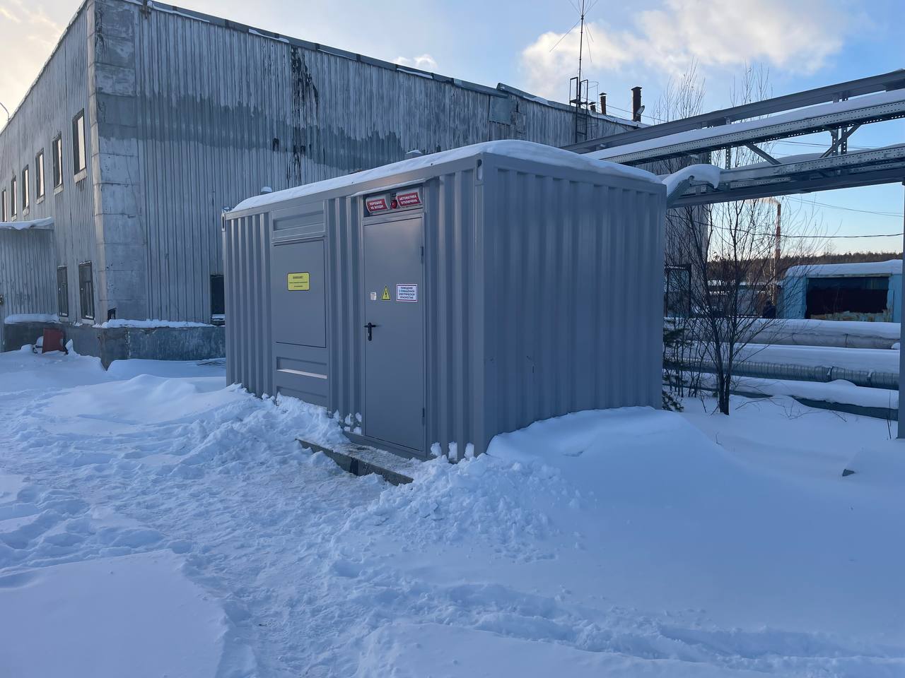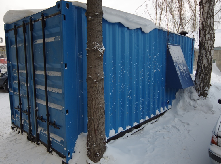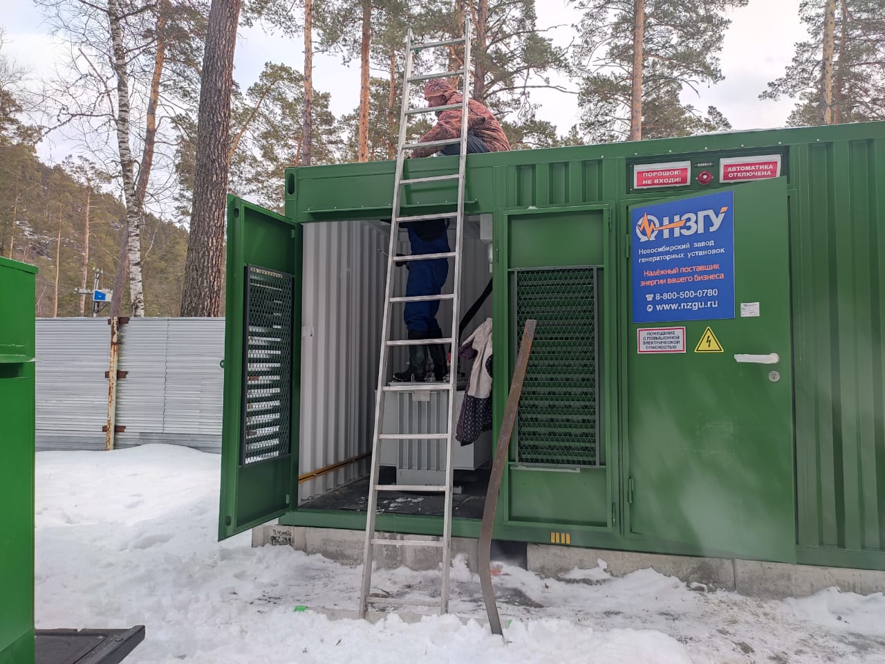Резервный источник электропитания на базе дизельгенератора, мощностью 100 кВт в блок-контейнере типа СЕВЕР для защиты от неблагоприятных погодных условий суровой Красноярской зимы и несанкционированного доступа к оборудованию.