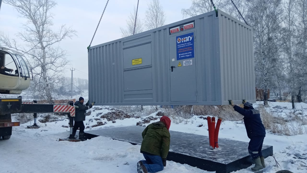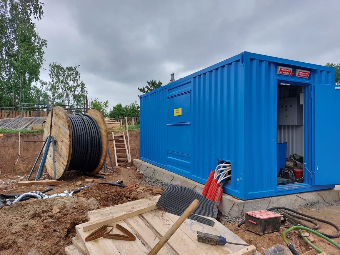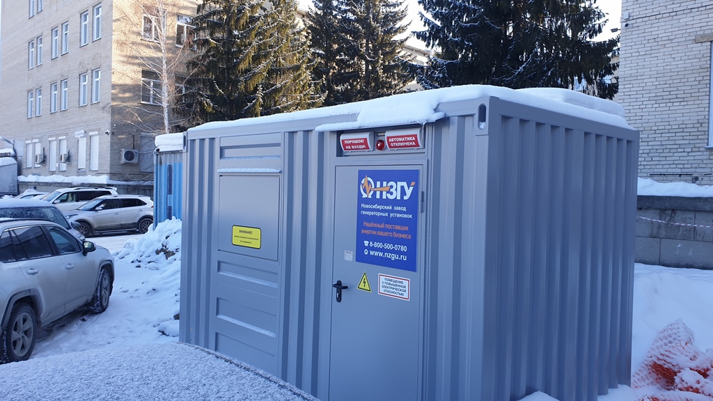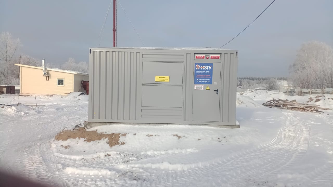 Дизельный генератор контейнерного исполнения предназначен для резервного электроснабжения вновь построенной в рамках национального проекта "Здравоохранение" поликлиники в селе Криводановка, НСО.