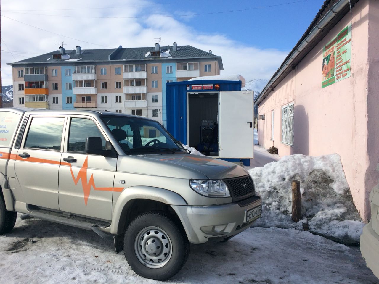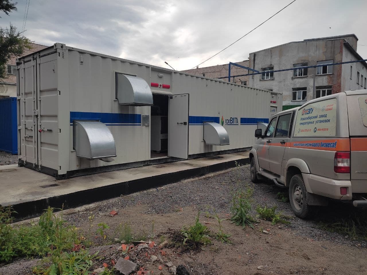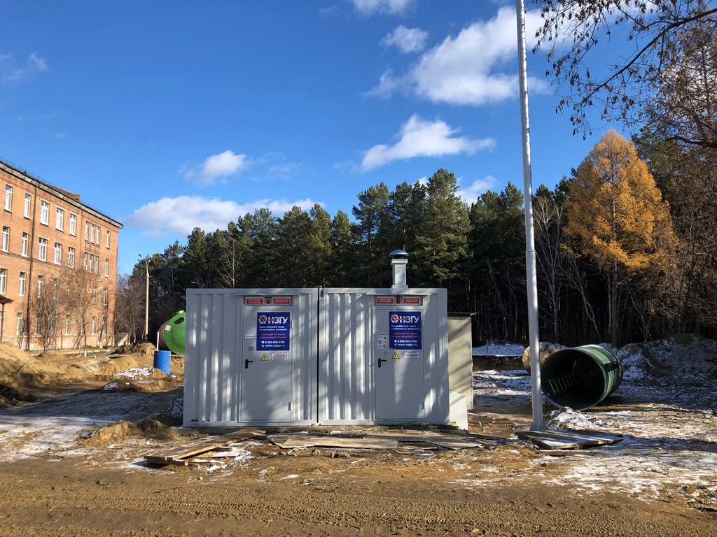 Дизельный генератор контейнерного исполнения предназначен для резервного электроснабжения вновь построенной в рамках национального проекта "Здравоохранение" поликлиники в селе Криводановка, НСО.