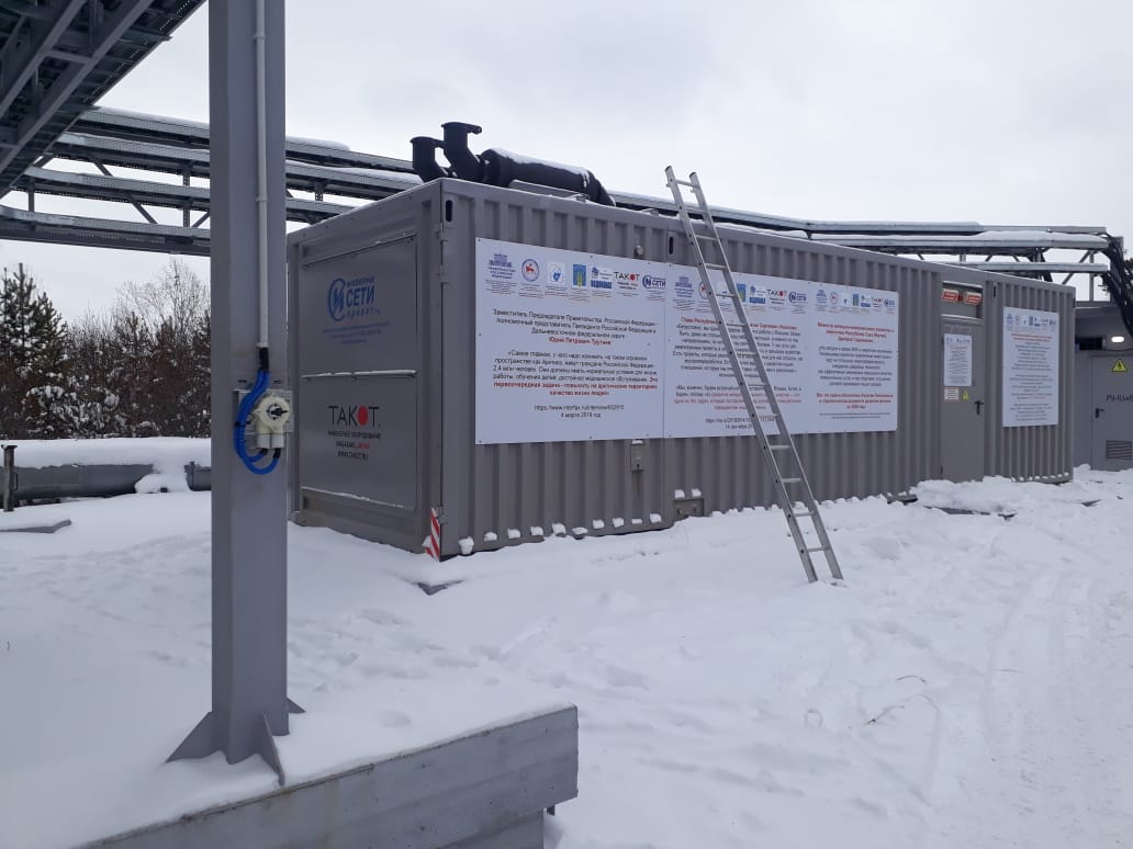 Дизельная электростанция мощностью 500 кВт для резервного питания сетевых насосов теплоэлектроцентрали города Лабытнанги. В виду отдаленности и труднодоступности доставка контейнера с ДГУ осуществлялась речным транспортом по реке Обь в летний период. Монтаж и пусконаладочные работы проводились работниками нашего предприятия в кратчайшие сроки, чтобы успеть к началу отопительного сезона, который наступает в приполярных широтах гораздо раньше, чем в средней полосе России.