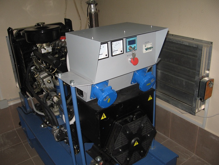 Дизельный трёхфазный генератор 18 кВт для резервного питания обрудования индивидуального теплового пункта (ИТП) здания торгового центра на ул. Кропоткина в г. Новосибирске.