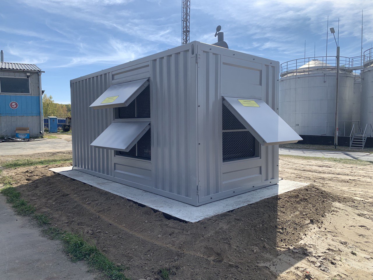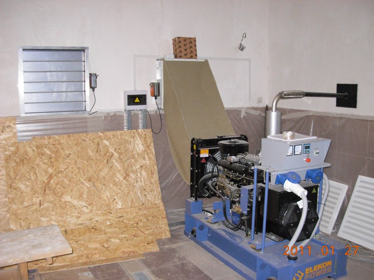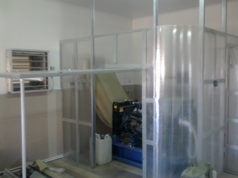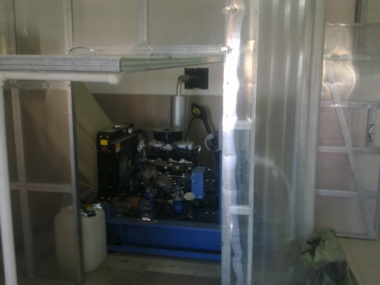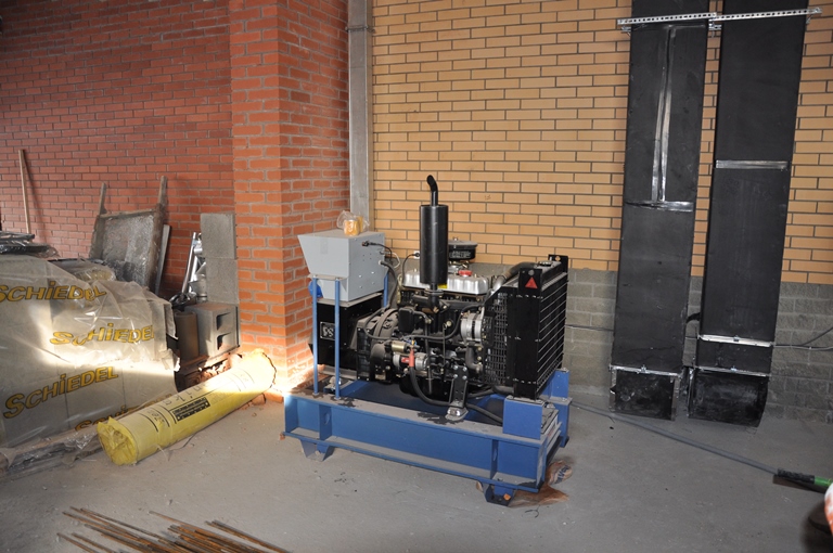 Заказчик подошел к вопросу установки ДГУ основательно и было решено построить для дизельгенератора отдельное теплое помещение с приточно вытяжной вентиляцией.