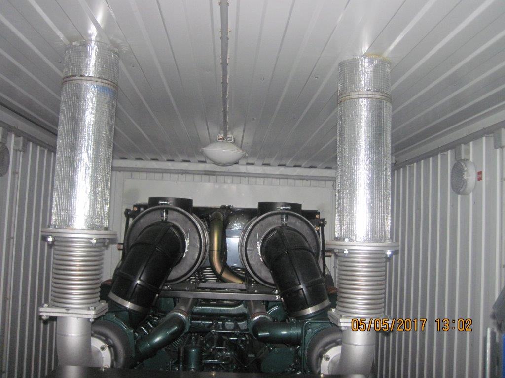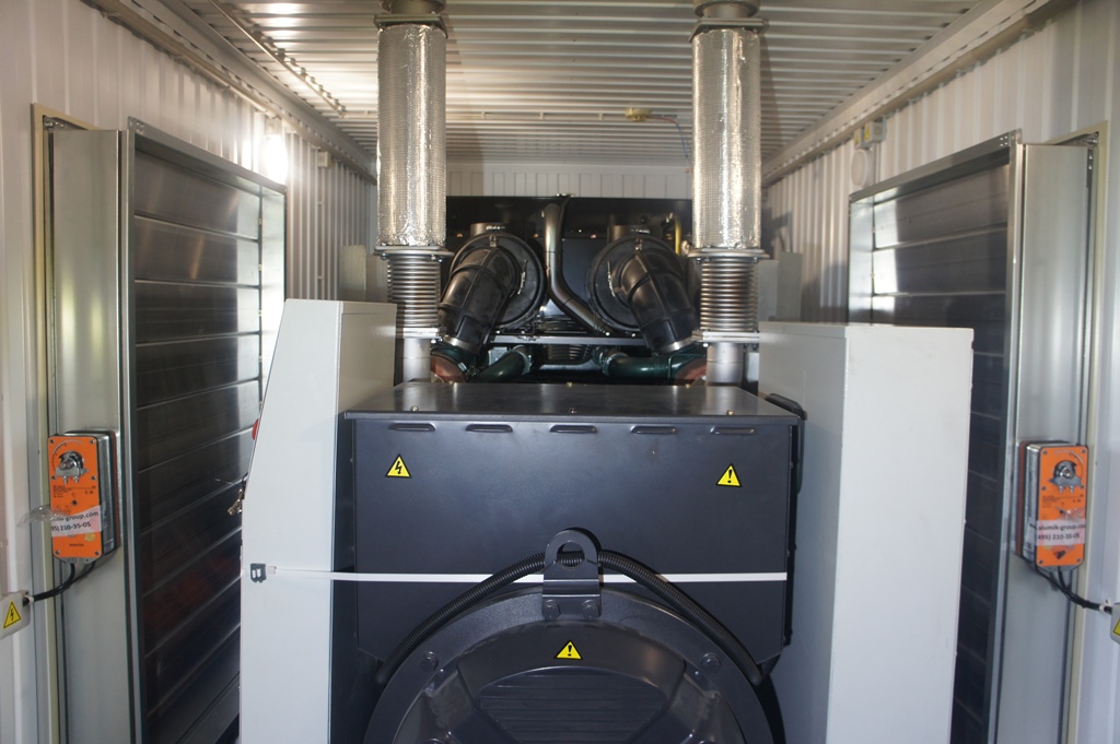 Два дизельгенератора по 500 кВт работающие параллельно на общую нагрузку предназначены для резервного электроснабжения комплекса строящихся зданий оперативно-диспетчерского управления технологическим режимом Единой энергетической системы России на территории СФО. Для максимального снижения уровня шума от работающих ДГУ применены низкошумные глушители и шумогасящие камеры собственной разработки на впускных и выпускных воздушных клапанах.