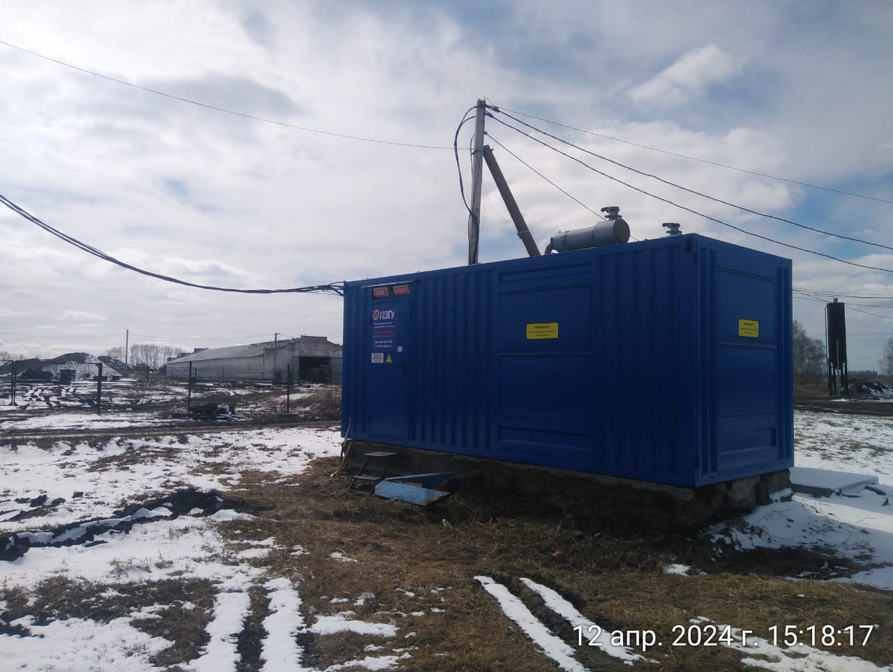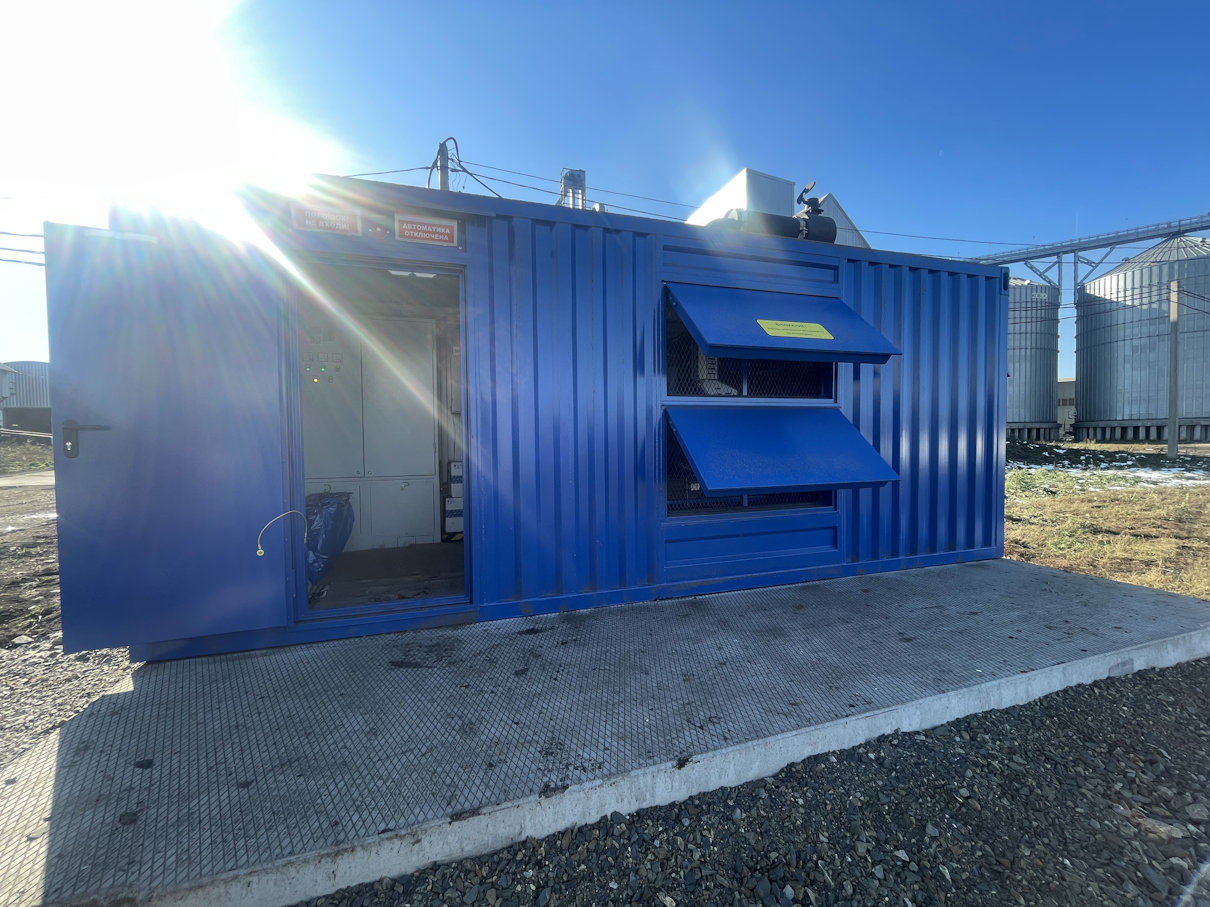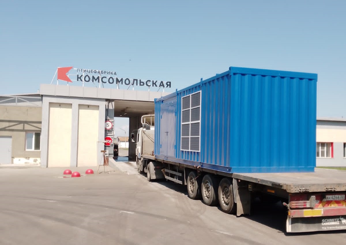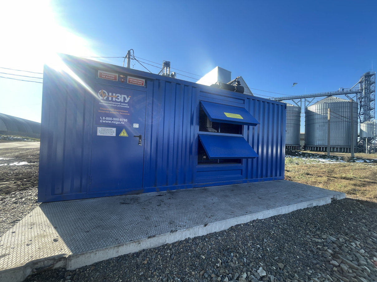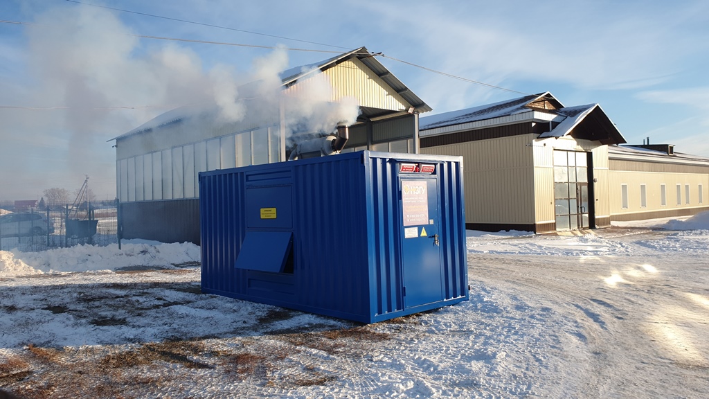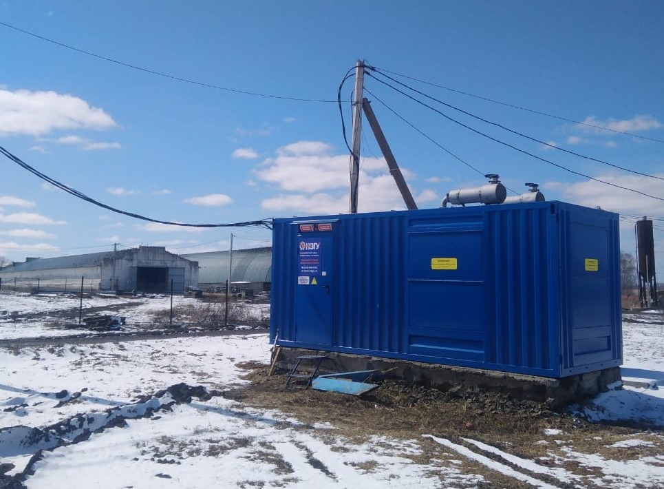 Дизельный генератор мощностью 400 кВт в утеплённом блок-контейнере типа "СЕВЕР" предназначен для резервного электроснабжения молочной фермы в Заринском районе Алтайского края.