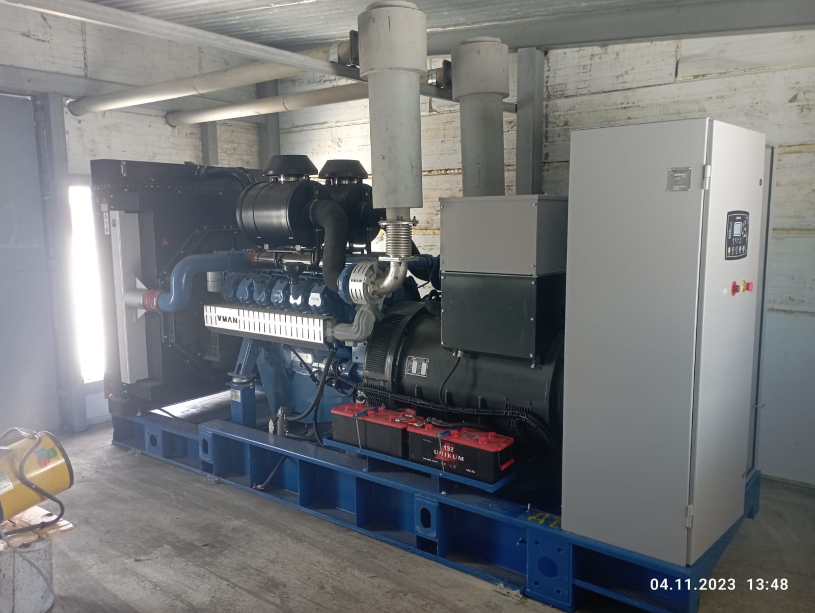 Дизельгенератор 600 кВт на базе двигателя VMAN D22Z в утеплённом блок-контейнере с дополнительным топливным баком на 5000 литров и распред.устройством 0,4 кВ