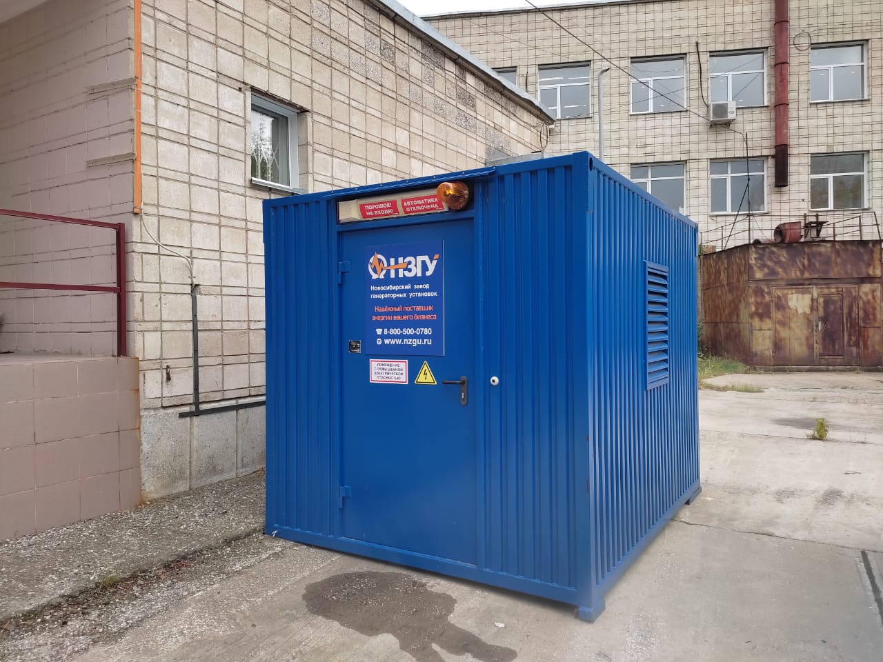 Дизельгенератор установлен на территории производственного предприятия в г.Новосибирске и предназначен для резервного электроснабжения складских и производственных помещений.