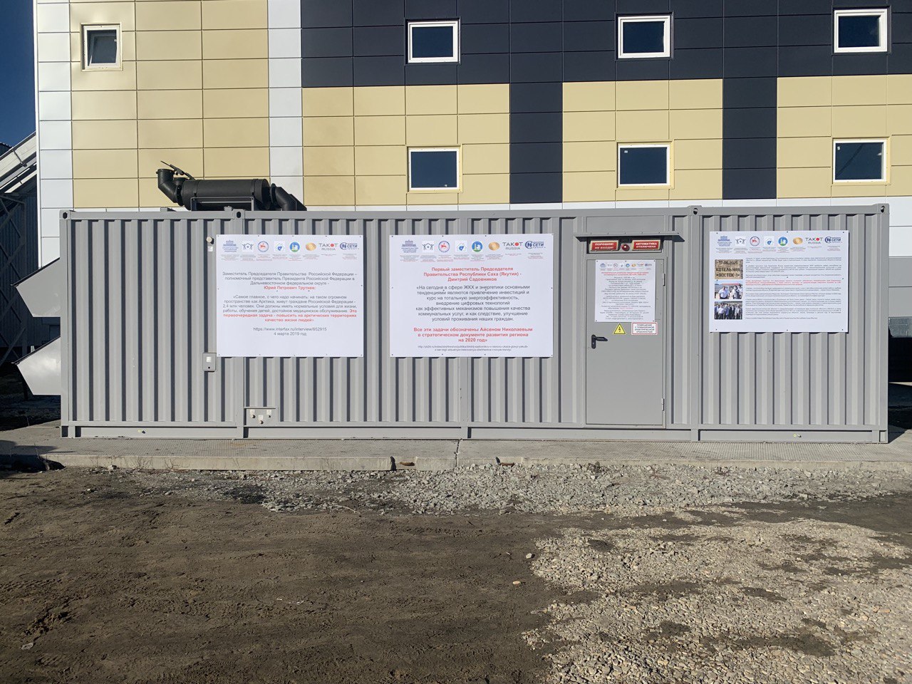 Две ДГУ, большая 1МВт и поменьше 100кВт, резервируют питание механизированной котельной мощностью 18МВт в селе Борогонцы Усть-Алданского улуса, Якутия. В Усть-Алданском улусе в 2022 году планируется проведение Спортивных Игр Народов Якутии.