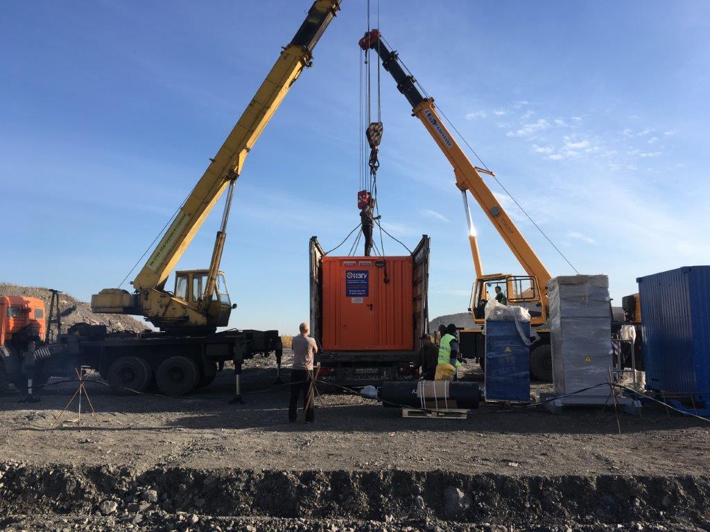 Дизельная электростанция контейнерного исполнения предназначена для резервирования электропитания дренажных насосов в одном из карьеров по добыче угля.