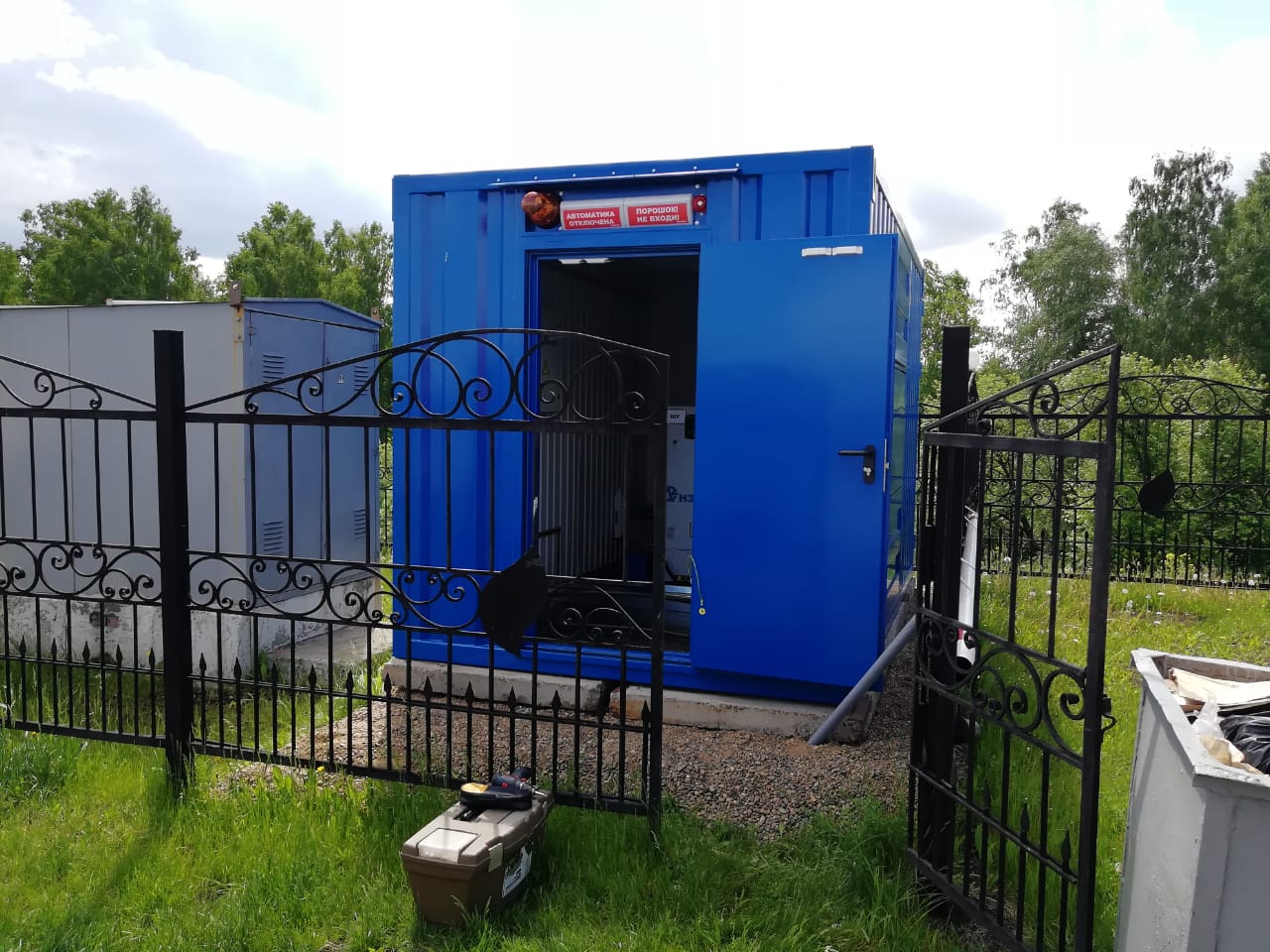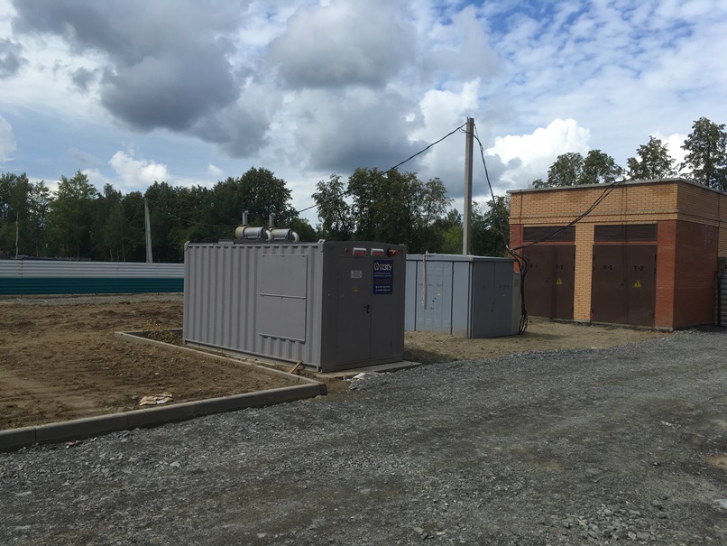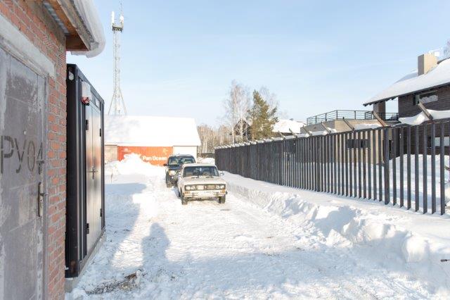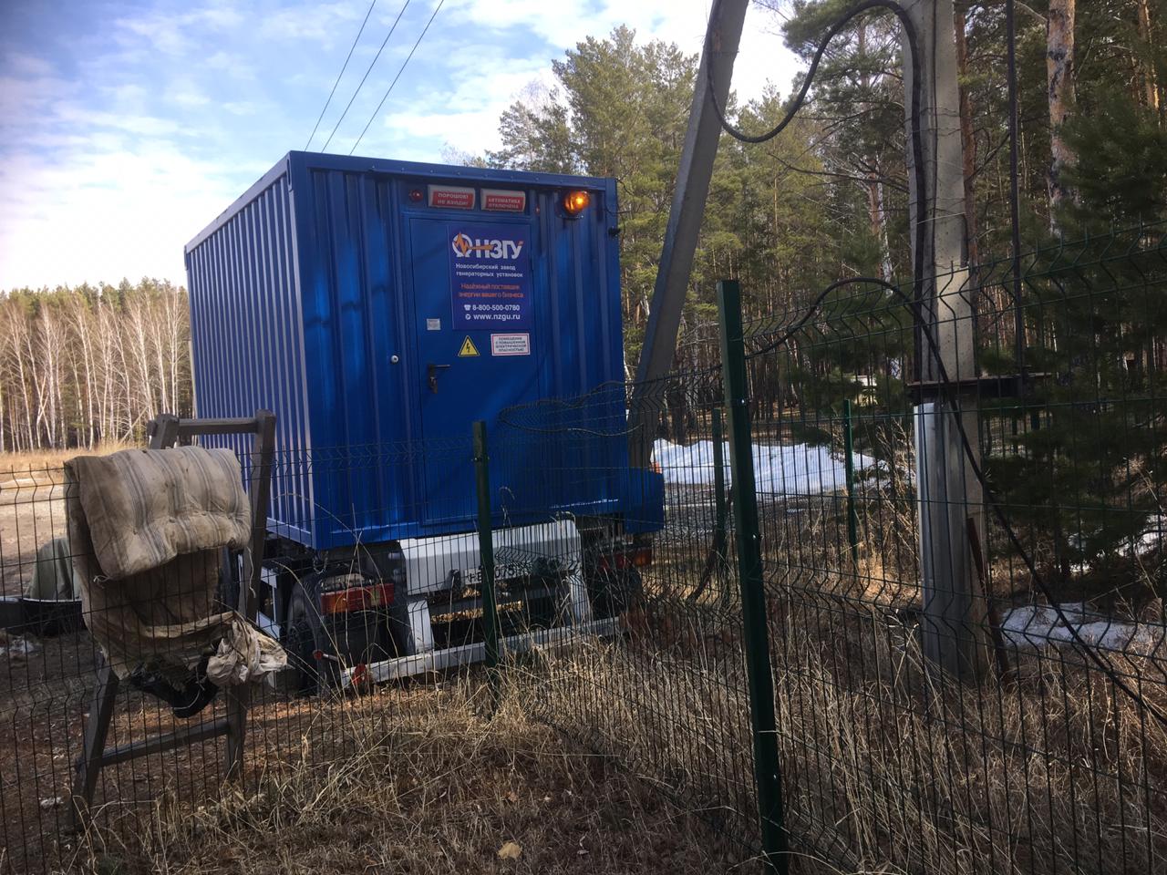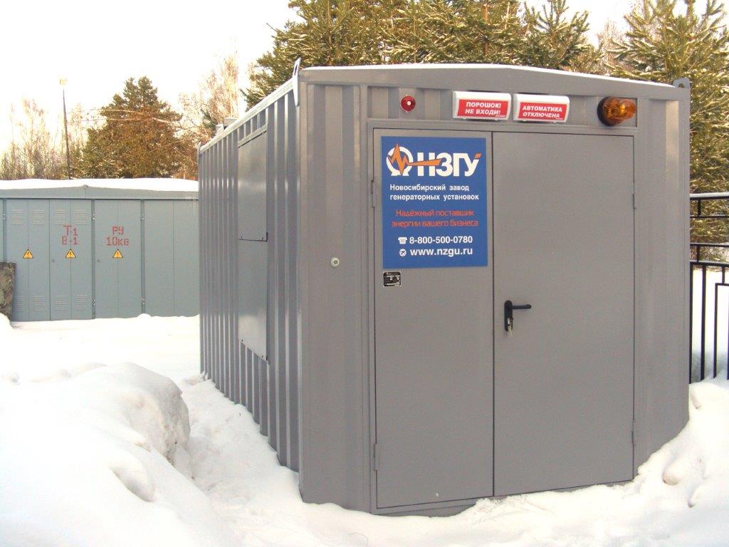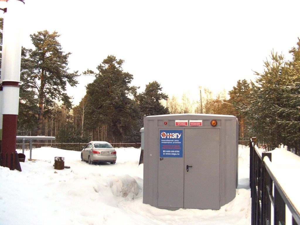 Дизельгенератор предназначен для резервного электроснабжения небольшого коттеджного поселка в пригороде Новосибирска. В последнее время появилась тенденция устанавливать один общий резервный источник электроснабжения на весь посёлок вместо покупки каждым собственником своей собственной небольшой дизельной или бензиновой электростанции. Один общий контейнер с ДГУ устанавливается обычно за пределами поселка либо на удалении от жилых домов рядом с ТП, не занимает место на участке, не портит общий вид домовладения, не требует прокладки новых эл.кабелей в доме, не шумит при работе и по стоимости оказывается дешевле, чем покупка каждым собственником своей собственной небольшой электростанции.