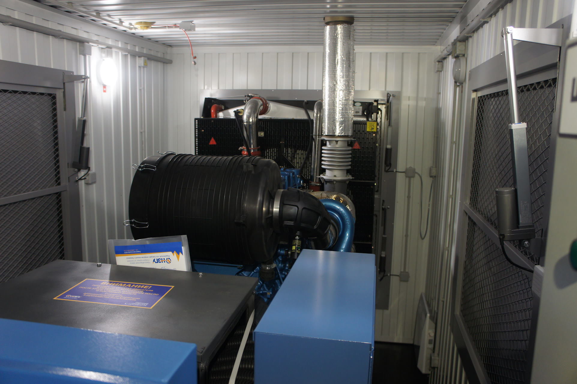 Дизельный генератор предназначен для резервного электропитания агропромышленного предприятия в Алтайском крае. Монтаж осуществлялся в отдельное помещение дизельной, в которое позже будут установлены дополнительные ДГУ с возможностью параллельной работы на общую нагрузку для увеличения мощности.