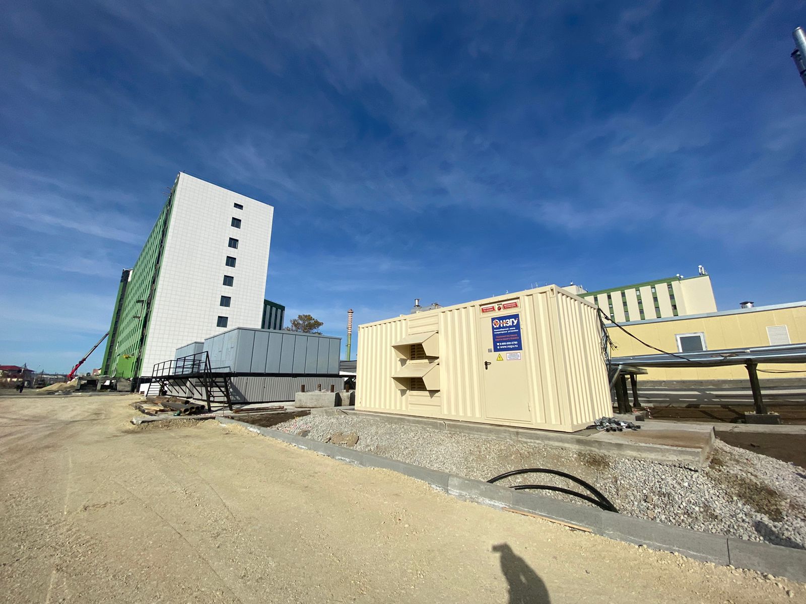 Запущен в работу энергомодуль в составе ДГУ 250кВА в УБК и ИБП контейнерного исполнения ёмкостью 90кВт*ч для резервного питания больницы. ИБП мощностью 40кВА предназначен для резервирования реанимационных палат с аппаратами ИВЛ, а ДГУ для резервирования остальных нагрузок госпиталя. Госпиталь строится компанией РУСАЛ.