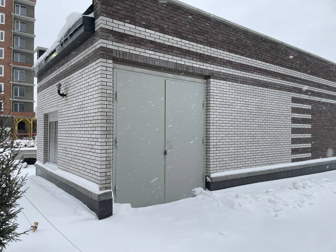 Специалисты НЗГУ установили очередной дизельгенератор 160кВт контейнерного исполнения на одном из новых жилых комплексов Наукограда Кольцово. Для того, чтобы дизельгенератор не выбивался из общей концепции жилого комплекса застройщик возвёл для него отдельное здание в общем стиле с жилыми домами.
