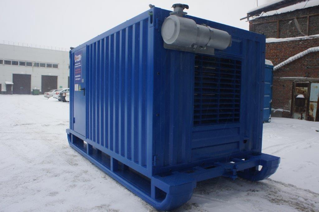 Дизельный генератор мощностью 400 кВт в утеплённом блок-контейнере типа "СЕВЕР" предназначен для резервного электроснабжения оборудования золотодобывающего рудника в Красноярском крае.