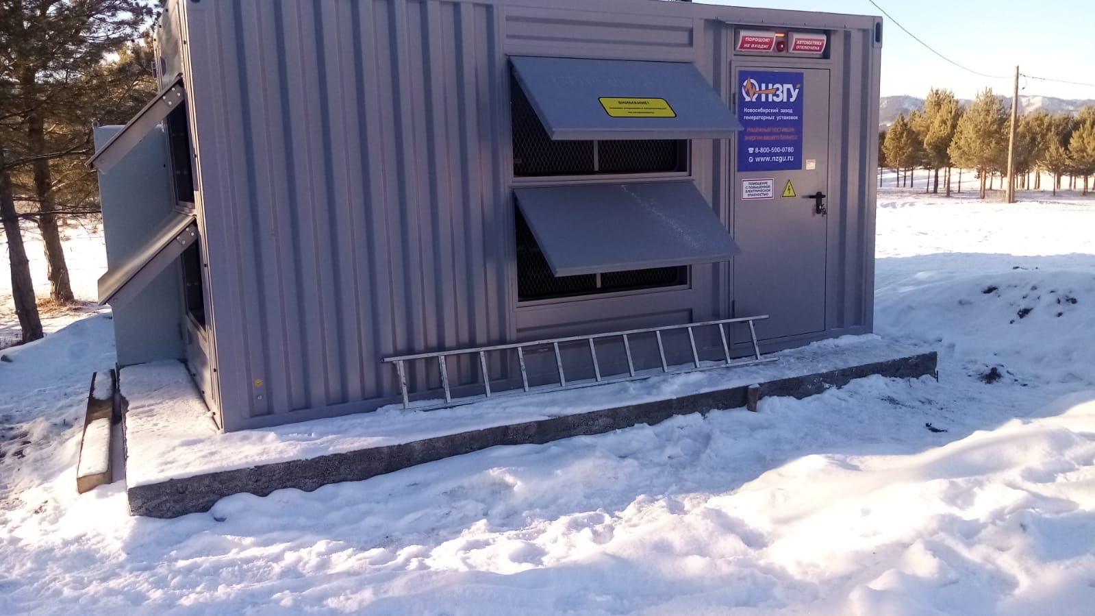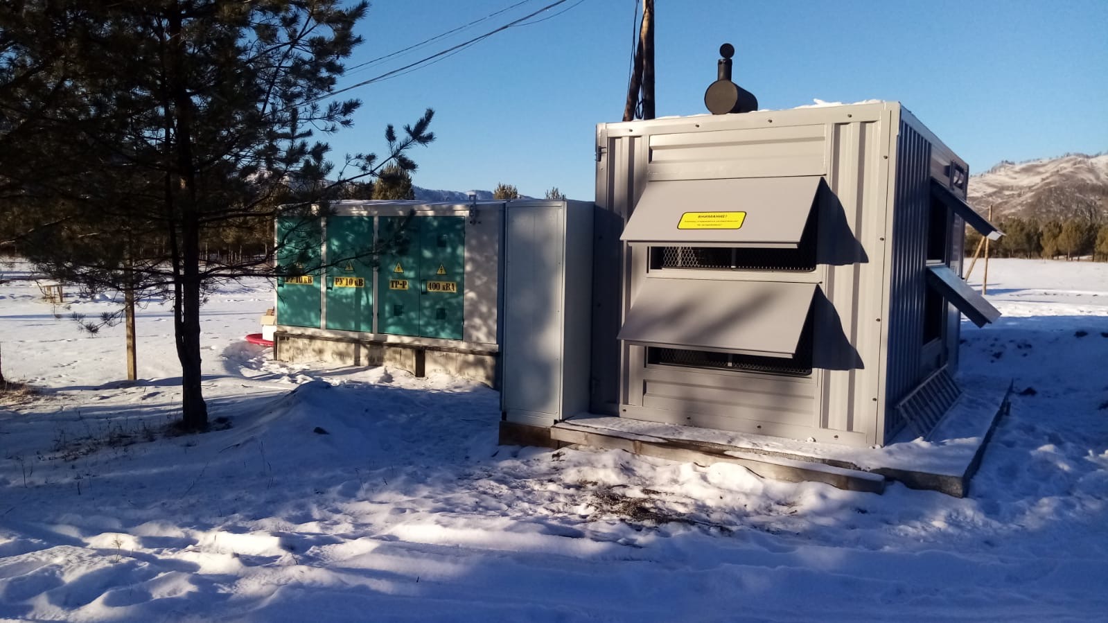 Дизельный генератор мощностью 400 кВт в утеплённом блок-контейнере типа "СЕВЕР" предназначен для резервного электроснабжения базы отдыха в Горном Алтае.