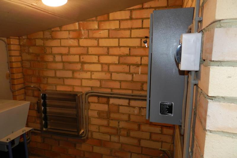 Автоматический ввод резерва используется для бесперебойного питания тепловых насосов отопления здания и для аварийного электропитания насосов пажаротушения. Система АВР запускает дизель в случае исчезновения напряжения на всех (двух) постоянных вводах здания. Дизель-генератор установлен в помещении электрощитовой. Система газоотвода и вытяжная вентиляция выведена за пределы здания.