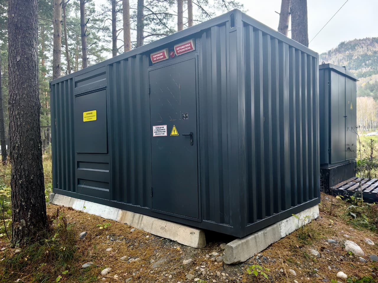 Две дизель-генераторные установки в утепленных блок-контейнерах предназначены для резервного электроснабжения строящейся базы отдыха в Чемальском районе Республики Алтай.