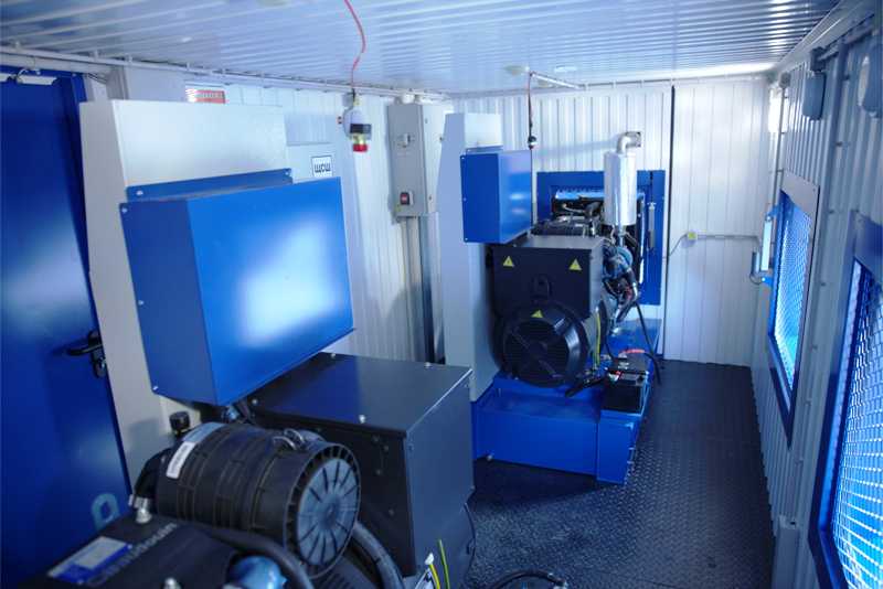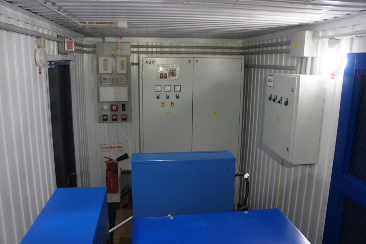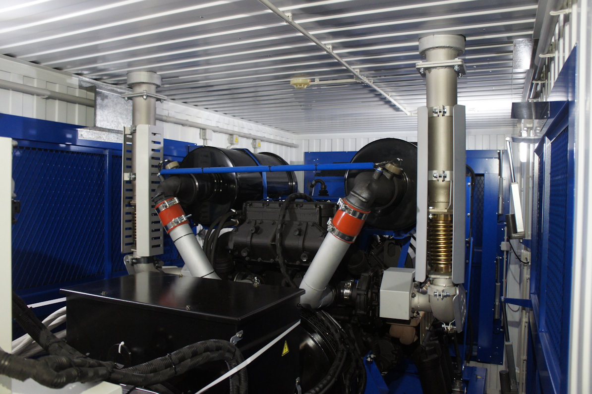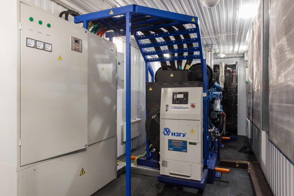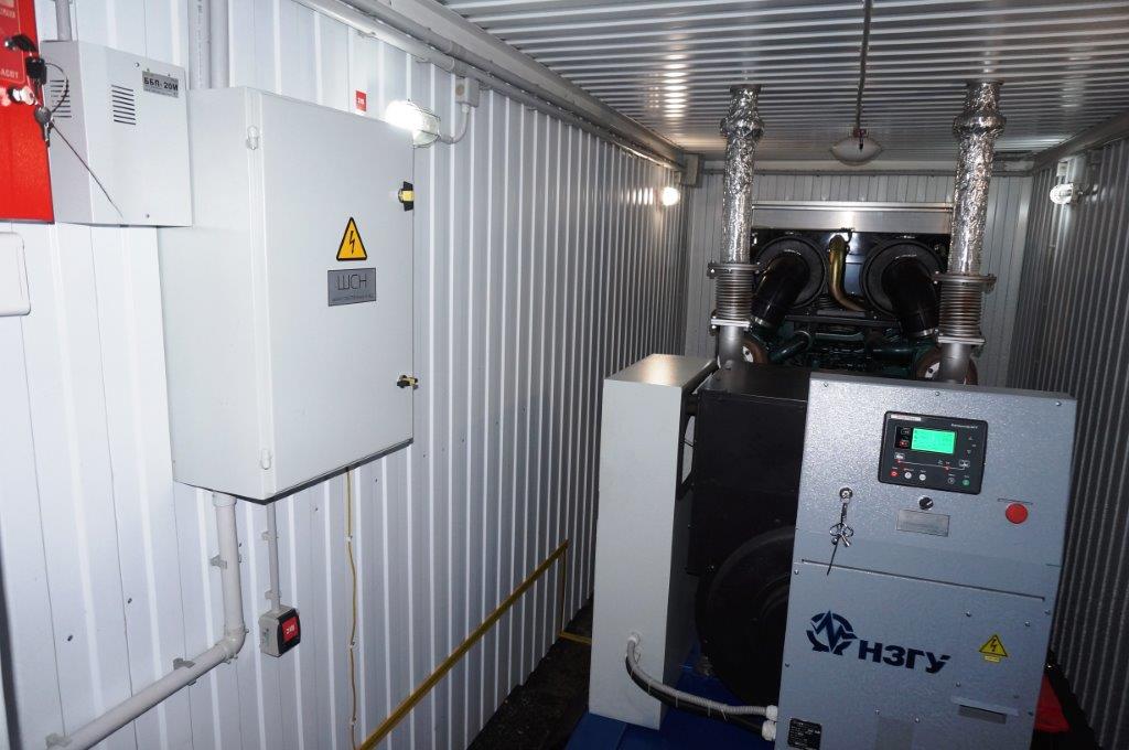 Два дизельгенератора по 350 кВт на базе двигателей MOTEURS BAUDOUIN 6M21G440/5e2 в двух утепленных блок-контейнерах со шкафом параллельной работы двух ДГУ на общую нагрузку. ДГУ укомплектованы дополнительными топливными баками, позволяющими работать без дозаправки до 24 часов.
