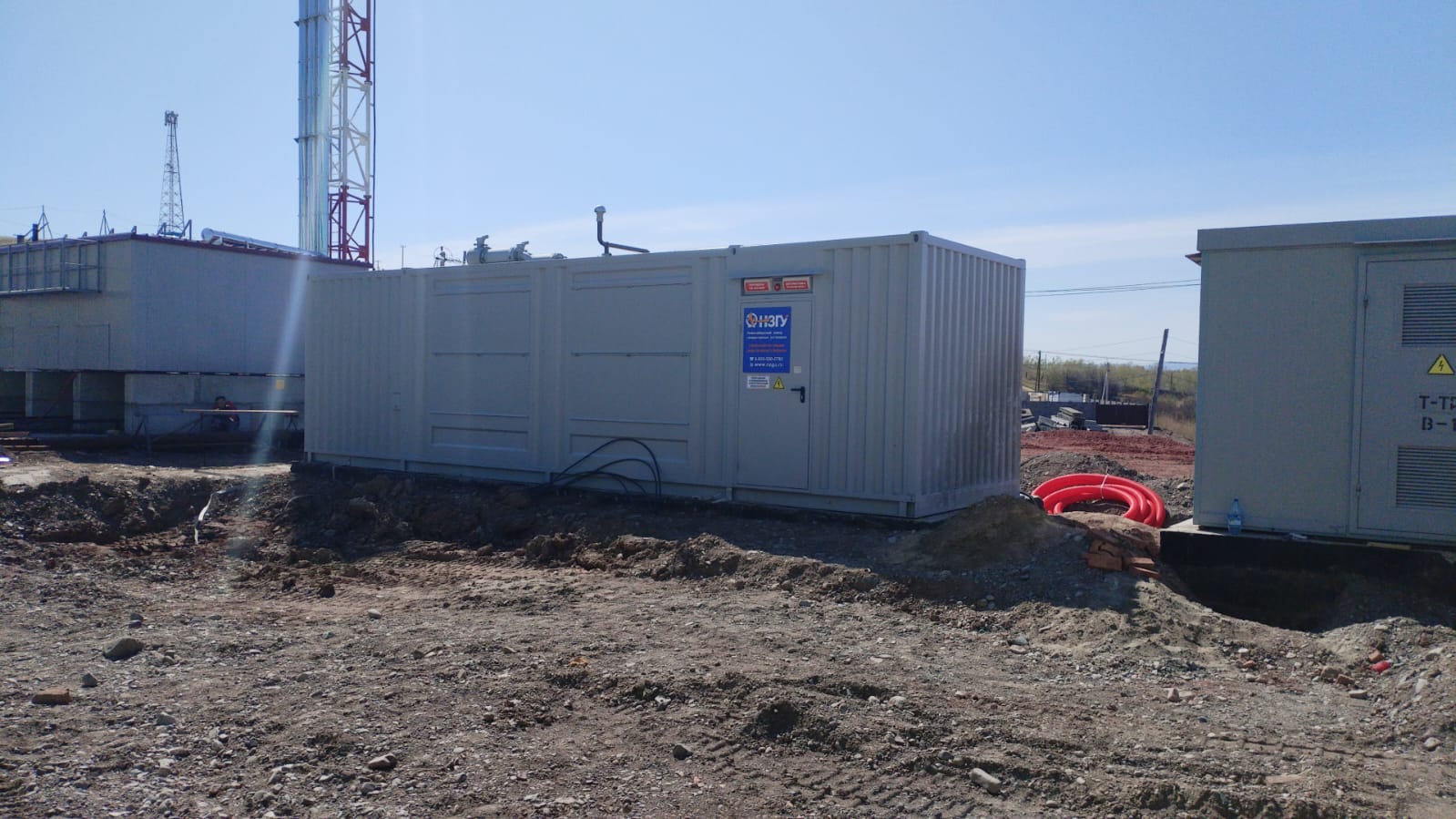 Компания НЗГУ обеспечила изготовление и монтаж на объекте резервного дизельного генератора в блок-контейнере. Теперь вся Новосибирская область может спокойно наслаждаться любимыми телепередачами. Здание телекомпании находится недалеко от жилых домов, поэтому были установлены шумопоглащающие маркизы и дополнительный глушитель, позволившие снизить общий уровень шума от работающей ДГУ до 78 дБ.