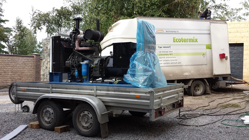 Производственная компания Экотермикс занимается производством и нанесением напыляемой теплоизоляции на различных объектах. Для питания промышленной установки по напылению изоляции используется дизельный генератор ЭДД-50-2, установленный на автомобильном прицепе для обеспечения возможности быстрого перемещения. В свободное время компания сдает данную станцию в аренду всем желающим с доставкой до объекта.