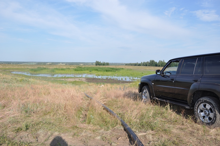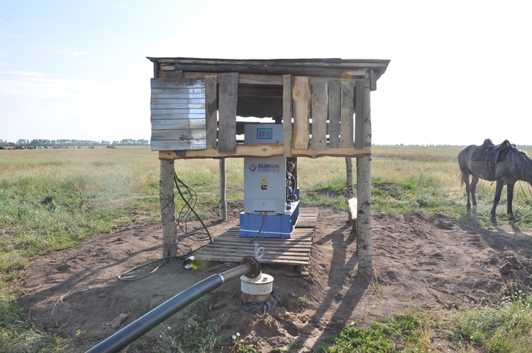 Вода из артезианской скважины питает искуственное озеро, из которого в дальнейшем осуществляется орошение полей.